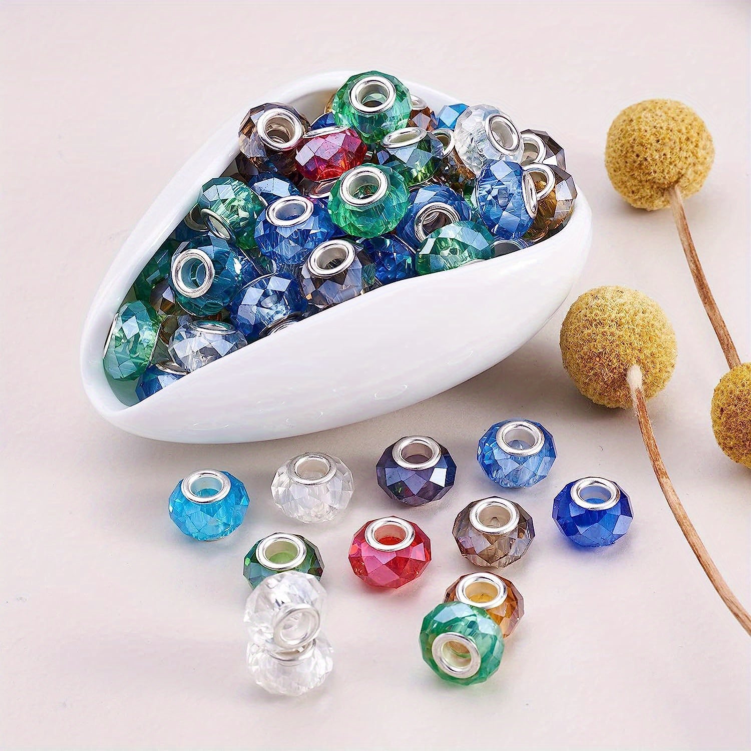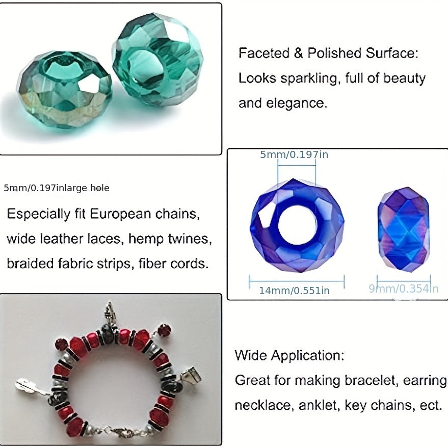 Enhance your DIY jewelry projects with this set of 30 beautiful cut glass large hole spacer beads. Perfect for creating unique snake chain bracelets and other jewelry pieces in mixed colors.