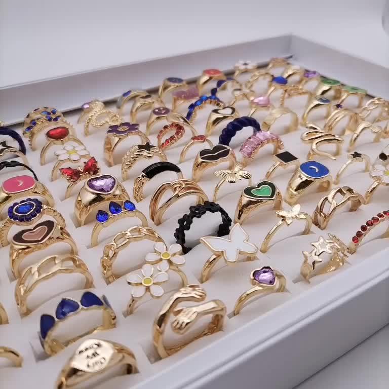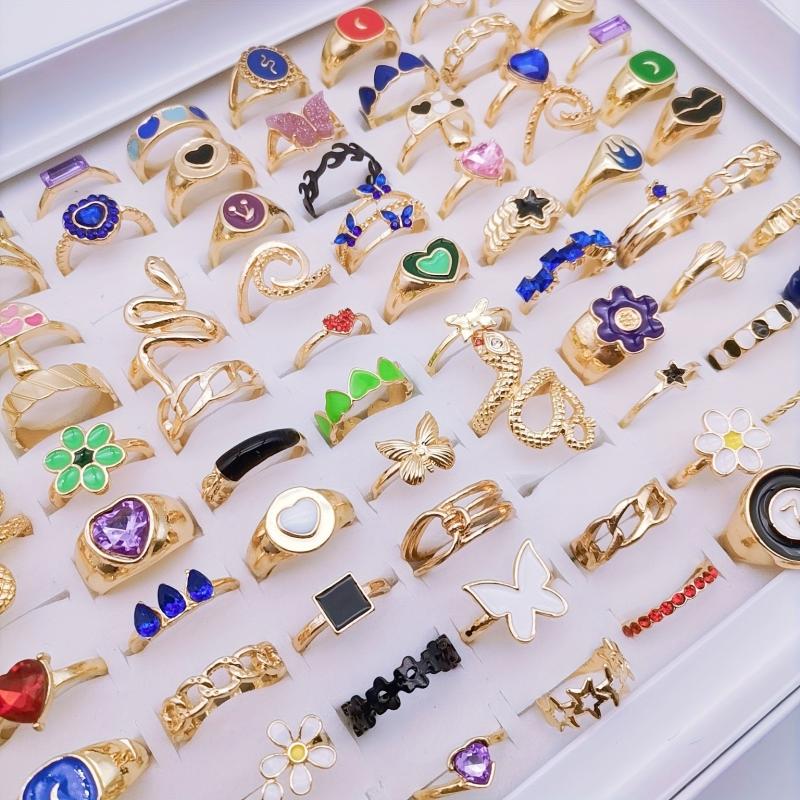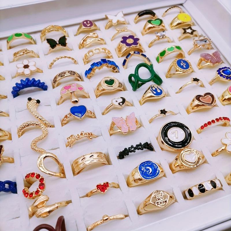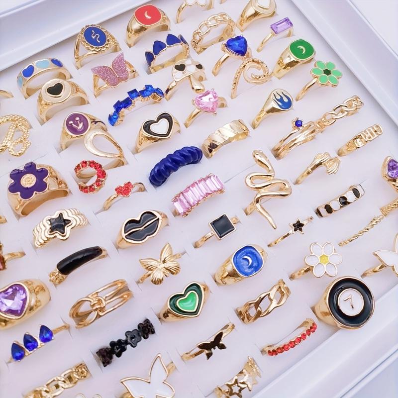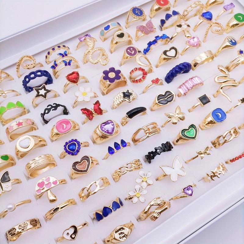 Add a pop of color and style to your fingers with this set of 30 rings featuring love hearts, stars, and other unique shapes. Perfect for expressing your personality and adding a touch of boho charm to any outfit.