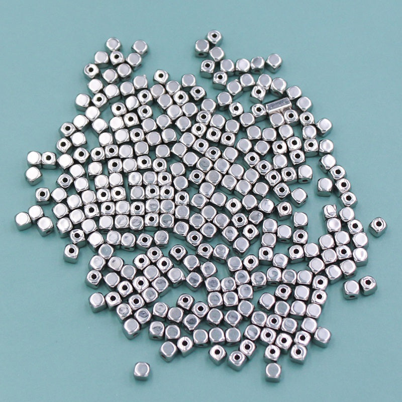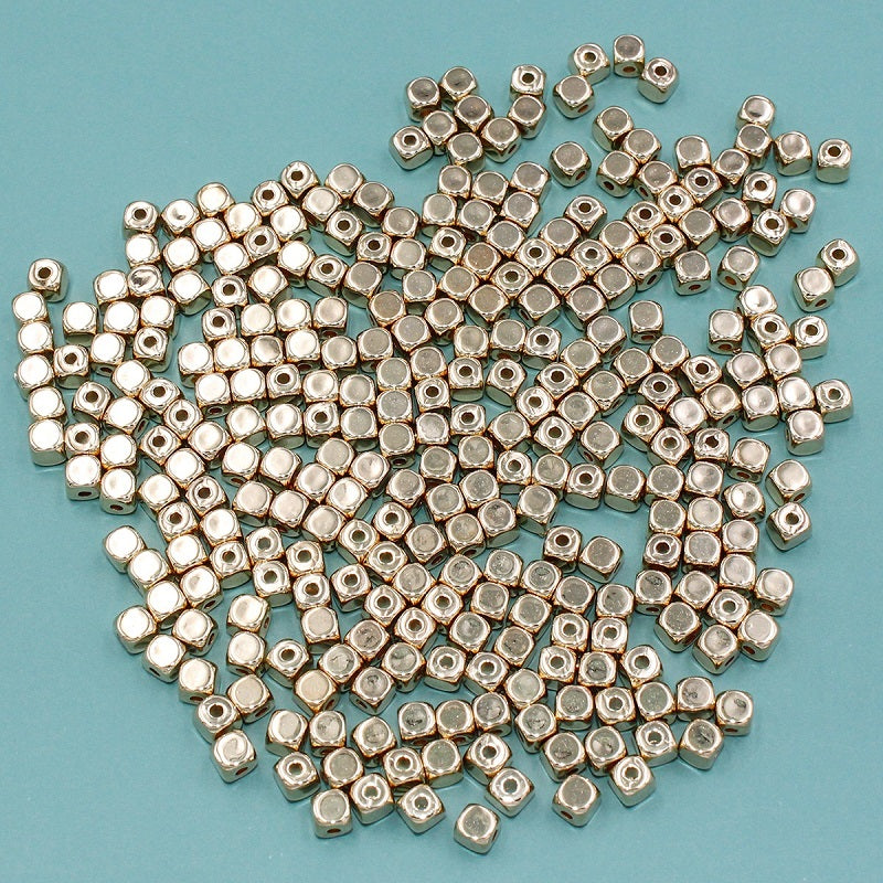 Get creative with this set of 300 electroplated square metallic dye beads, perfect for DIY jewelry making. Each bead has a 4mm size, ideal for necklaces and bracelets.