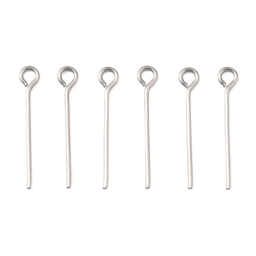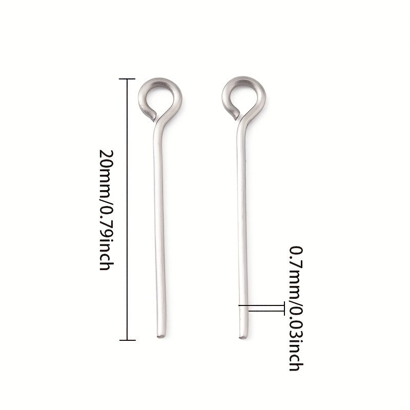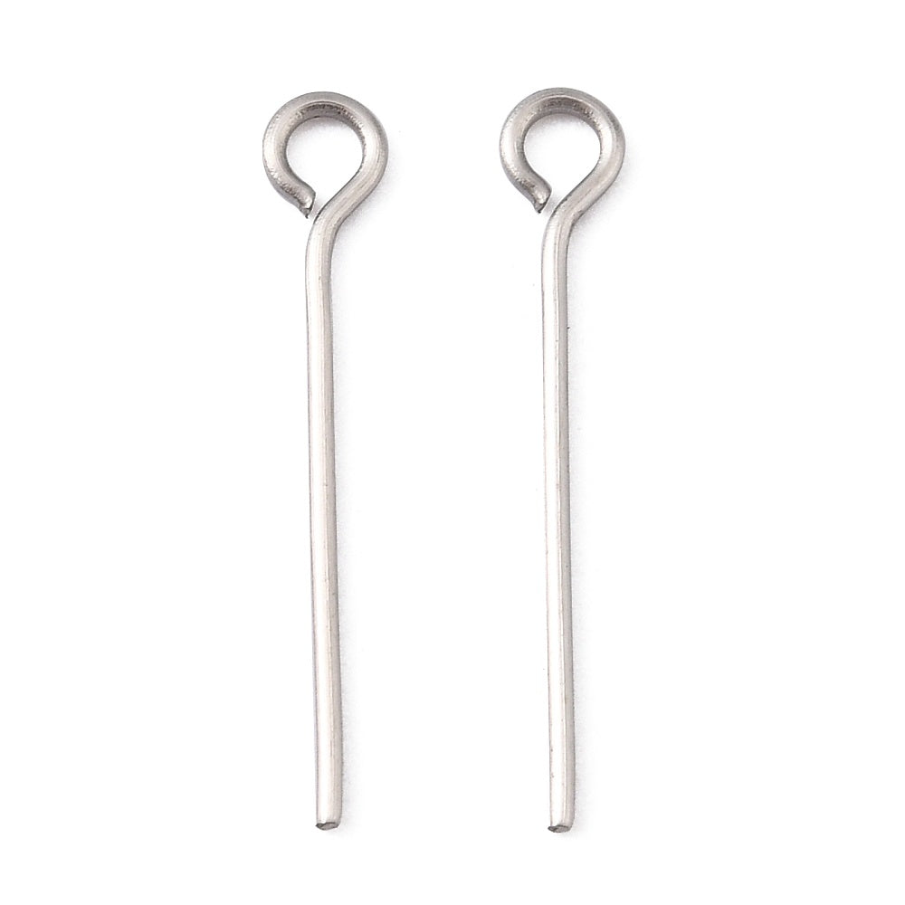 High-quality stainless steel eye pin findings for jewelry making.