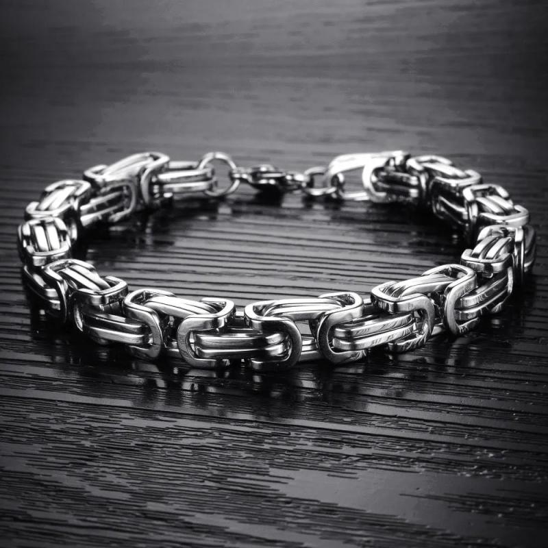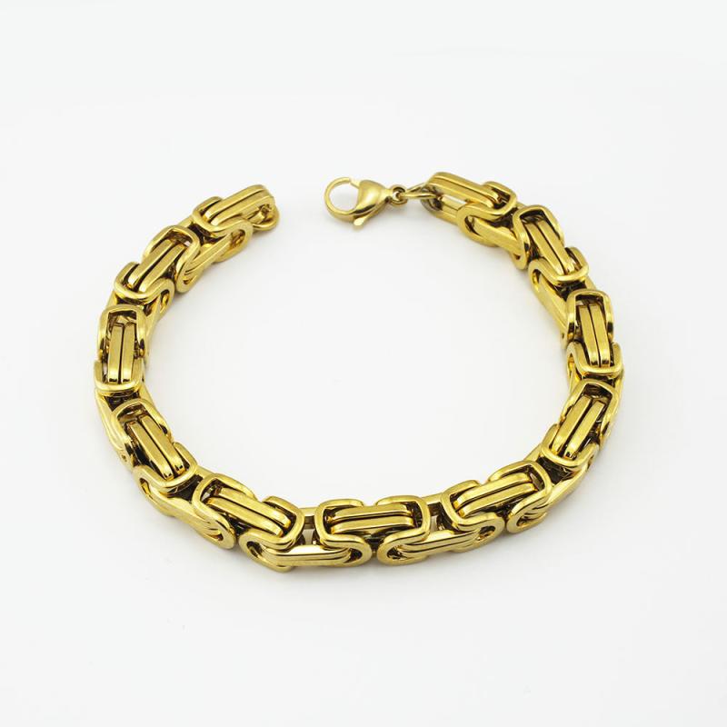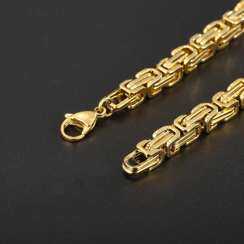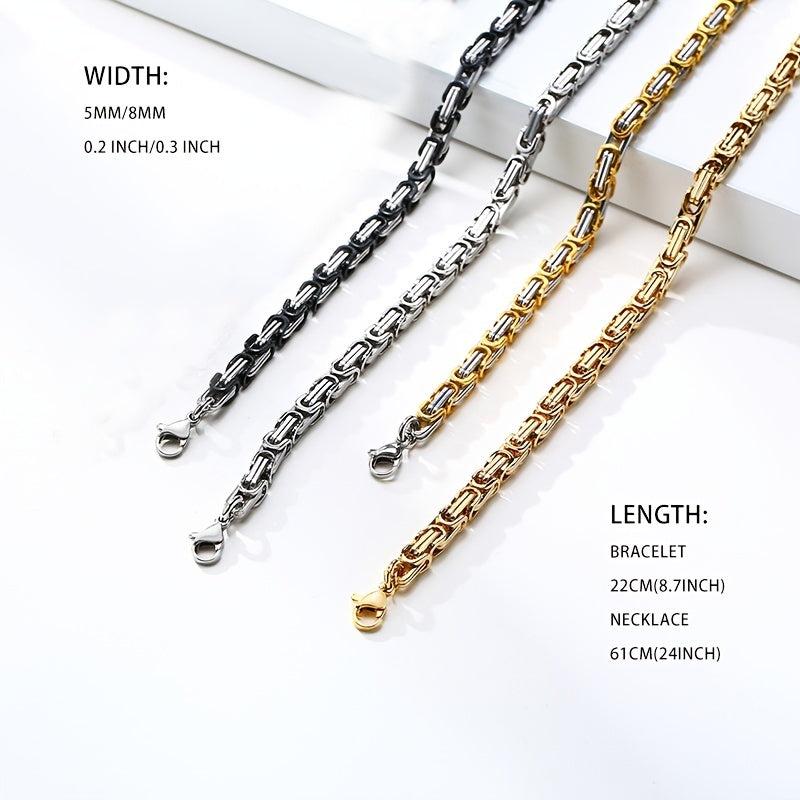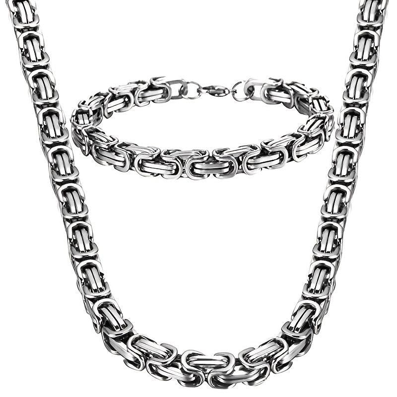 This set includes a bracelet and necklace made of 304 stainless steel with a Byzantine chain design. The jewelry is plated for a sleek look.
