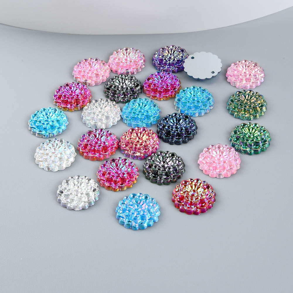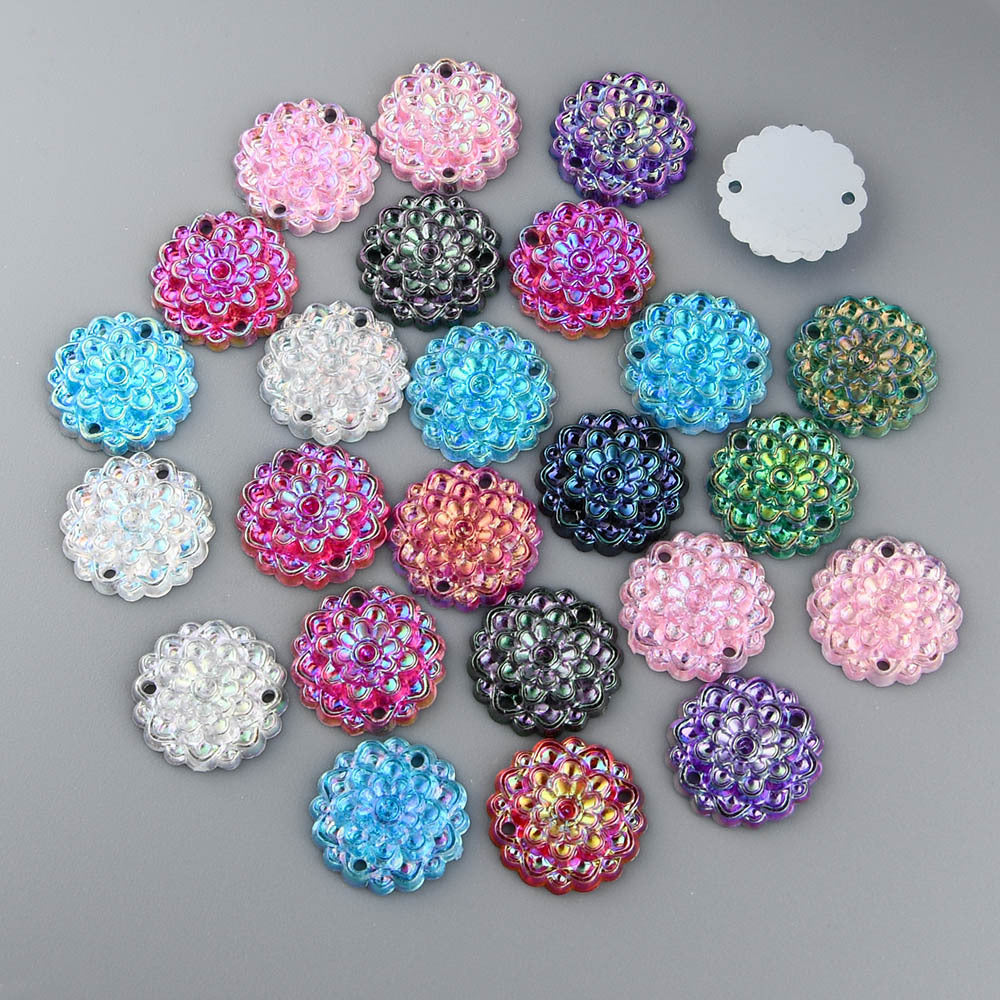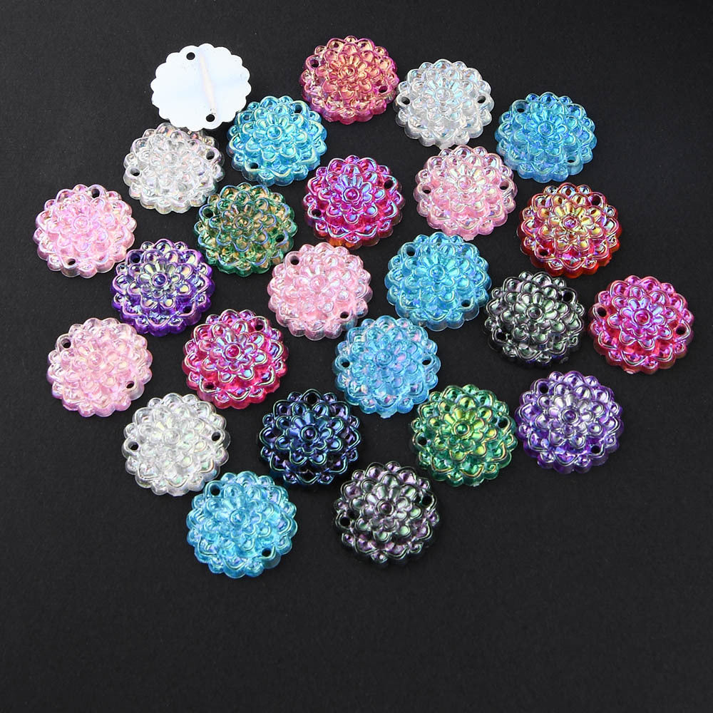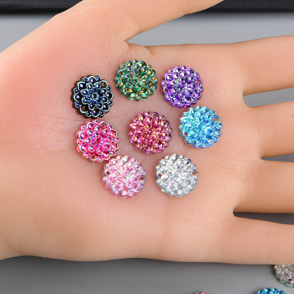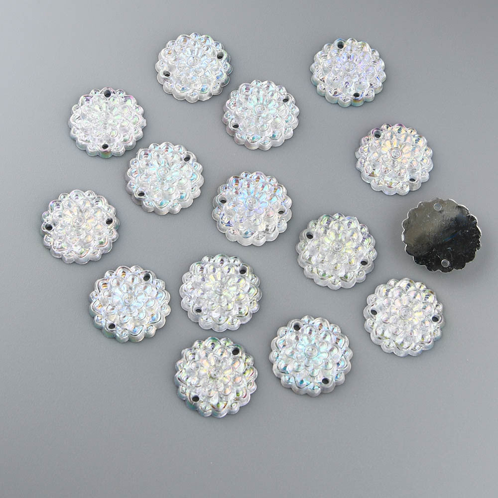 These round flower-shaped rhinestones are perfect for crafts, jewelry making, wedding embellishments, and more. Each stone has 2 holes for easy sewing.