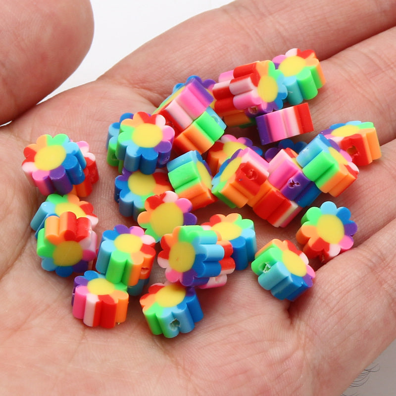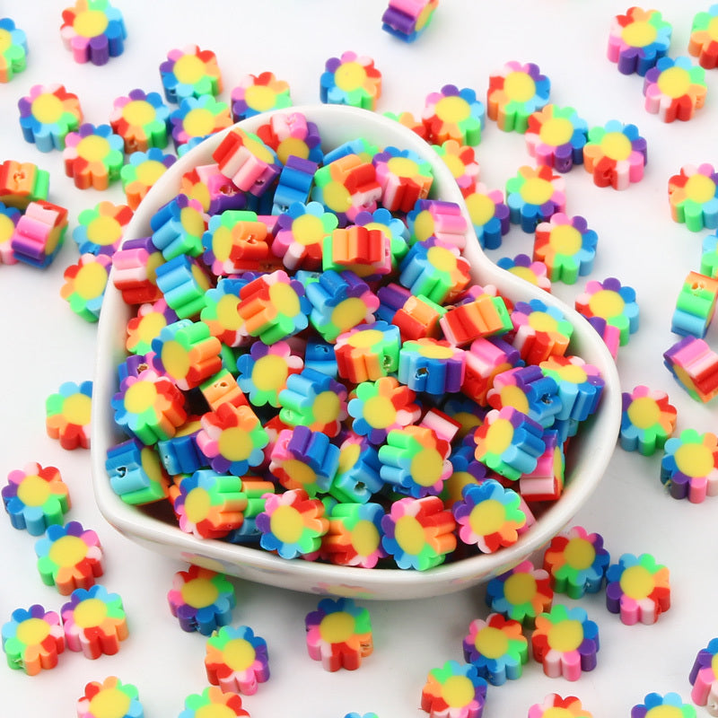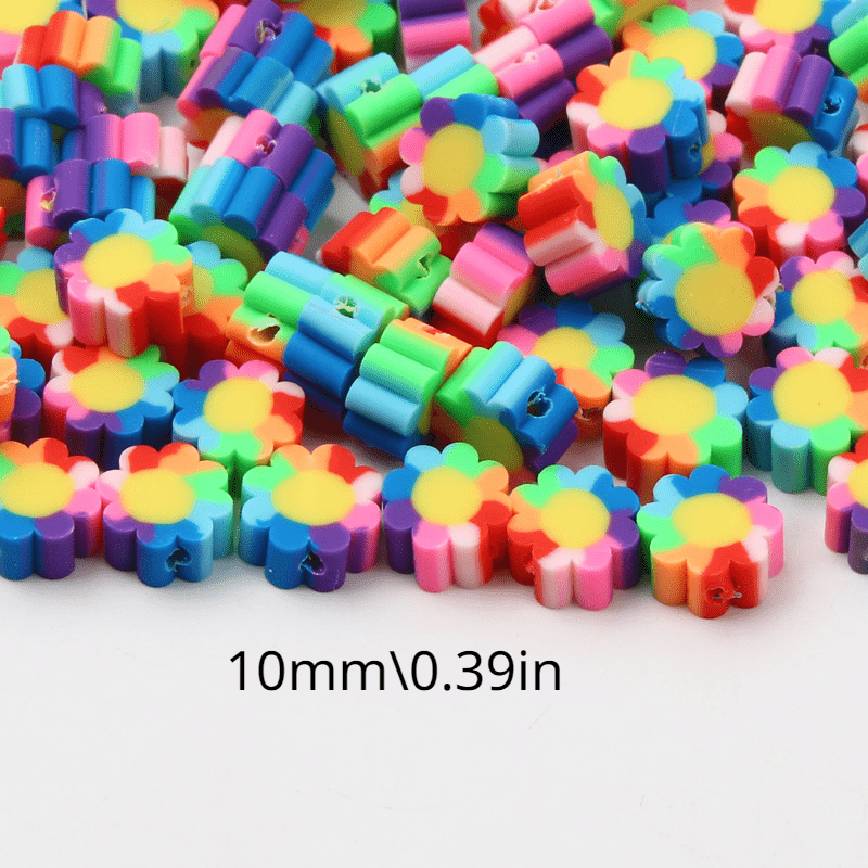 Get creative with these 10mm polymer clay spacer beads featuring a sunflower pattern. Perfect for making unique jewelry pieces.