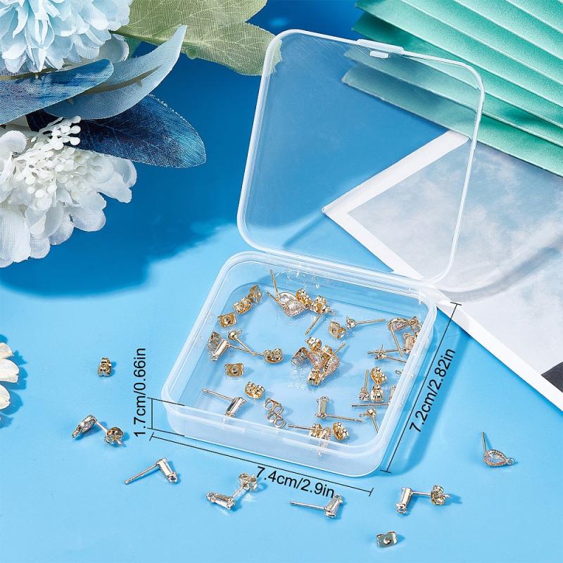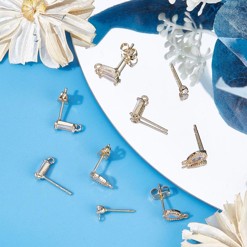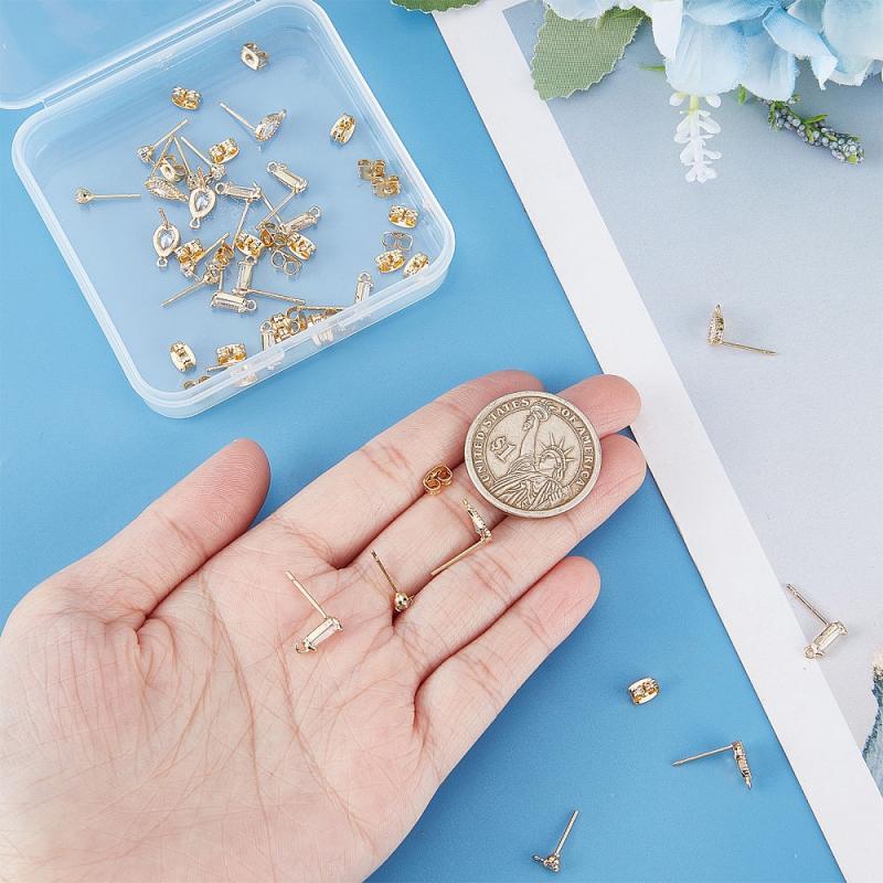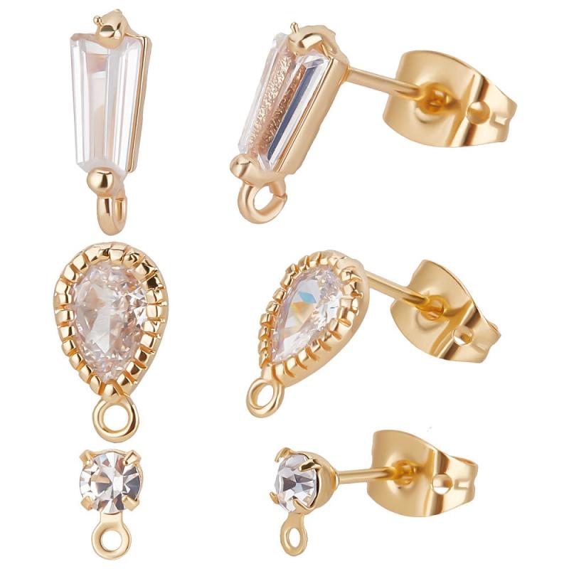 This set includes 30 pairs of stud earrings in 3 styles: teardrop, round, and trapezoid. Each earring features a cubic zirconia stone and comes with a loop and butterfly earring back.