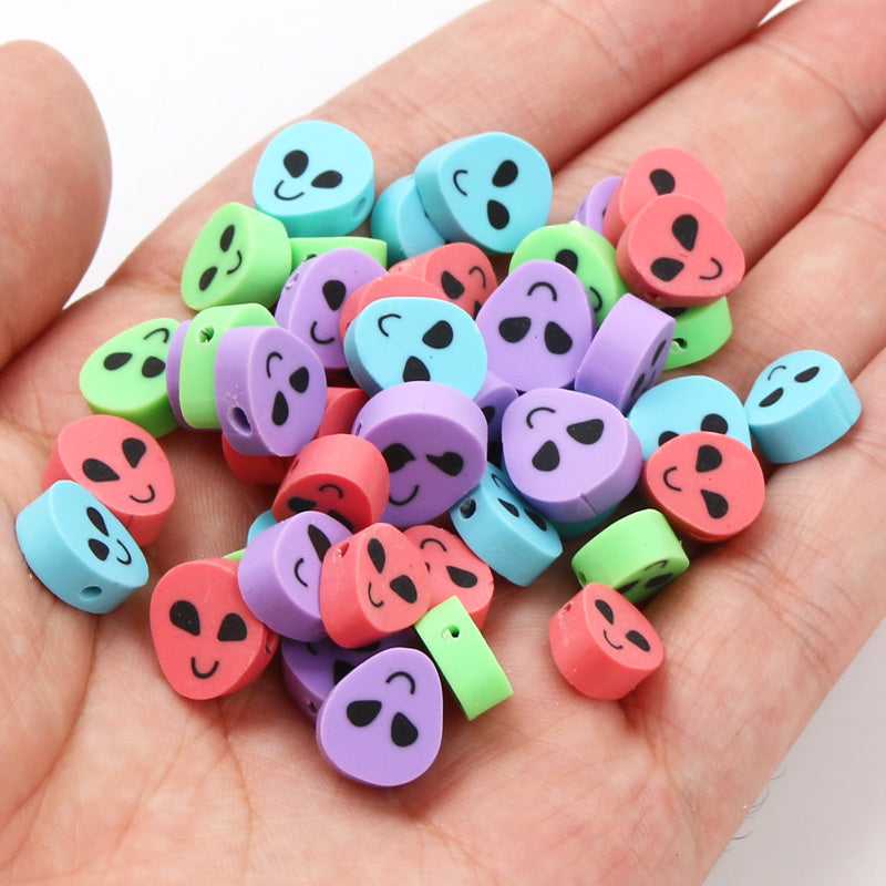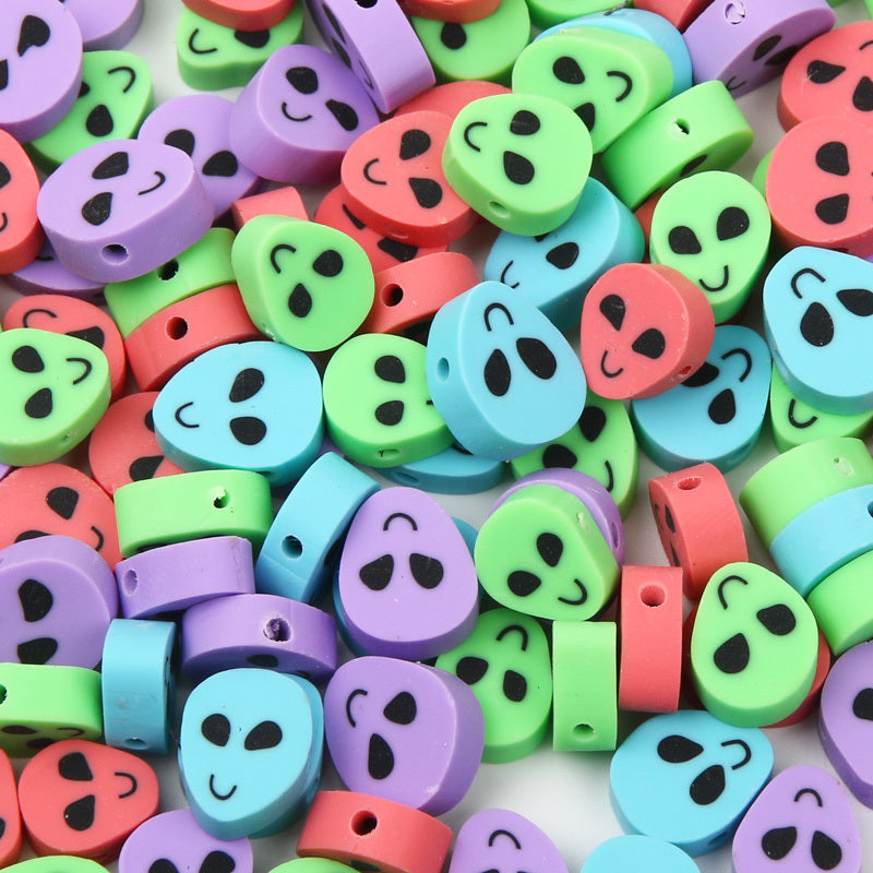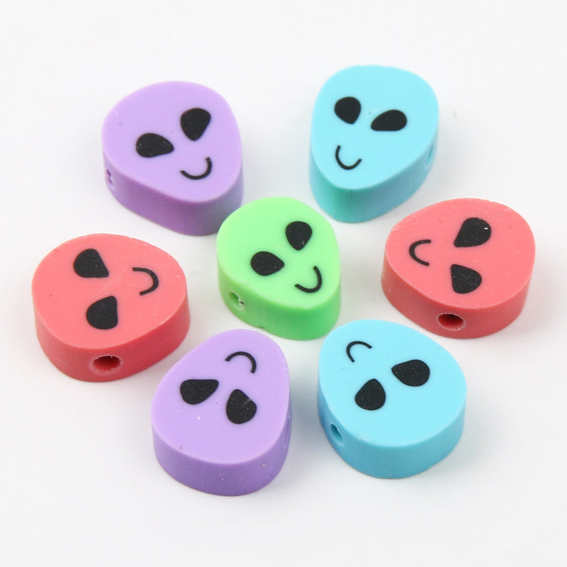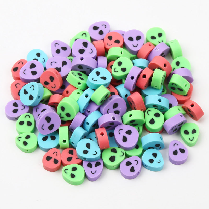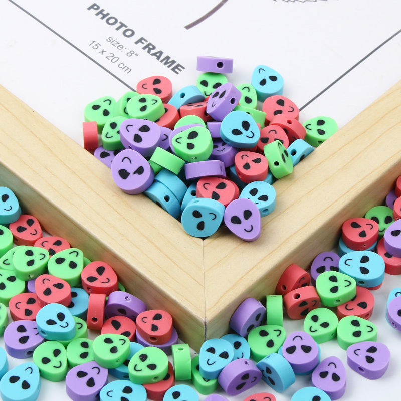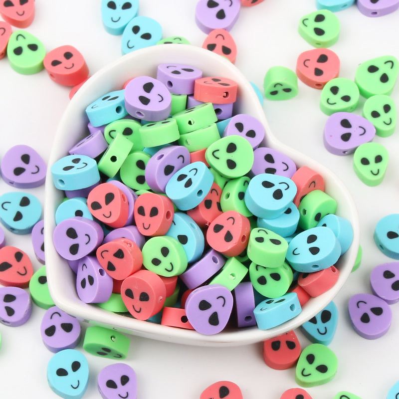 Get creative with these mixed alien pattern polymer clay beads. Perfect for DIY bracelets, necklaces, and earrings. Add a unique touch to your accessories!
