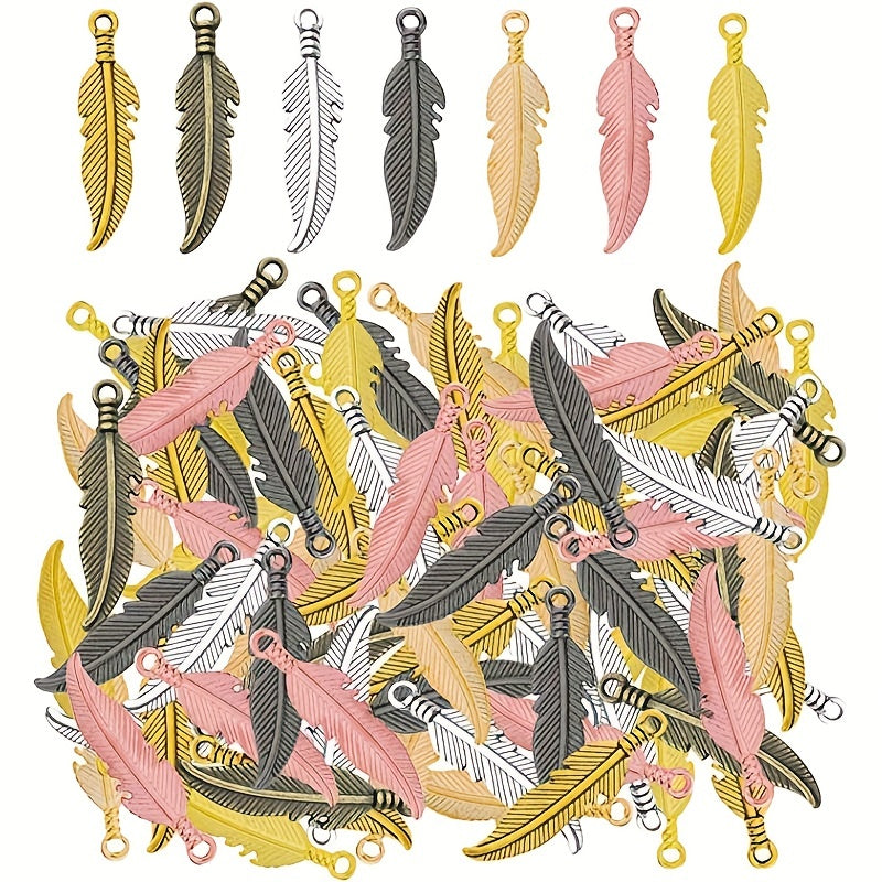 Get creative with these 30 alloy feather charms pendants that are perfect for making bracelets, necklaces, sweater chains, hip hop and other styles. Add a unique touch to your jewelry collection.