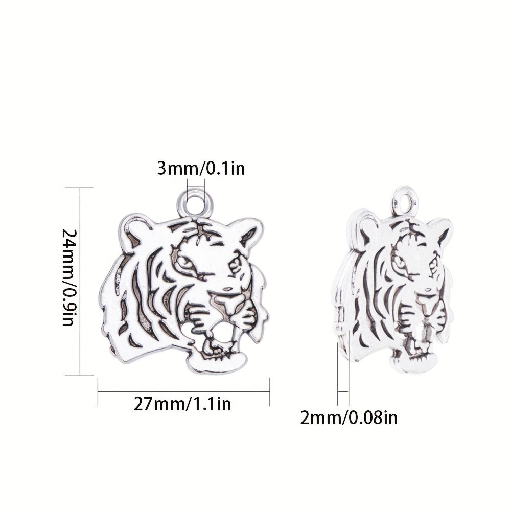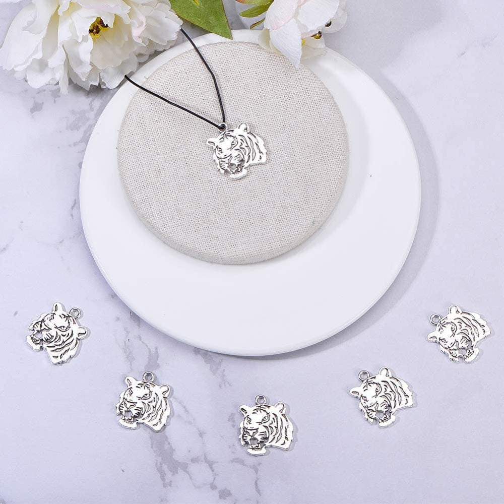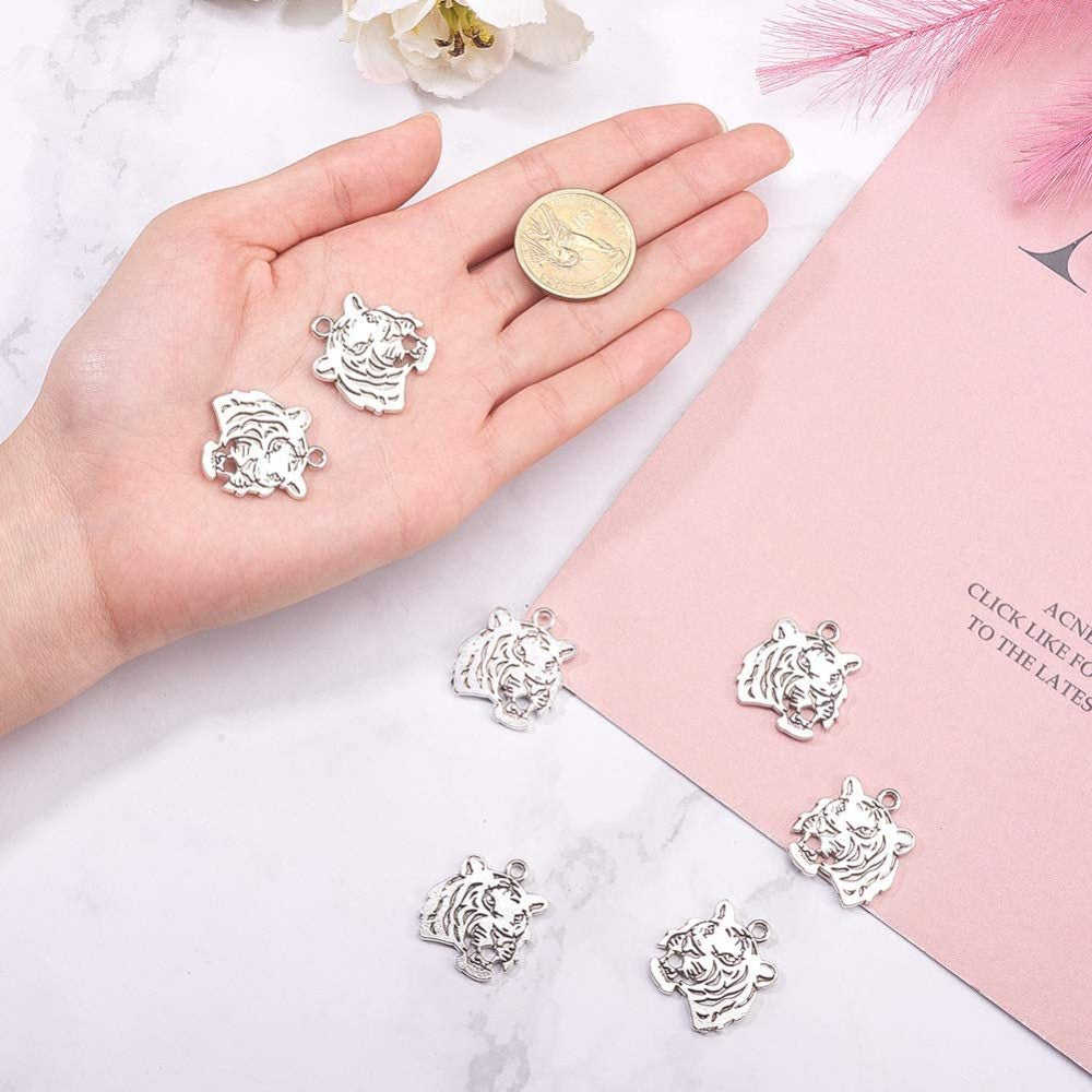 Get these 30pcs of antique silver alloy tiger head charms pendants to create unique jewelry pieces. Perfect for DIY necklace and bracelet making projects.