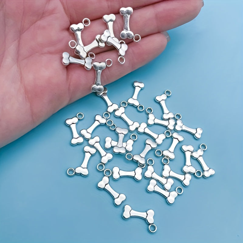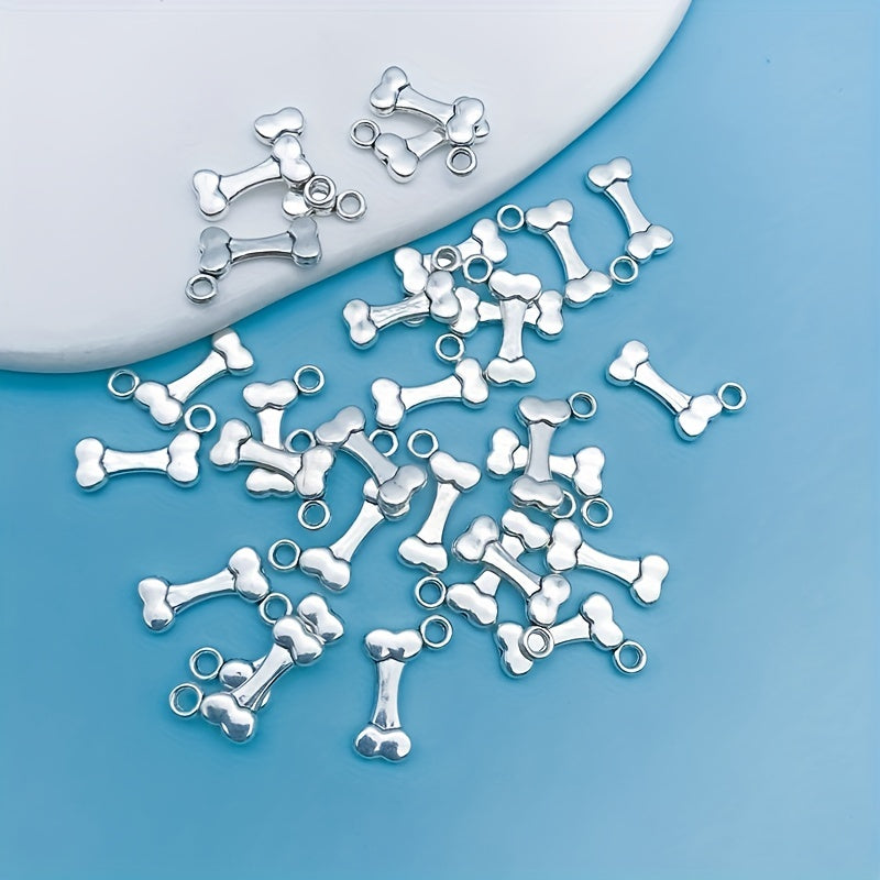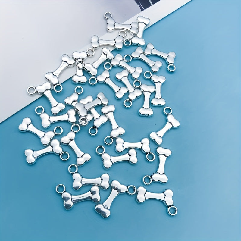 This pack includes 30 pieces of zinc alloy antique silver bone shape charms pendants, perfect for creating necklaces, bracelets, earrings, and other jewelry items. The charms are 14x10mm in size.