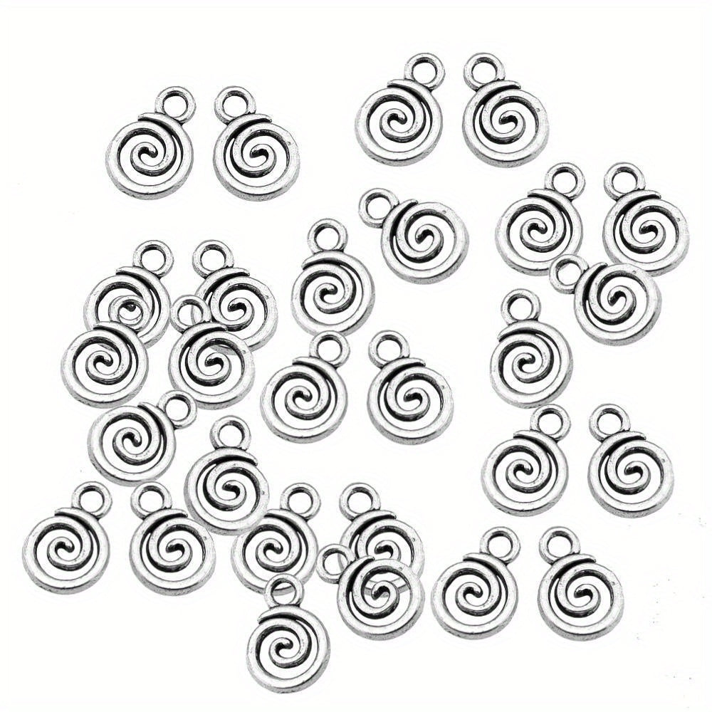 Create stunning jewelry with these antique silver spiral charms featuring star pentagram design. Ideal for earrings, bracelets, and necklaces. Perfect for DIY enthusiasts.