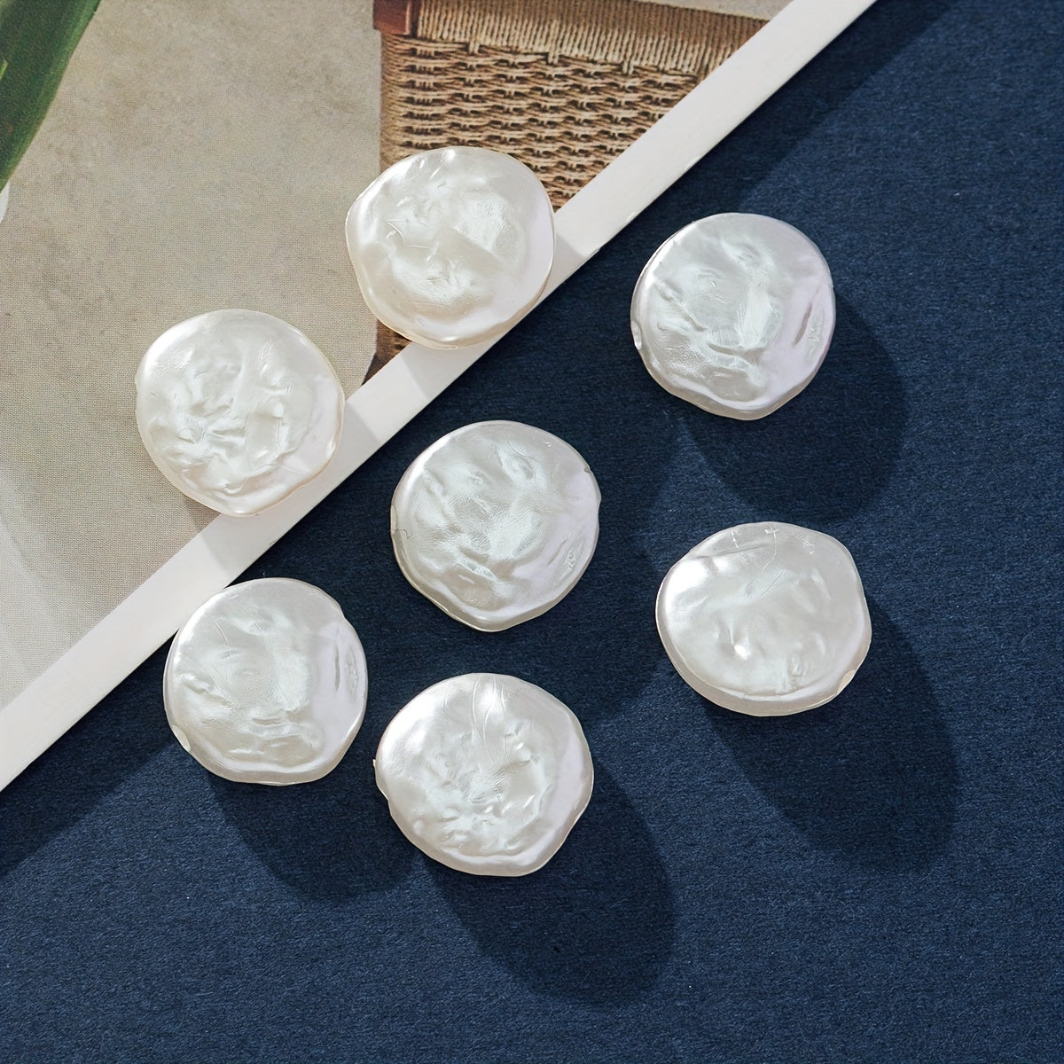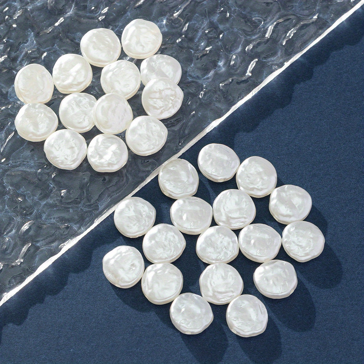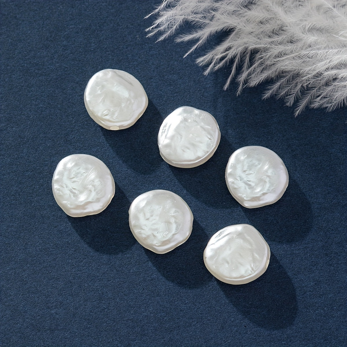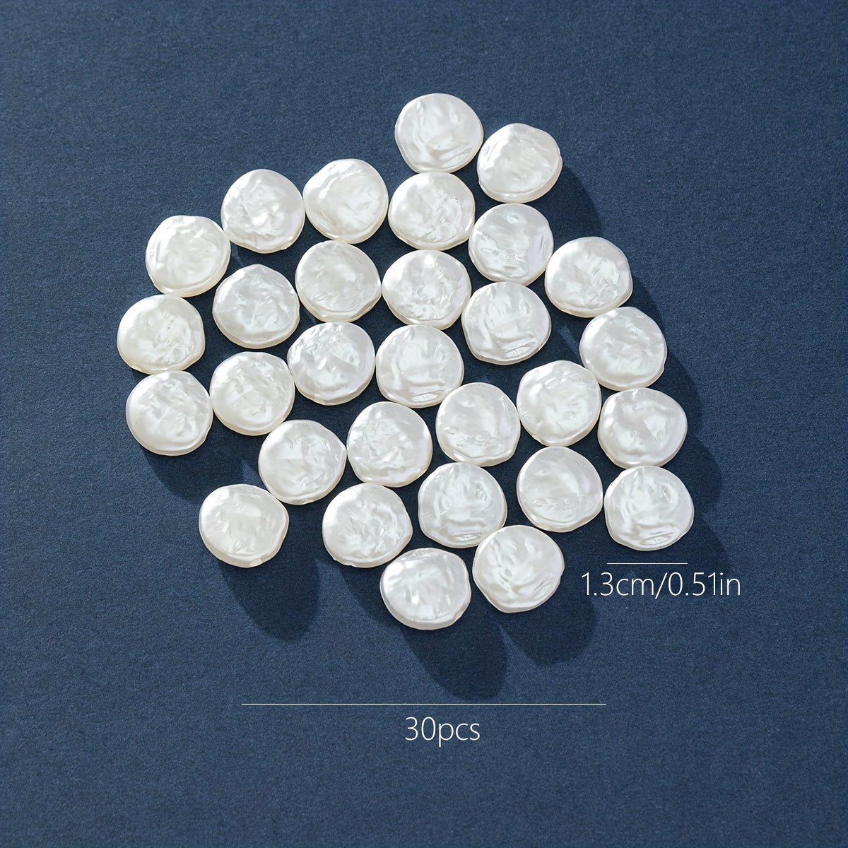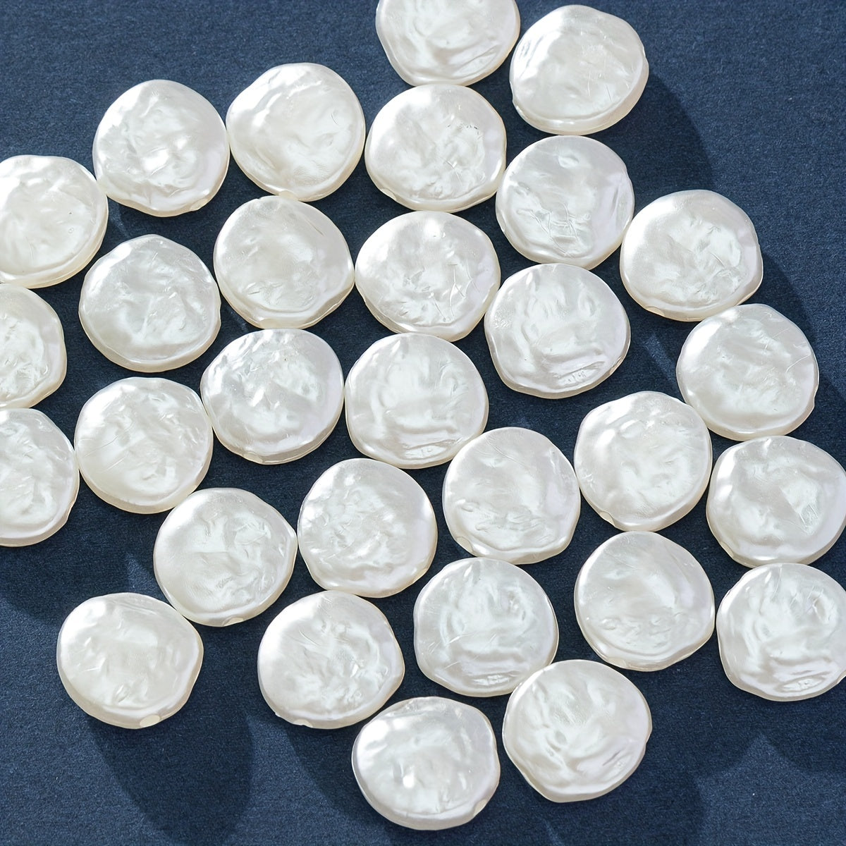 Enhance your jewelry designs with this pack of 30 flat round baroque plastic pearls perfect for DIY projects. Create stunning accessories with these versatile pearls.