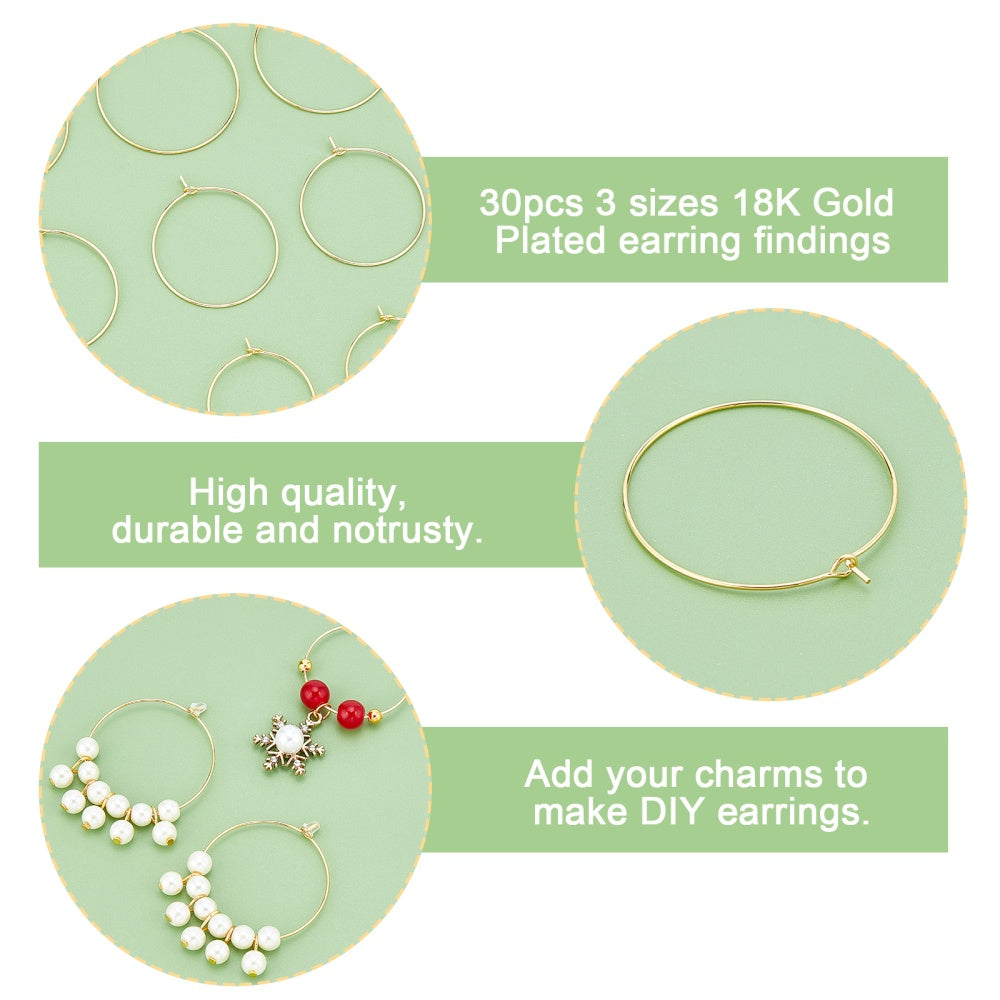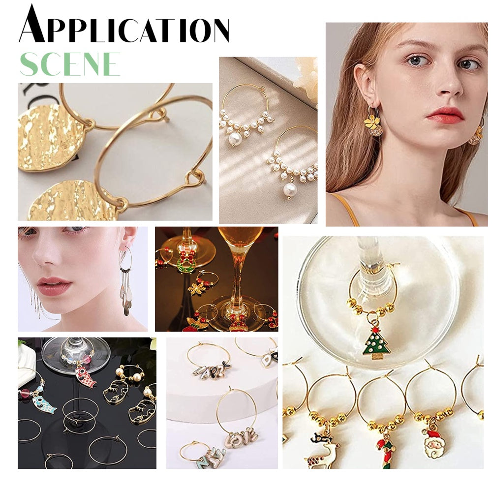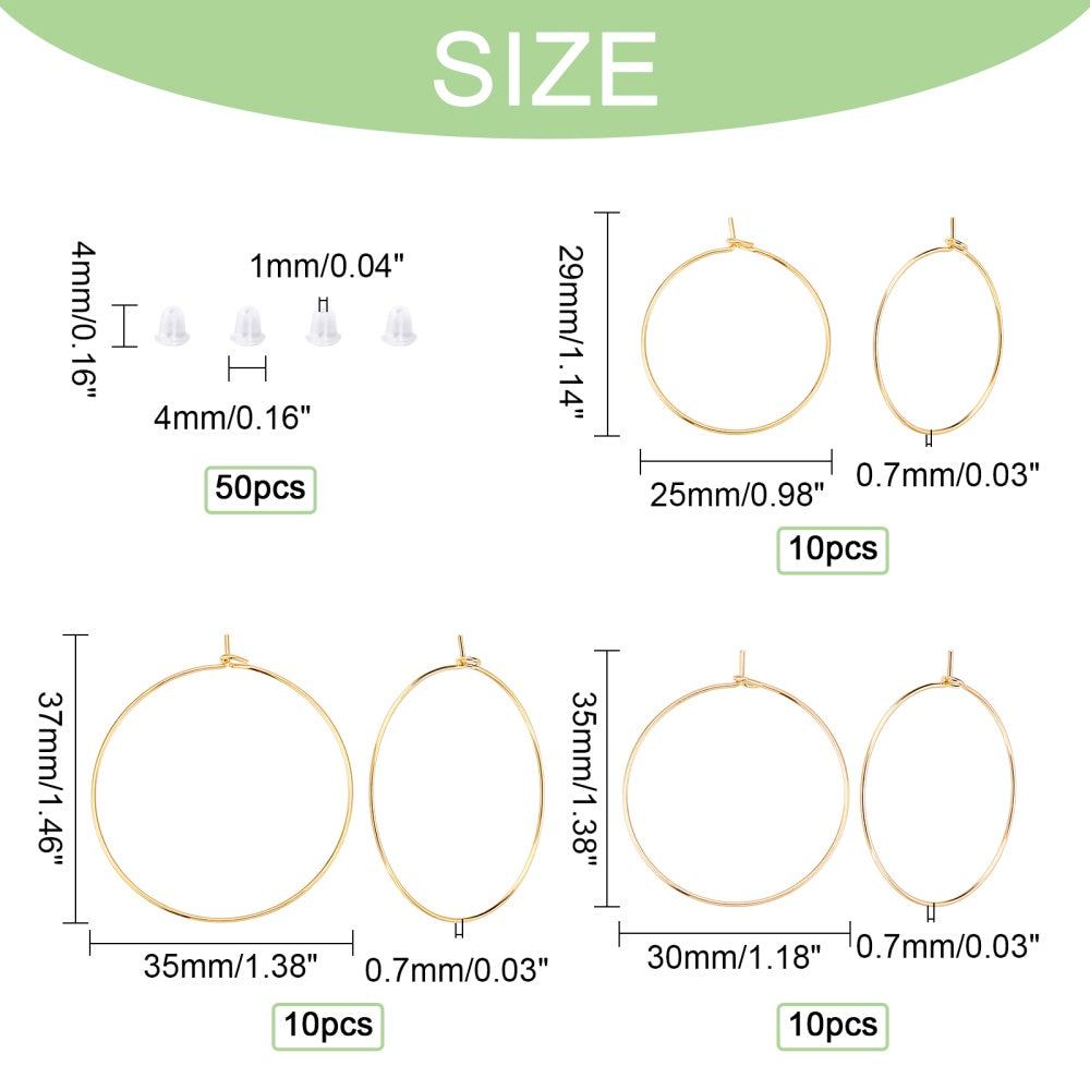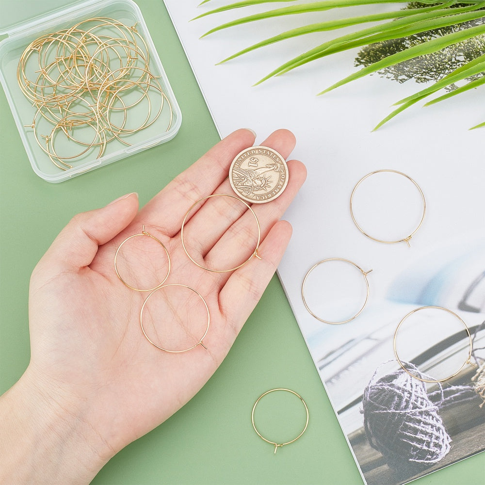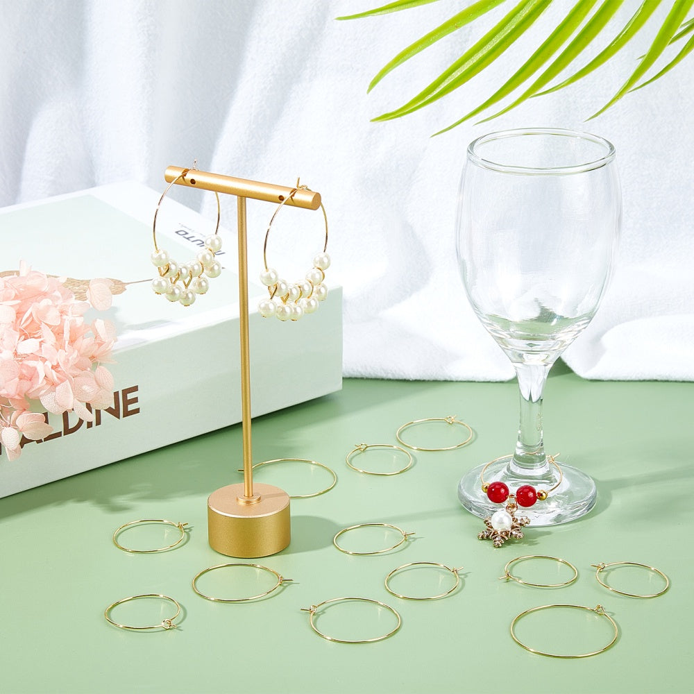 Get 30Pcs of 3 Style Brass Wine Glass Charms Rings Hoop Earring Findings with 50Pcs Plastic Ear Plugs for DIY Hoop Earrings Making in Nickel Golden 21 Gauge.