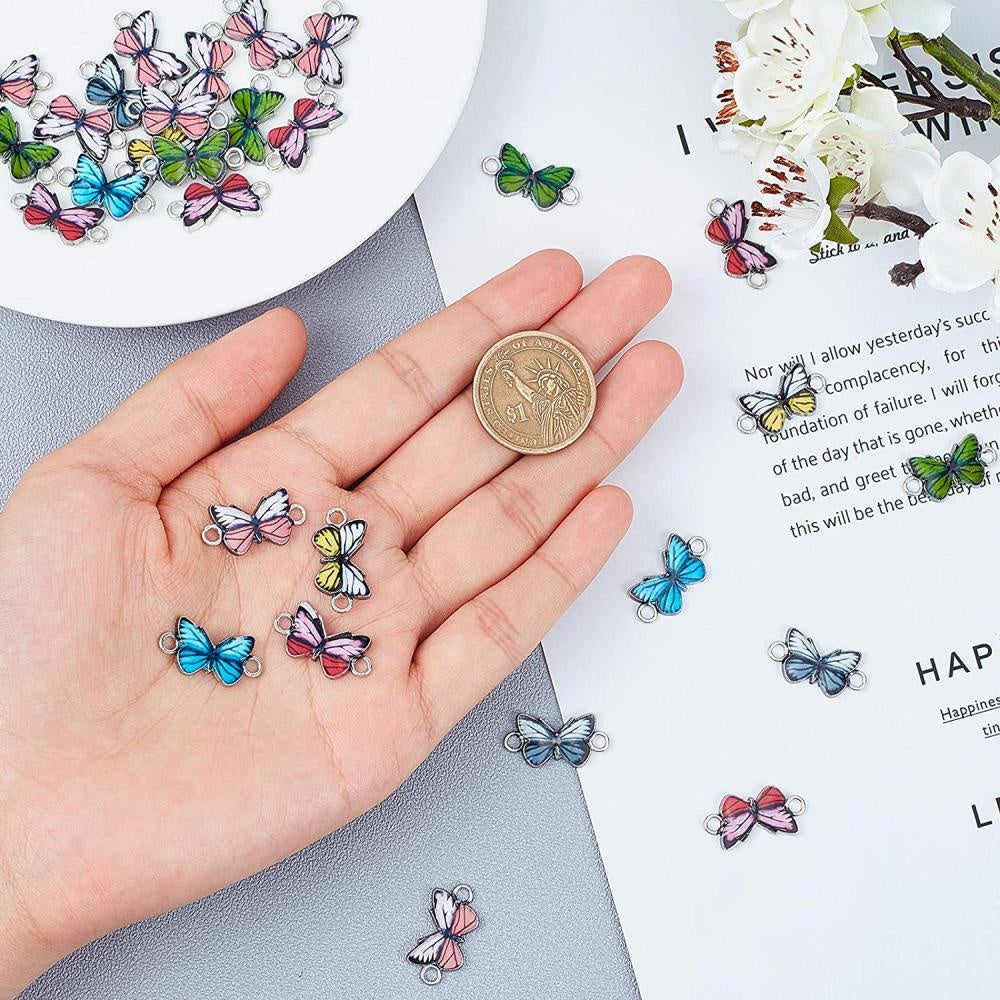 Create stunning jewelry pieces with these butterfly charms. Made of enamel alloy, perfect for earrings, bracelets, and necklaces. Add a touch of nature-inspired beauty to your DIY creations.