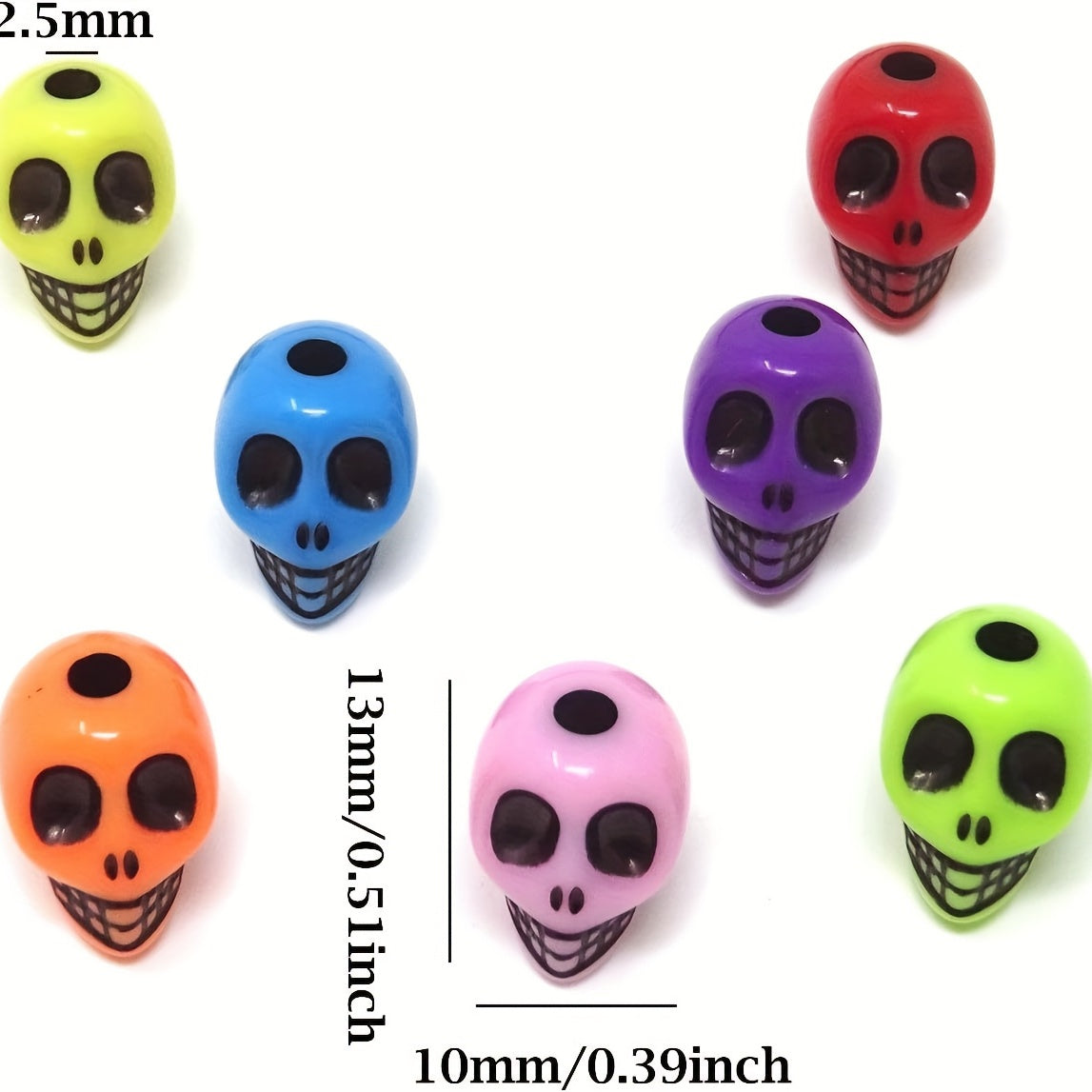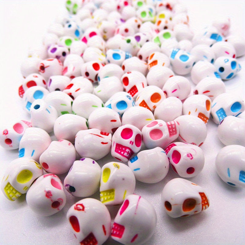 Add a touch of edgy style to your jewelry projects with these colorful acrylic skull beads. Perfect for creating unique bracelets, necklaces, earrings, and pendants.