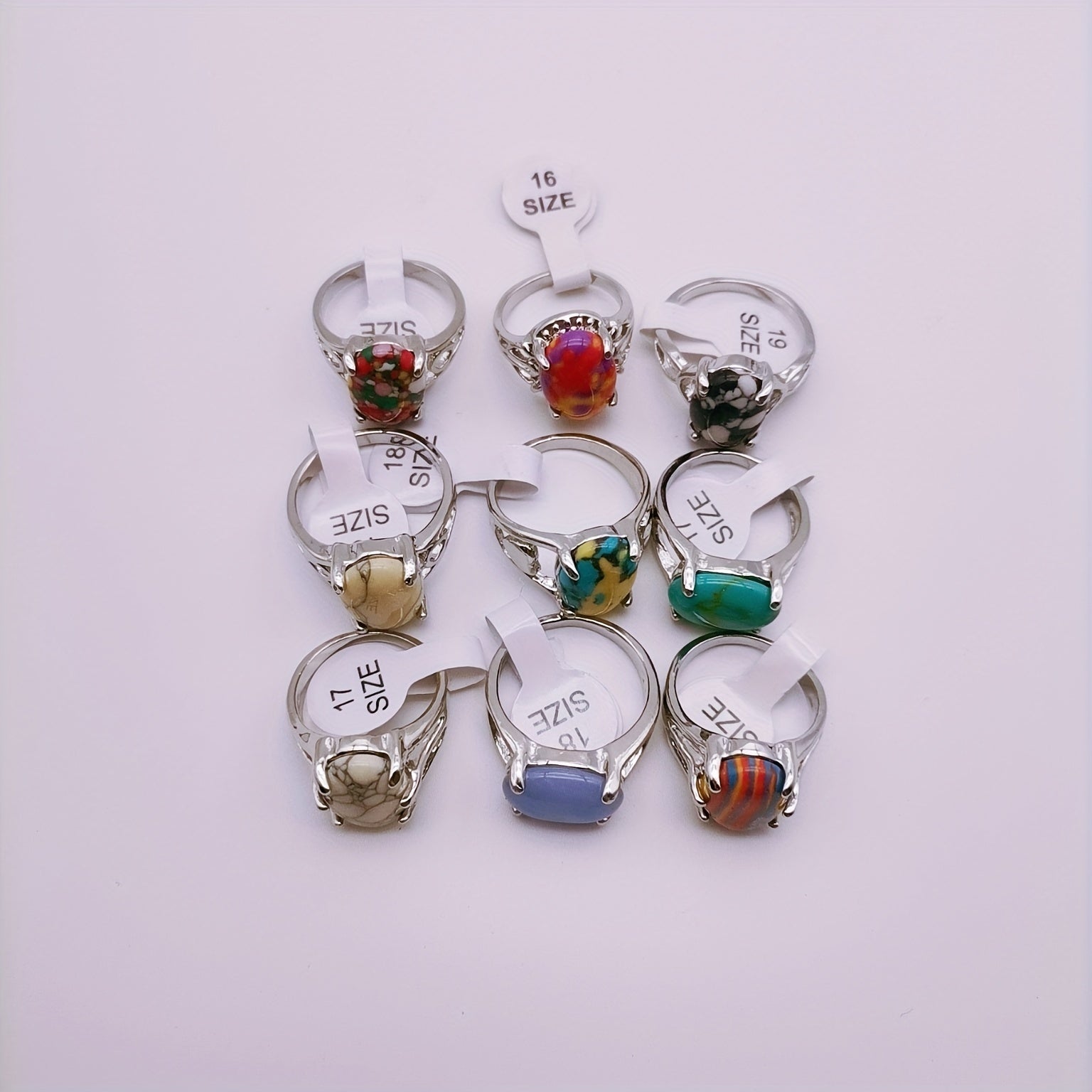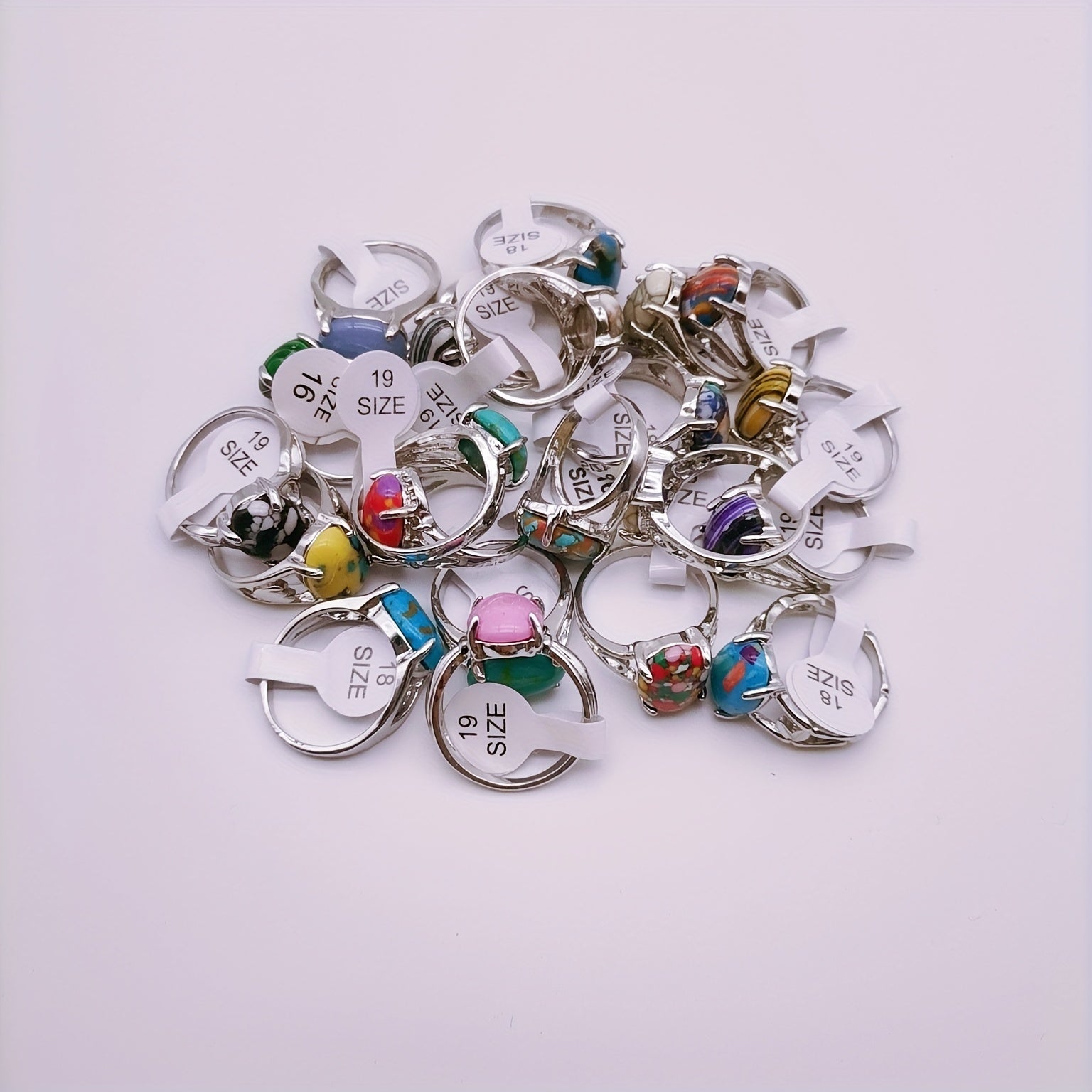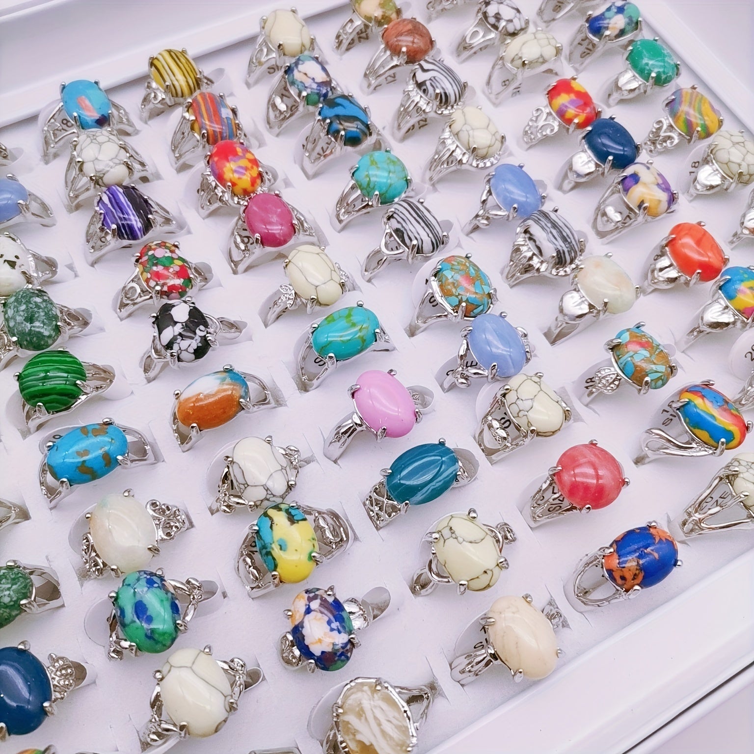Add a touch of vintage charm to your look with these 30pcs inlaid colorful oval cut faux gems finger rings. Perfect for parties and couples.