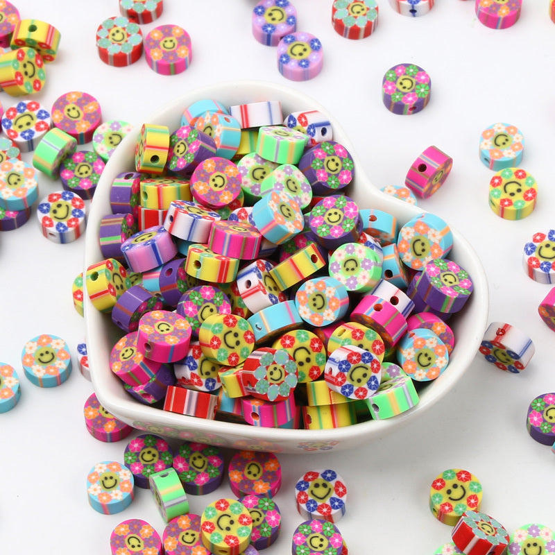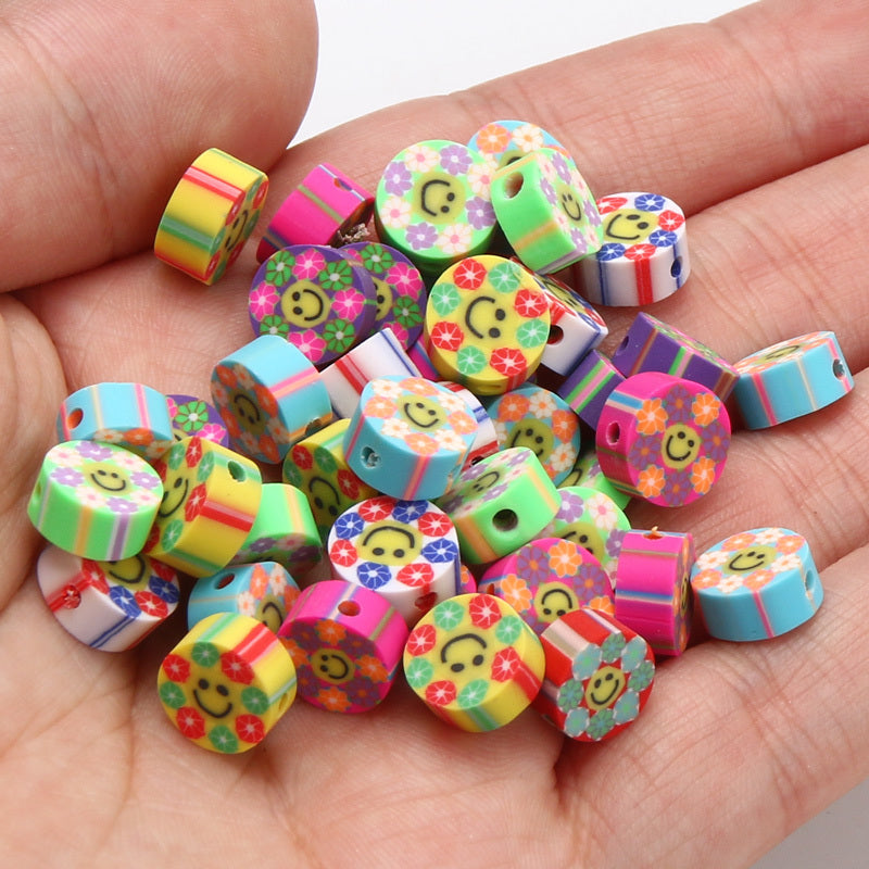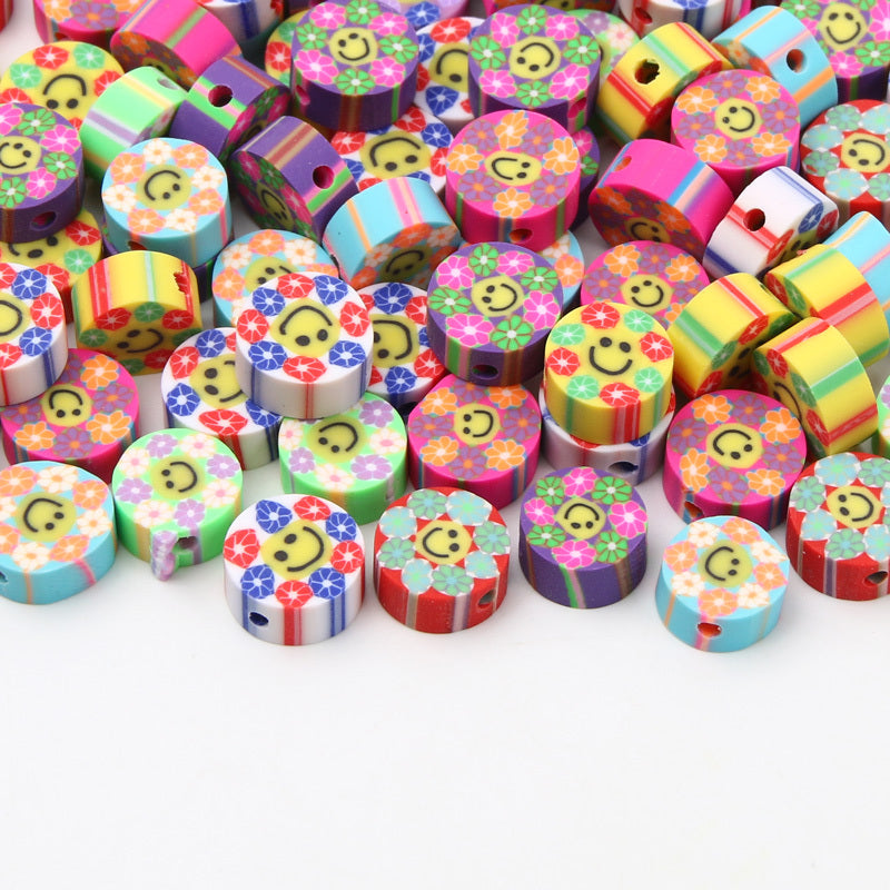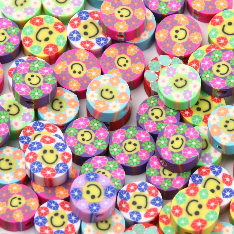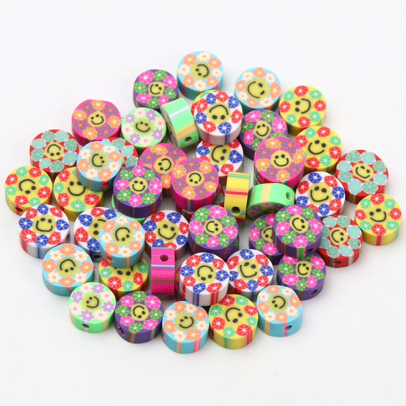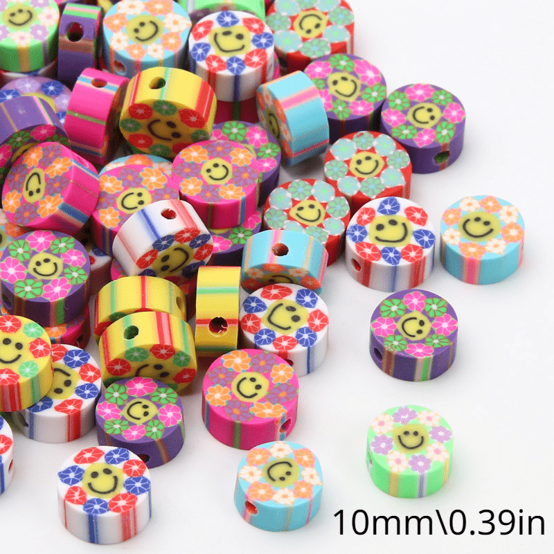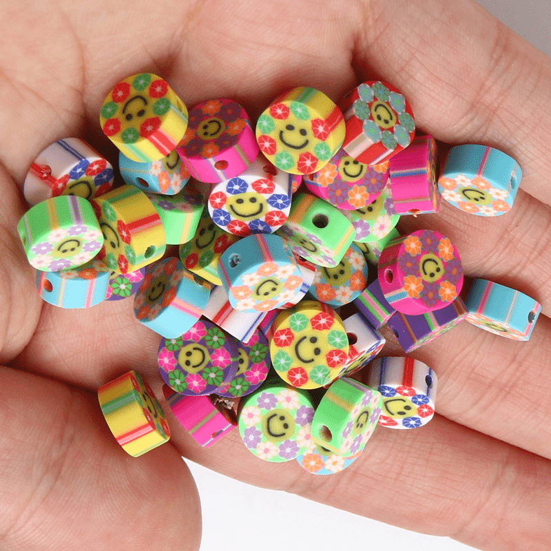 These vibrant polymer clay beads feature a flower pattern and are perfect for DIY bracelet projects. Add a touch of color to your accessories!