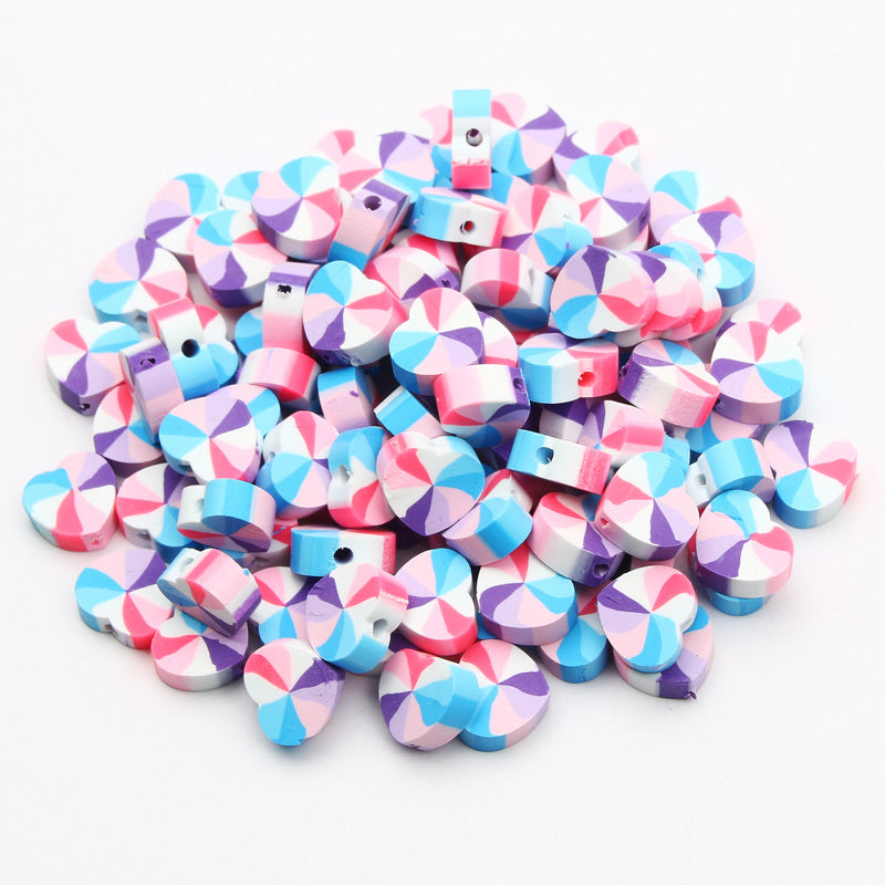Get creative with these colorful heart-shaped polymer clay beads that are perfect for making bracelets and other jewelry. Each pack contains 30 loose spacer beads.