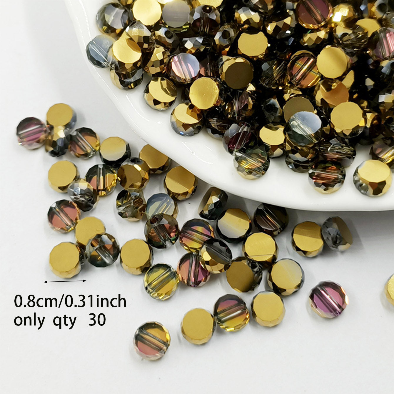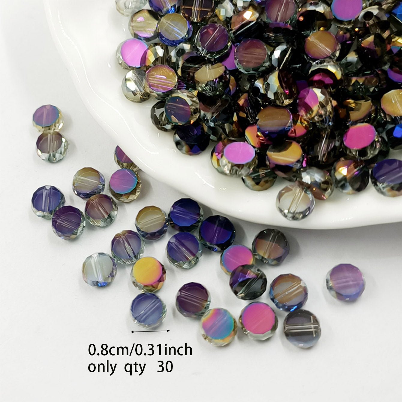Add a pop of color to your jewelry creations with this pack of 30 round pie shape loose beads. Perfect for bracelets, necklaces, and more!