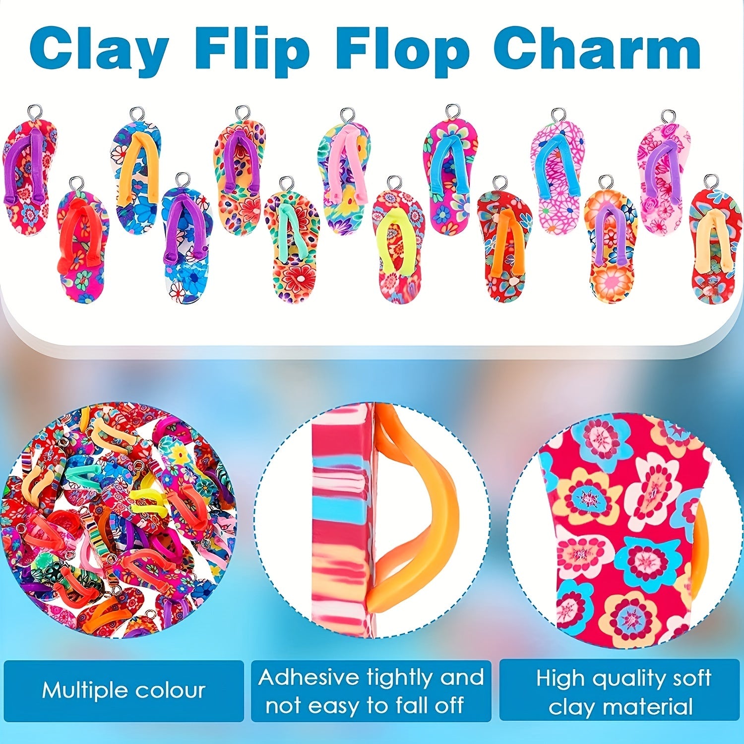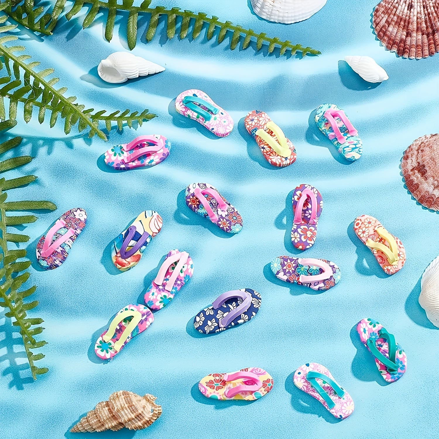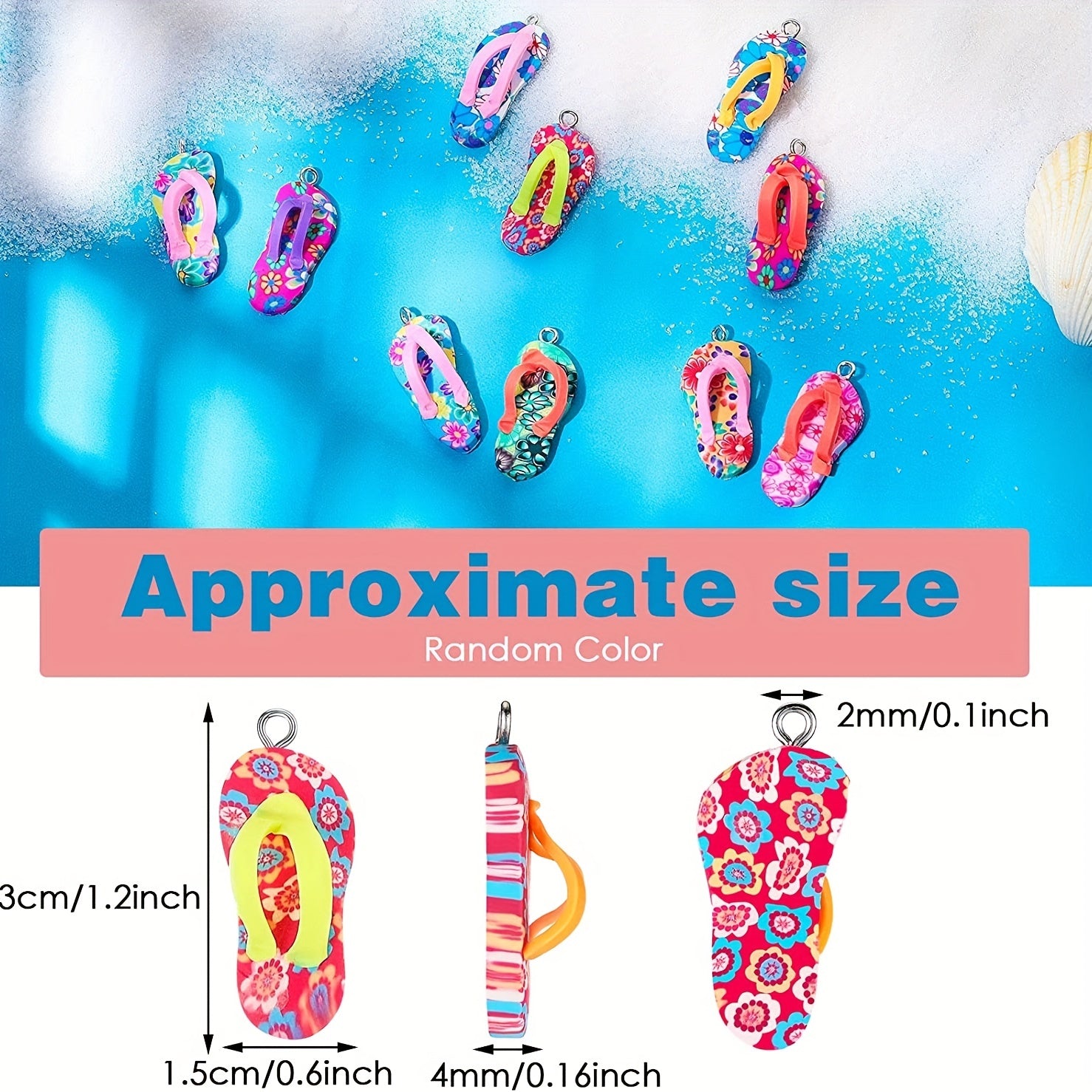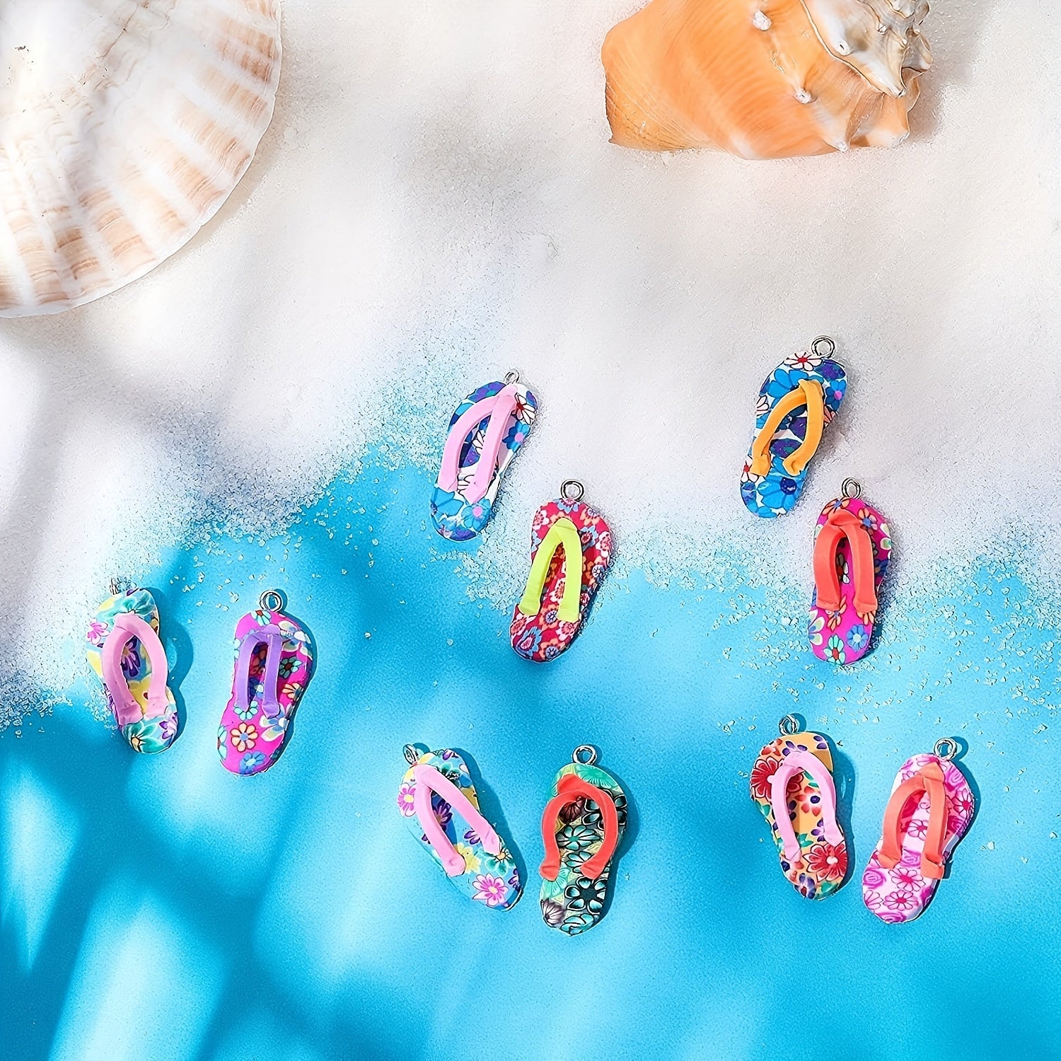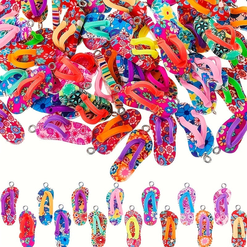 These mini flip flop charms are made from polymer clay and come in a variety of vibrant colors. Perfect for adding a fun touch to your necklace, earrings, or bracelet designs.