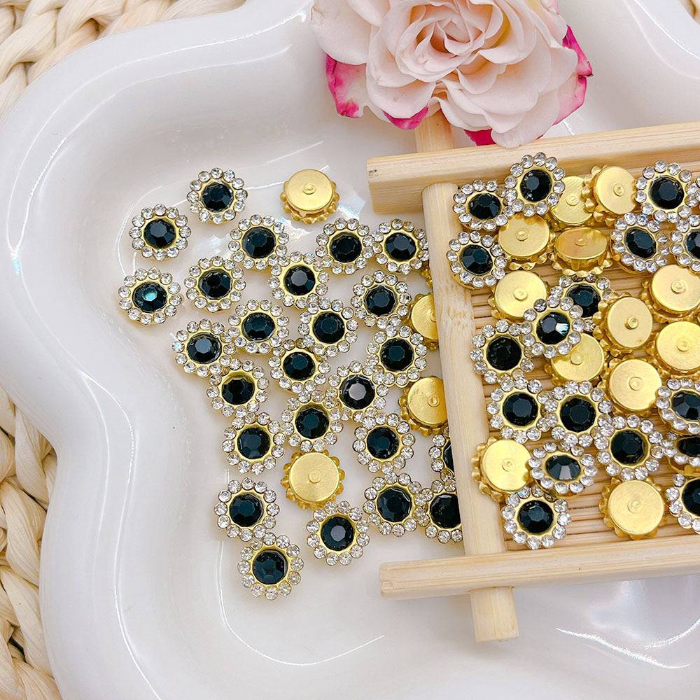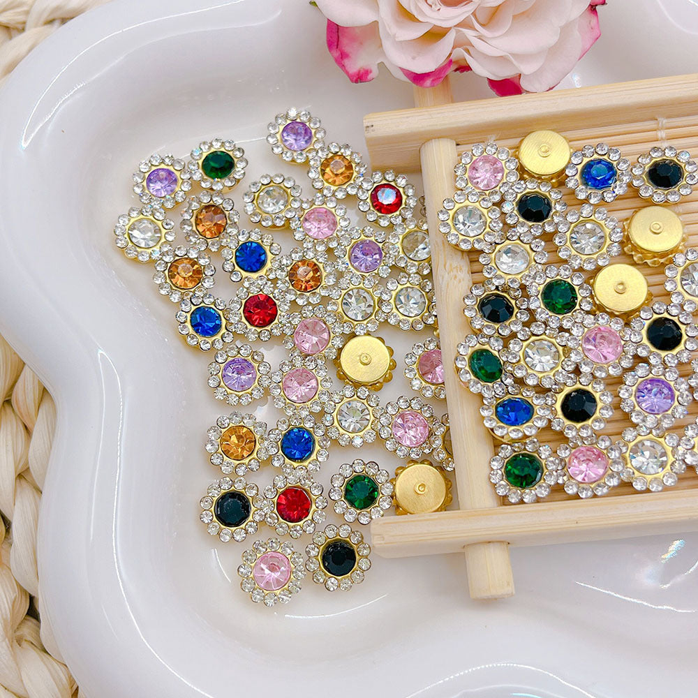 Enhance your jewelry projects with these 30pcs of colorful rhinestone sunflower round disc buckles. Perfect for DIY jewelry making and crafting.