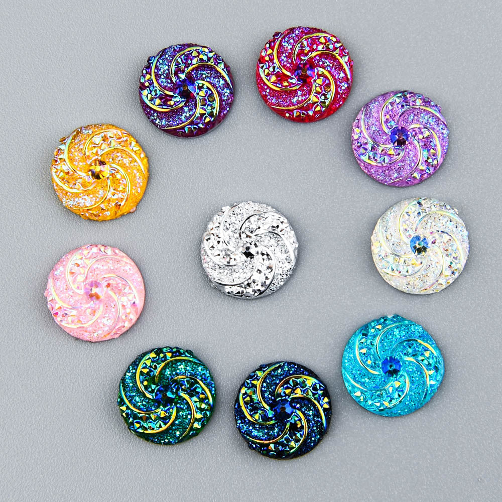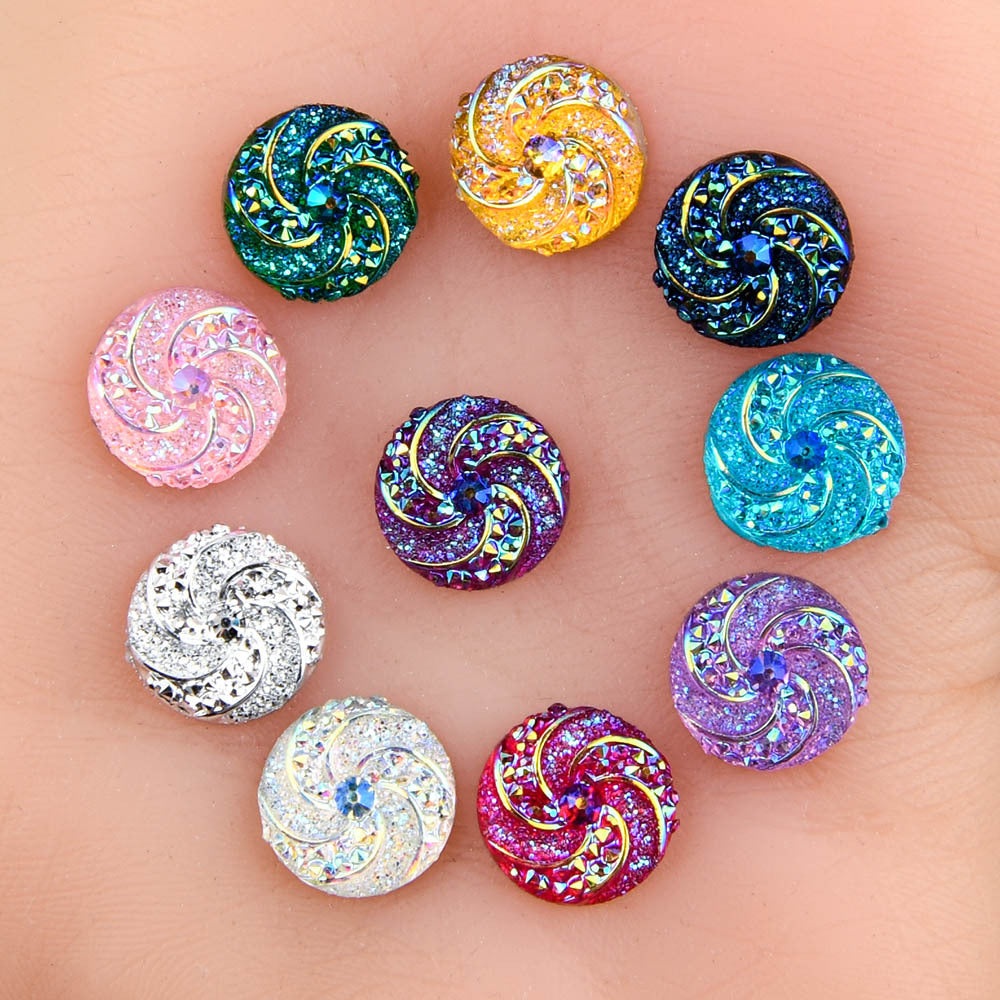 Add a pop of color to your jewelry designs with these 30pcs round whirlwind pattern resin charms. Perfect for DIY necklaces, bracelets, and earrings.
