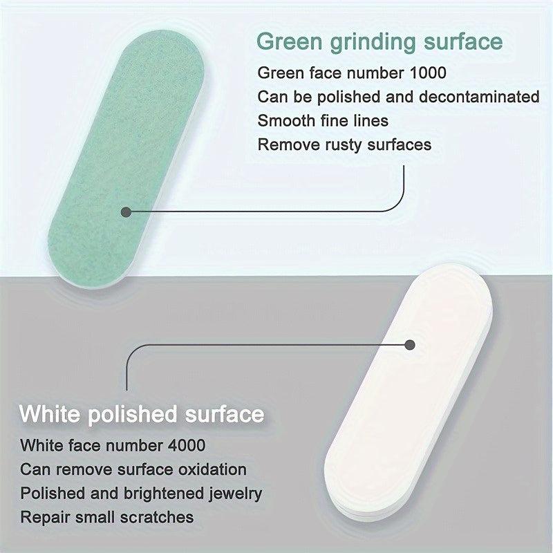 Easily clean and enhance the shine of your jewelry with these dual-sided plastic buffing sticks. Ergonomically designed for effortless use, no power needed.
