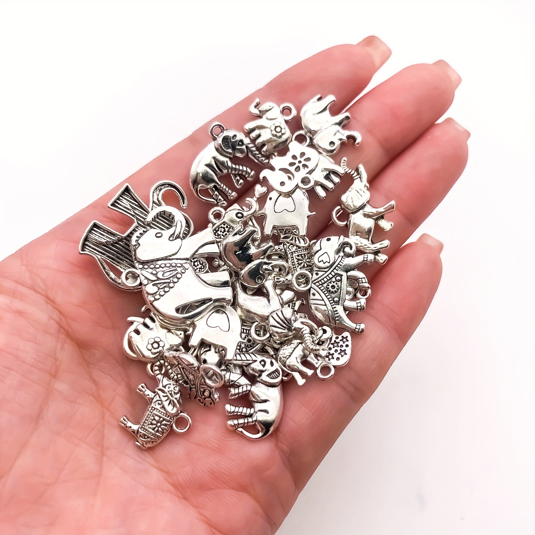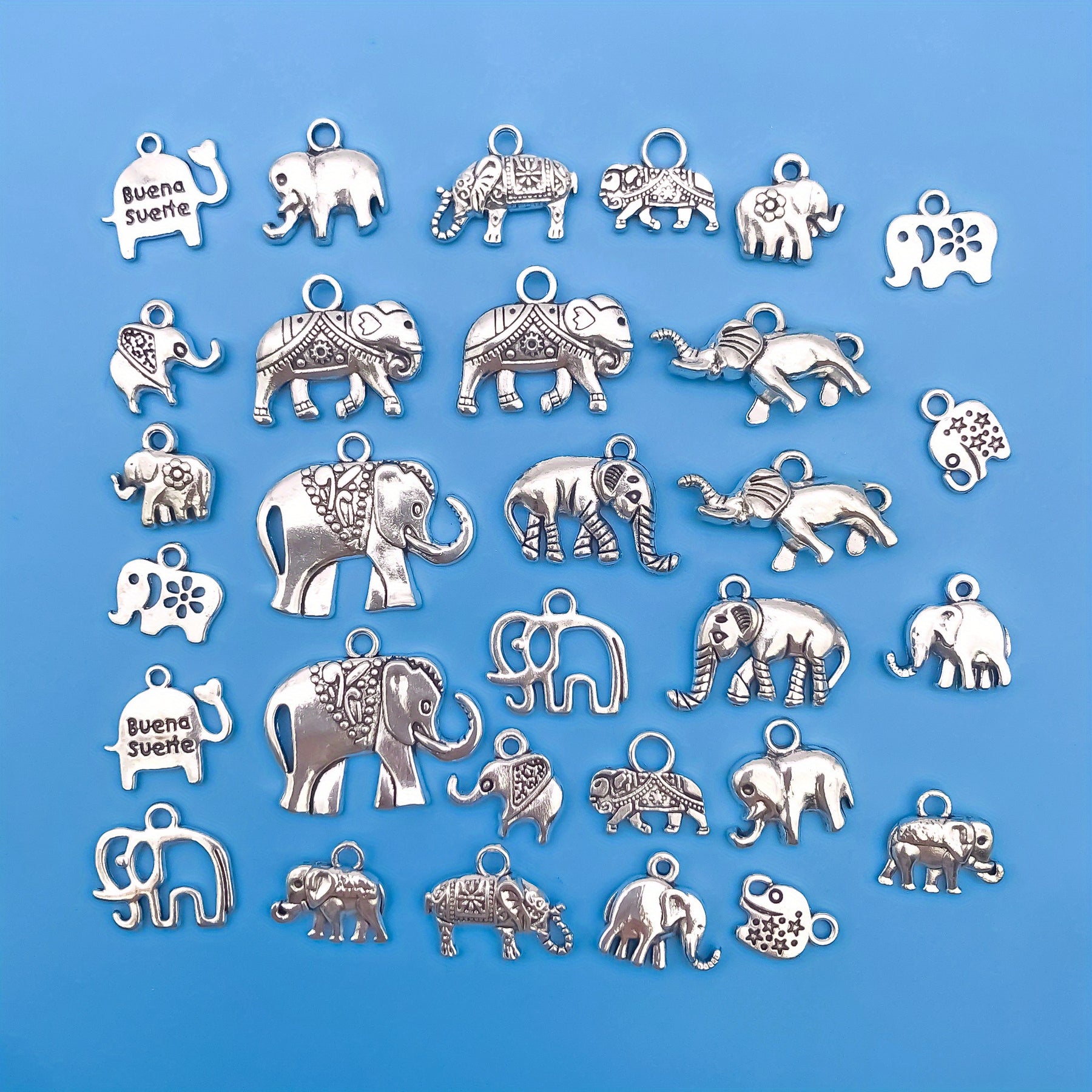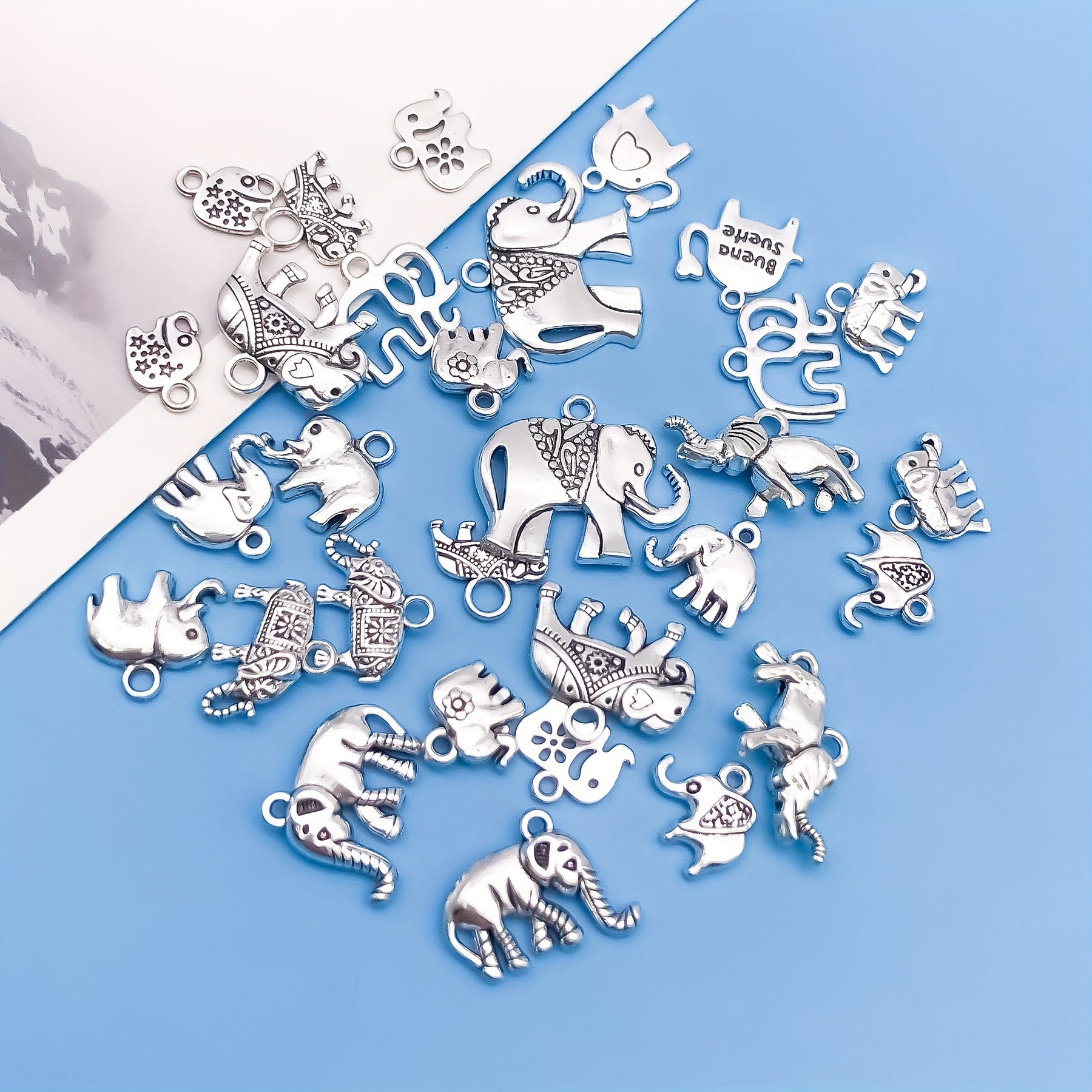 This set includes 30 zinc alloy antique silver elephant charms pendants that are perfect for creating necklaces, bracelets, earrings, and other jewelry pieces. Add a touch of animal-inspired charm to your handmade creations.
