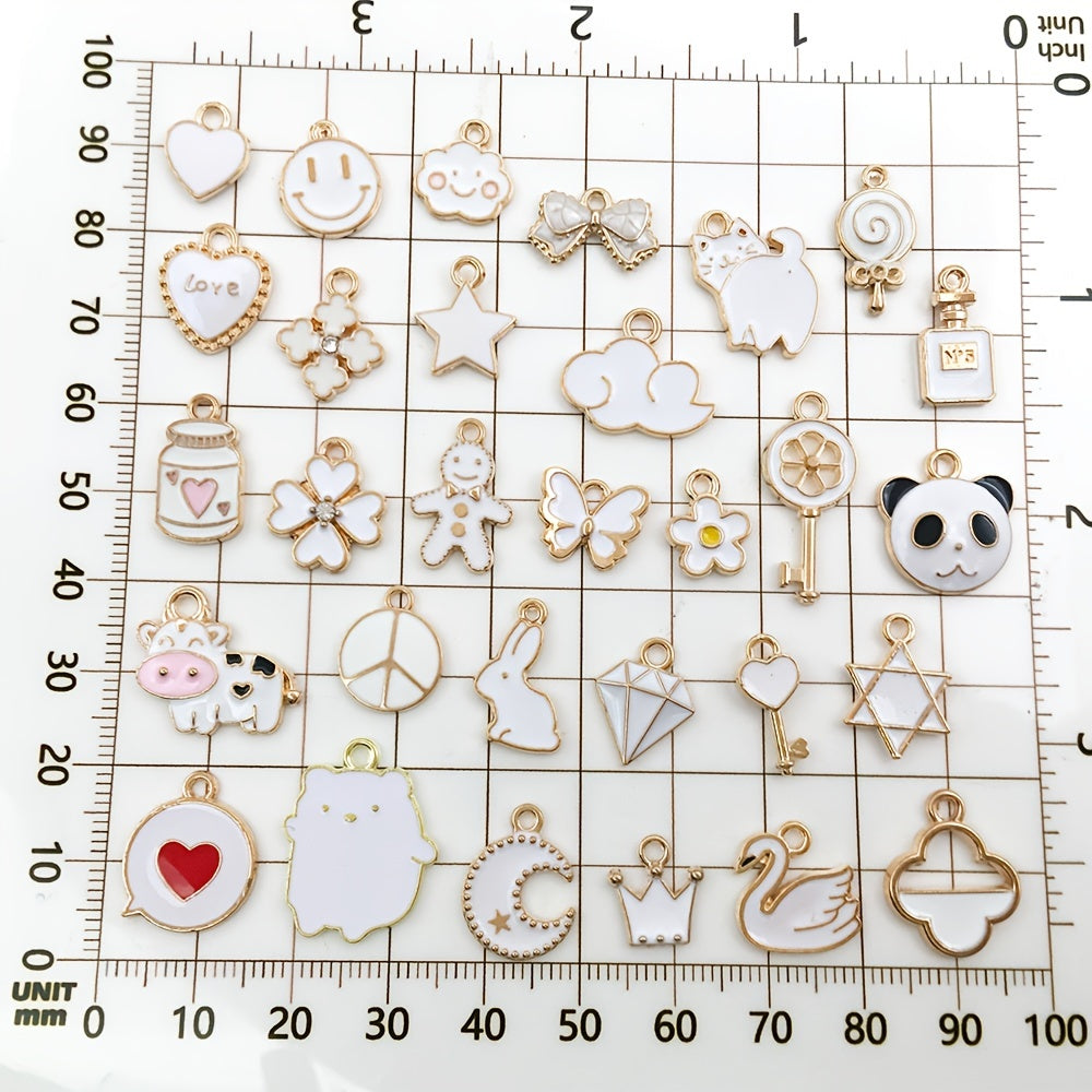 This set includes 30 enamel plated pendants that are perfect for creating your own necklaces and bracelets. Ideal for DIY jewelry projects.