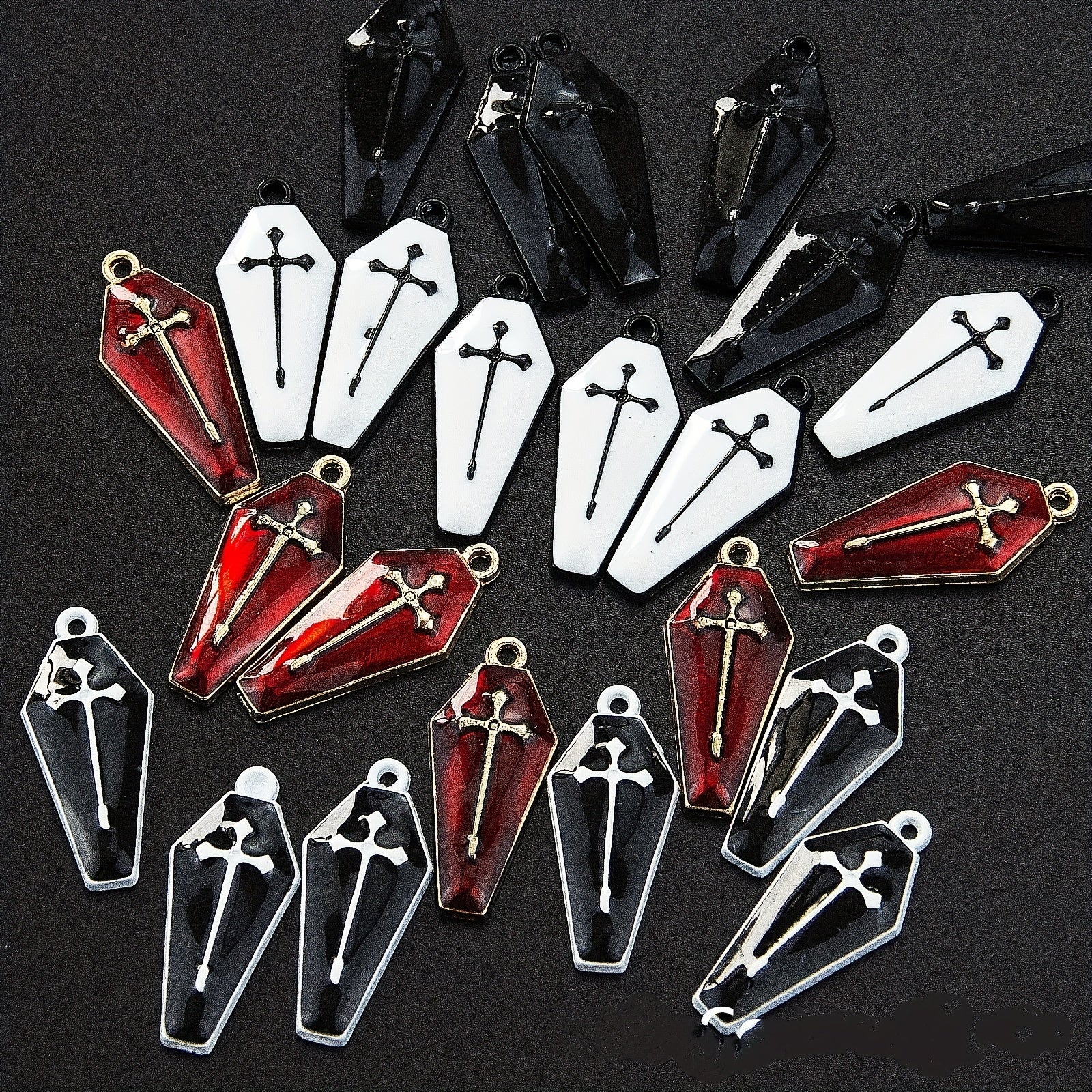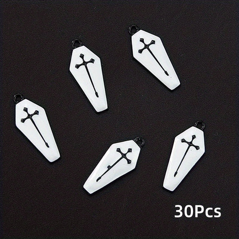 Add a spooky touch to your DIY jewelry with these Halloween-themed cross coffin charms. Perfect for necklaces, bracelets, and earrings.