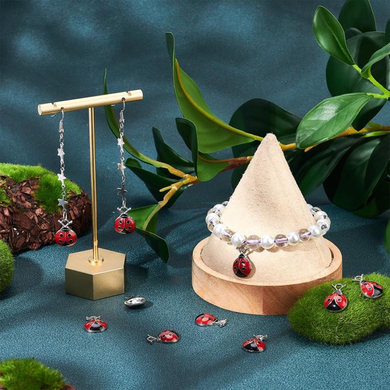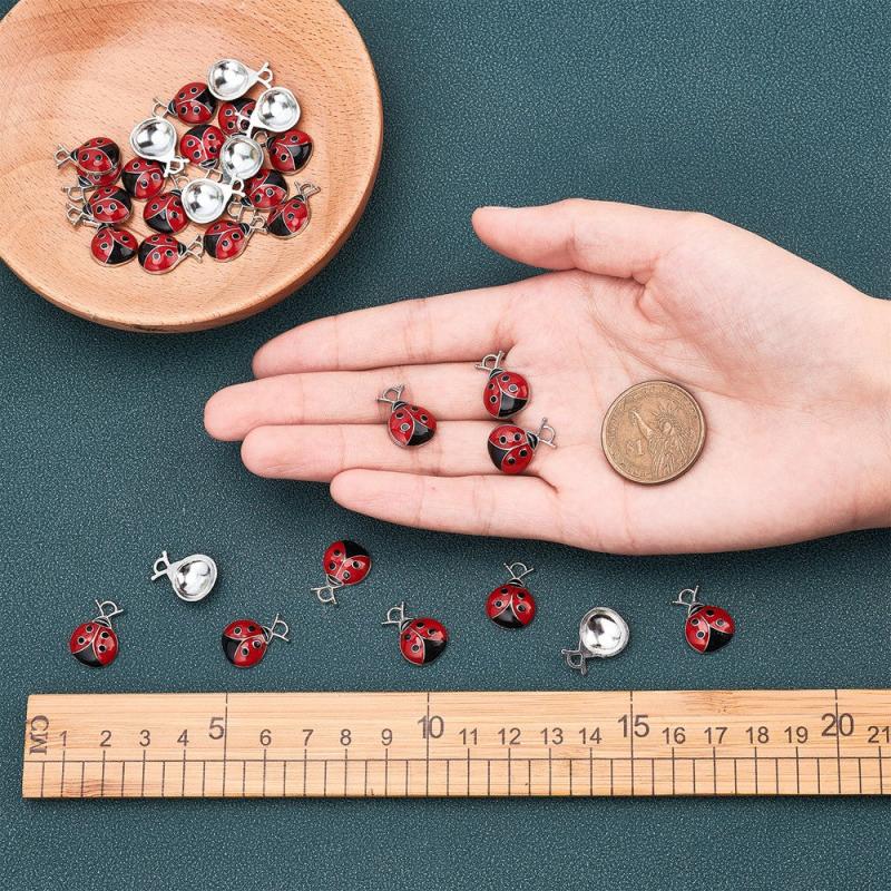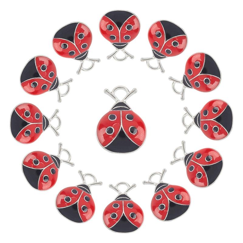 Get creative with these ladybug alloy enamel pendants! Perfect for making earrings, bracelets, necklaces, and more. Lead and cadmium free. Each pendant measures 17.5x12.5x4mm.