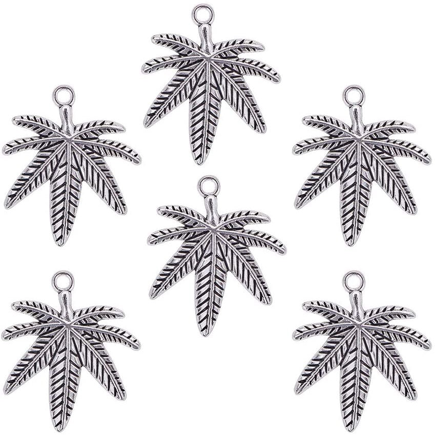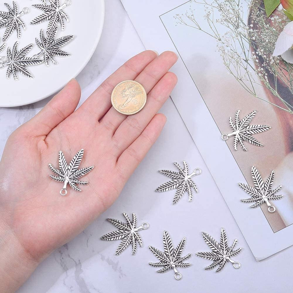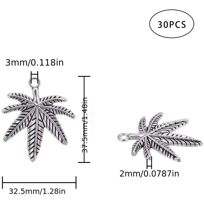 This set includes 30 antique silvery leaf alloy pendants for creating earrings, bracelets, necklaces, and other accessories. Each pendant measures 37.5x32.5x2mm with a hole size of 3mm.