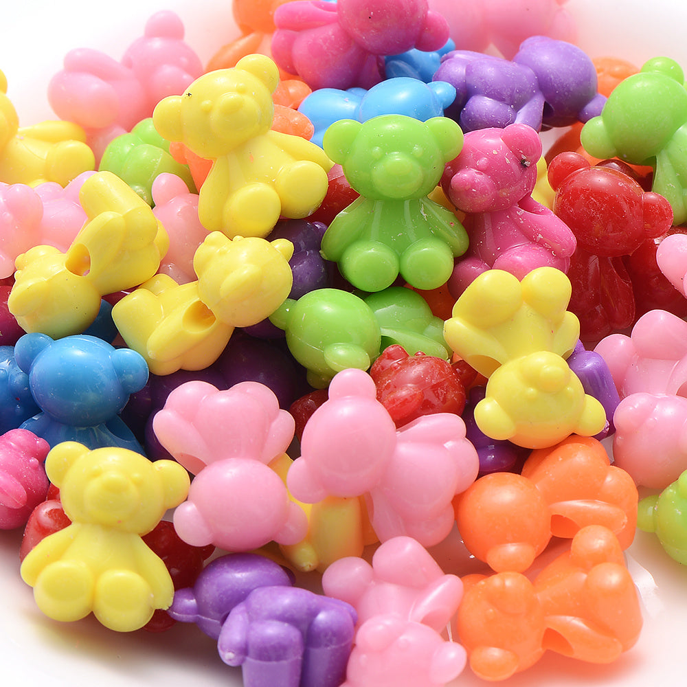 30pcs Mix Bear Spacer Beads Big Hole Acrylic Animal Beads DIY Jewelry Craft