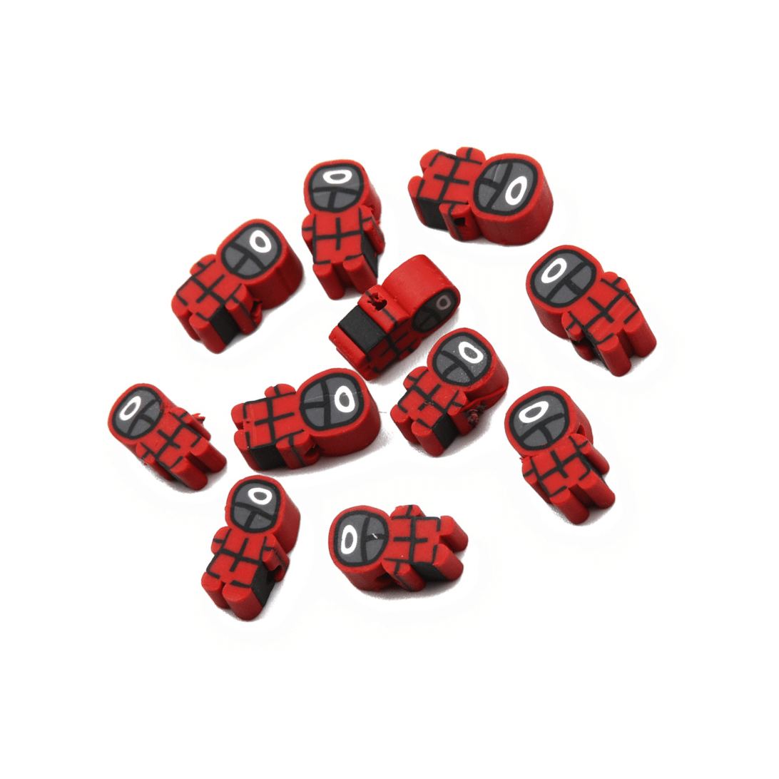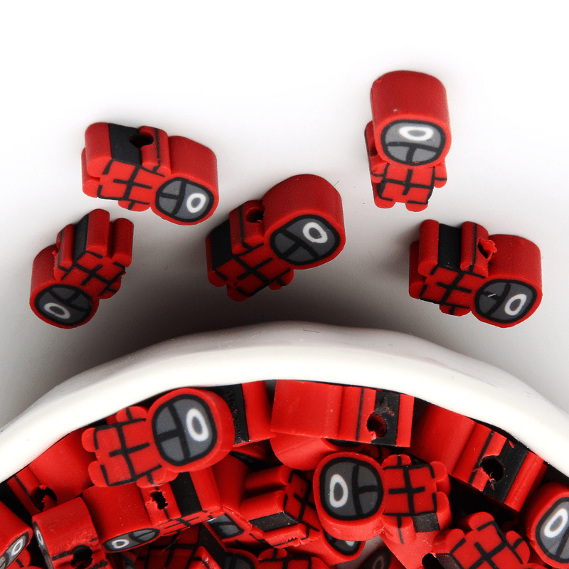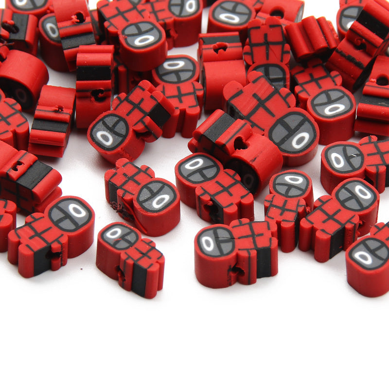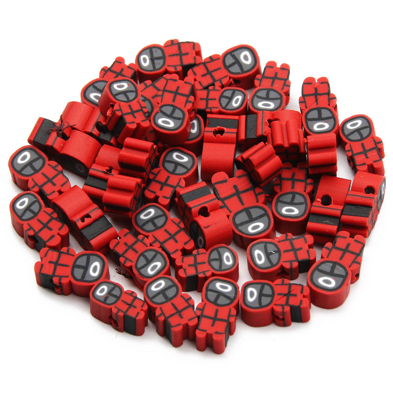 These 6x10mm red polymer clay beads feature cute cartoon figures, perfect for creating bracelets, necklaces, and other DIY accessories.