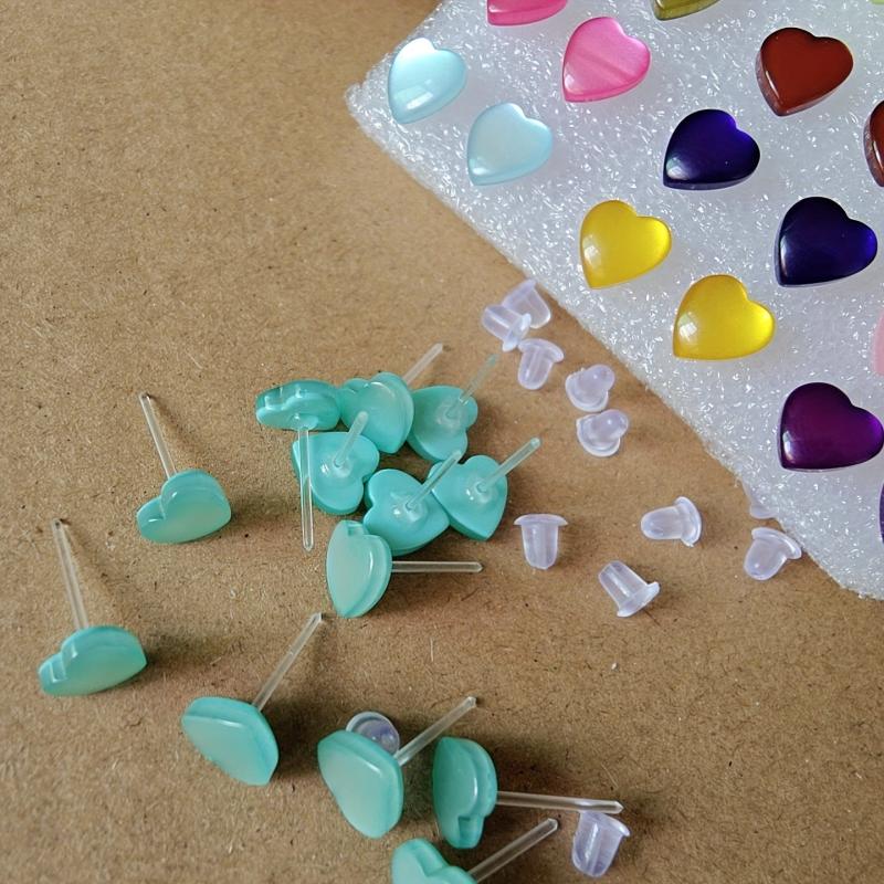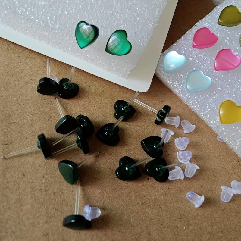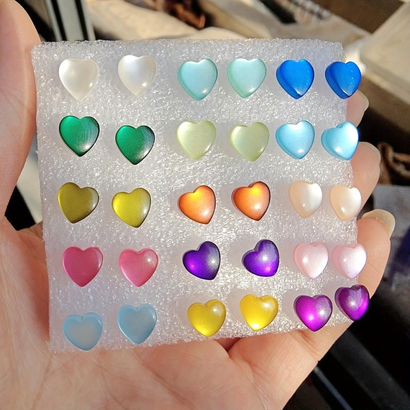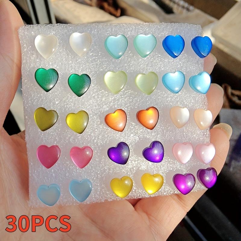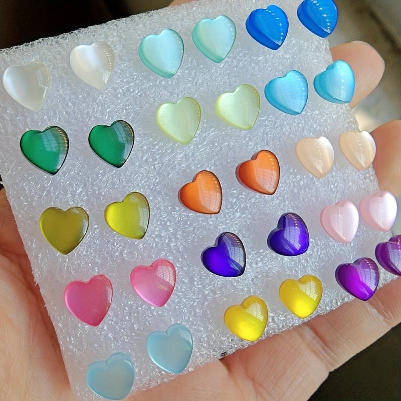 This set includes 30 love resin earring studs with cat eye design and plastic posts. Perfect for daily wear or vacation outfits, these earrings are suitable for all seasons.