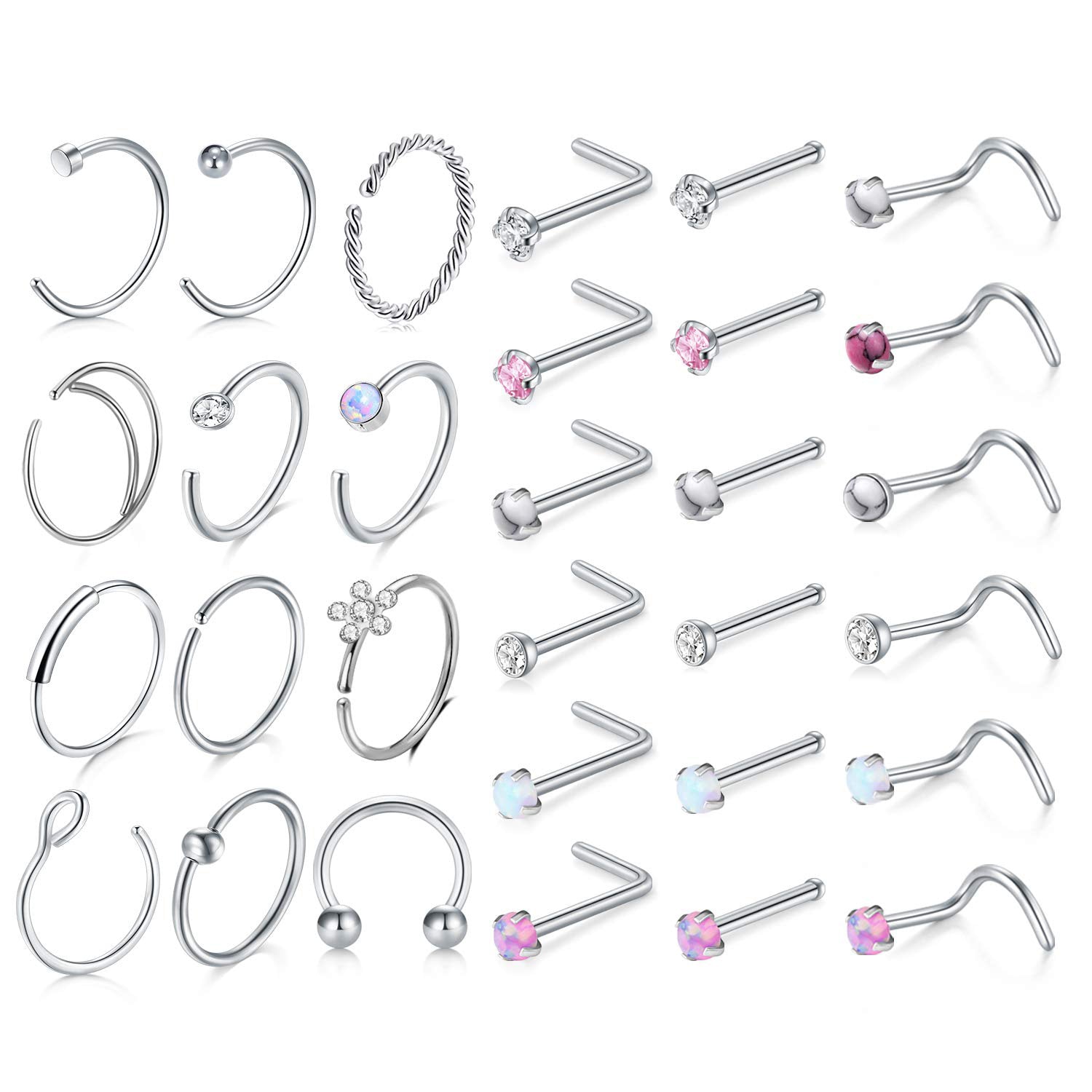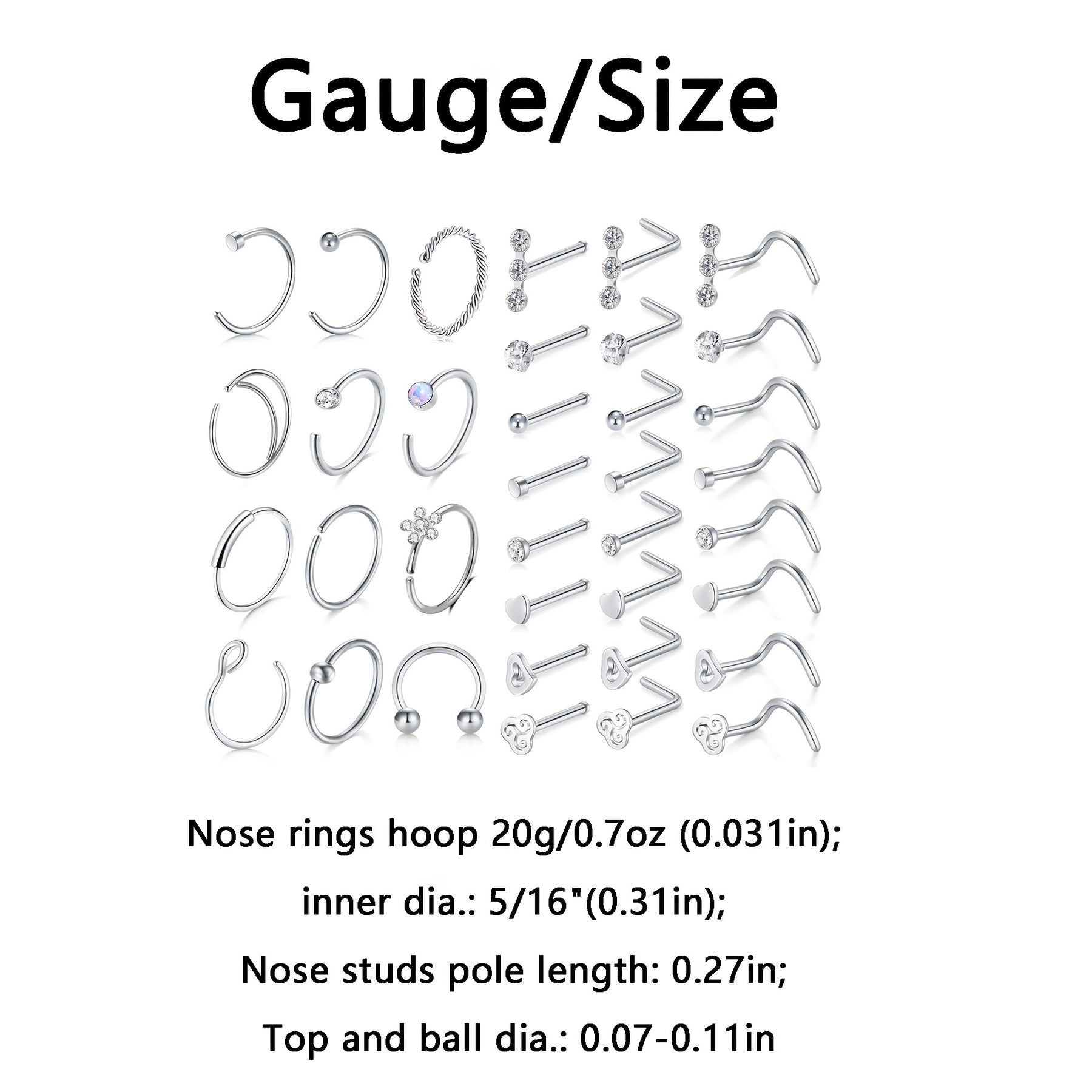 This set includes 30 stainless steel studs hoops nose rings for women. Perfect for nose piercings and stylish looks.
