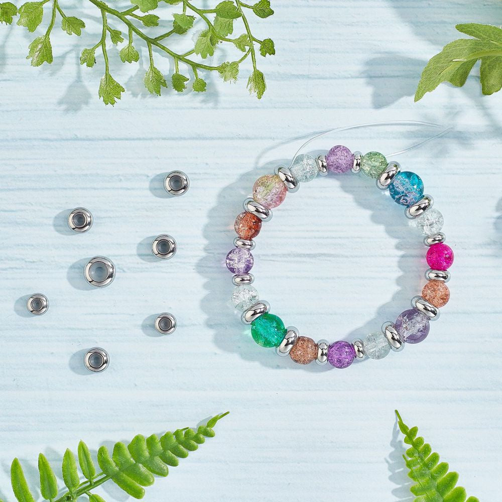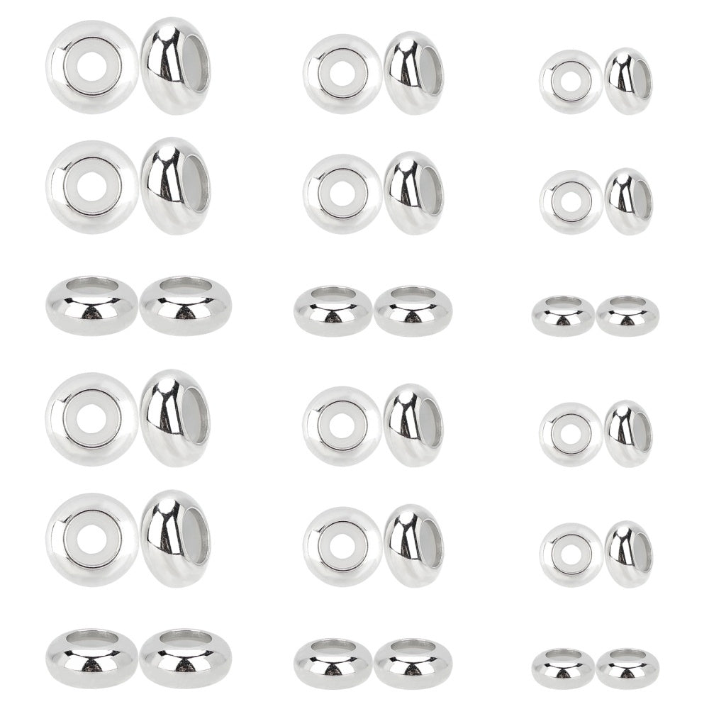 This box contains 30 stainless steel beads with rubber inside, perfect for creating stylish jewelry pieces. Each bead measures 7x10x3.5mm.