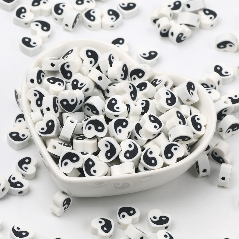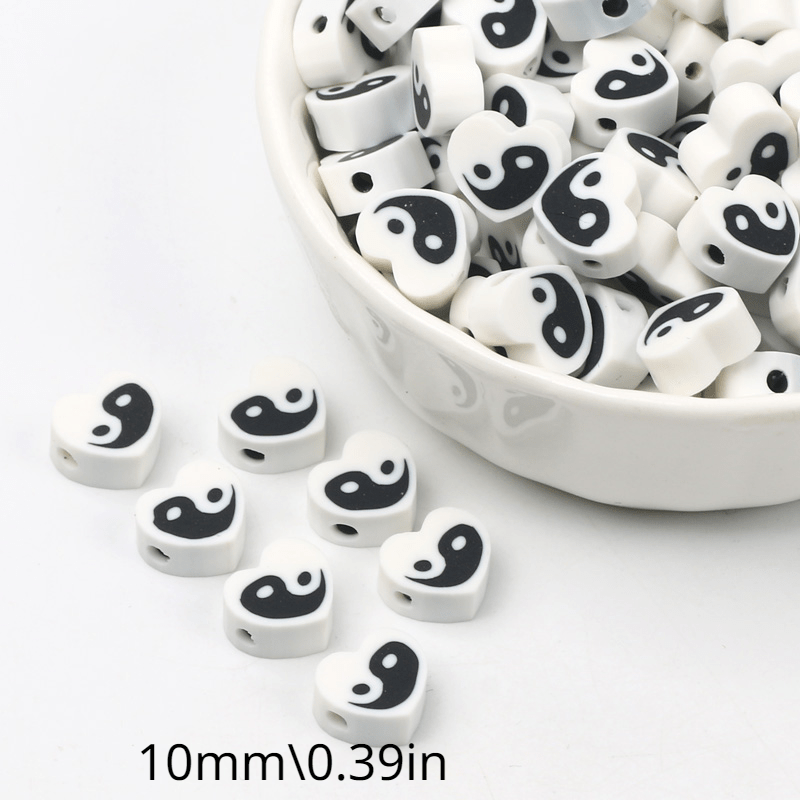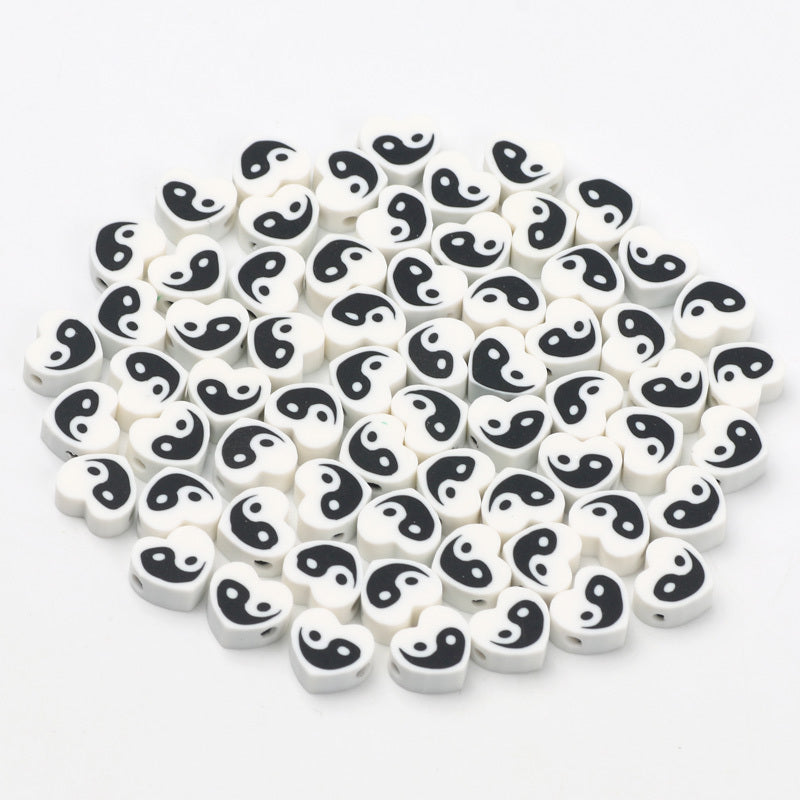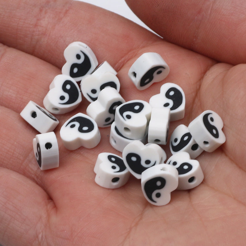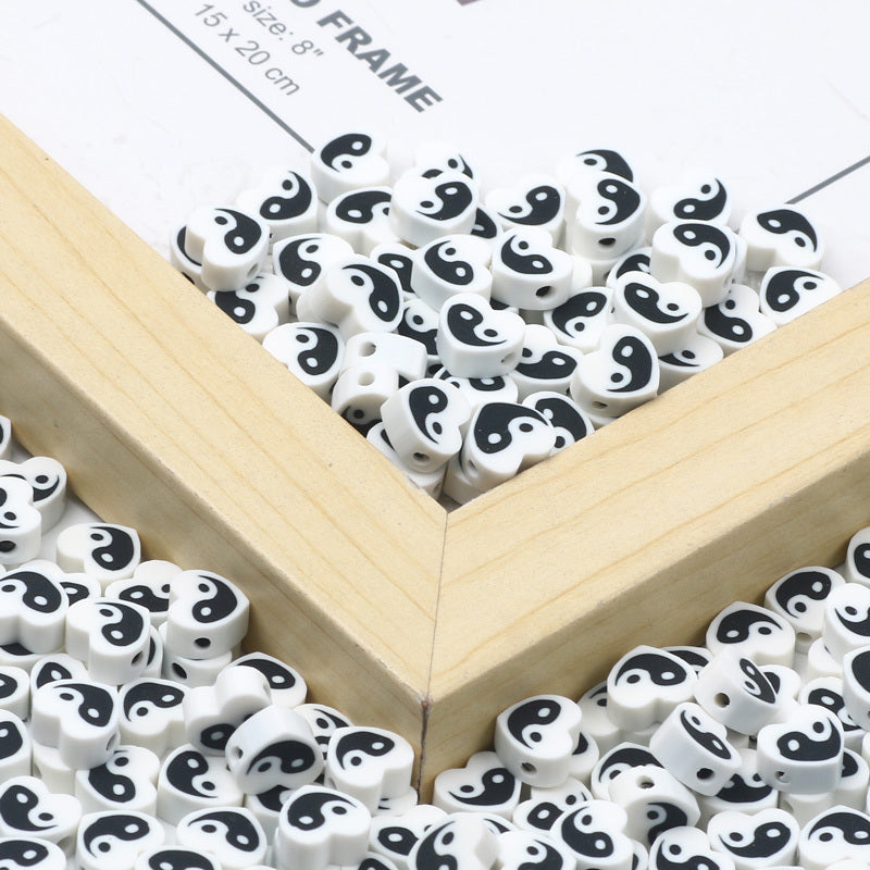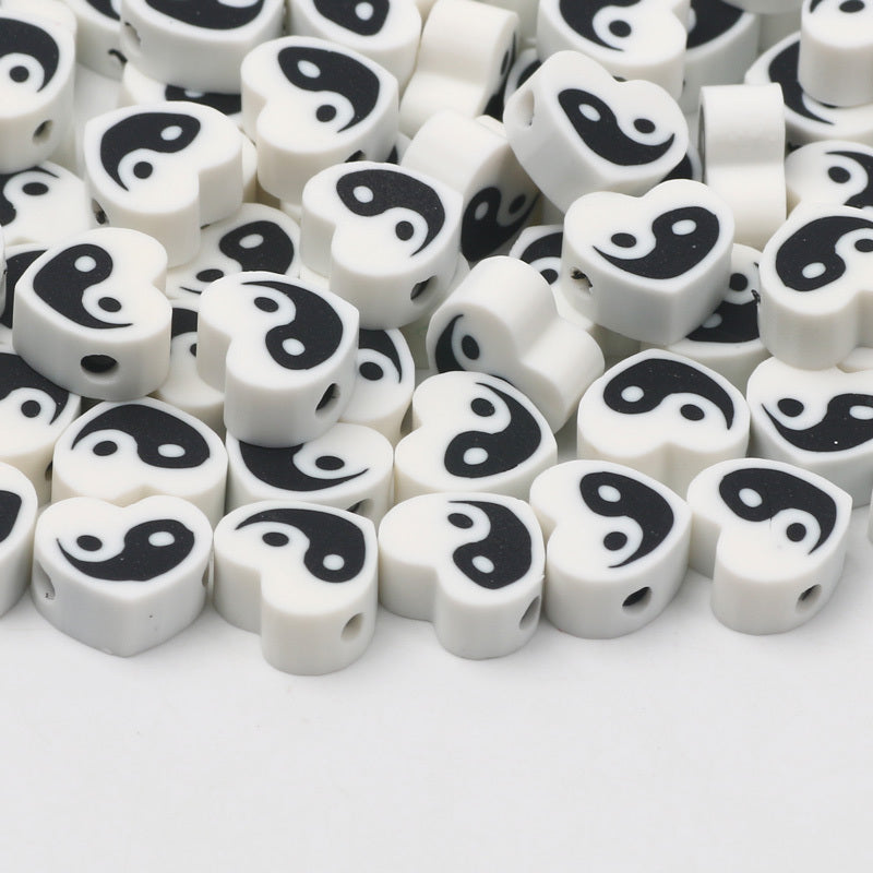 Create beautiful jewelry with this set of 30 Tai Chi pattern heart shape flat soft pottery beads. Perfect for crafting unique and stylish accessories.