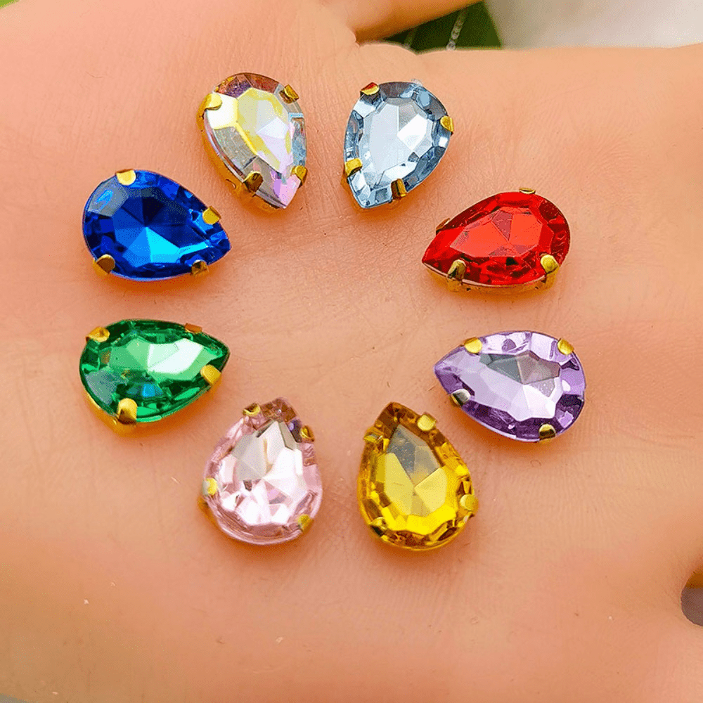 Add sparkle to your DIY projects with these water drop rhinestones. Perfect for dress, shoes, clothes, and jewelry. Hand-sewn for secure placement.