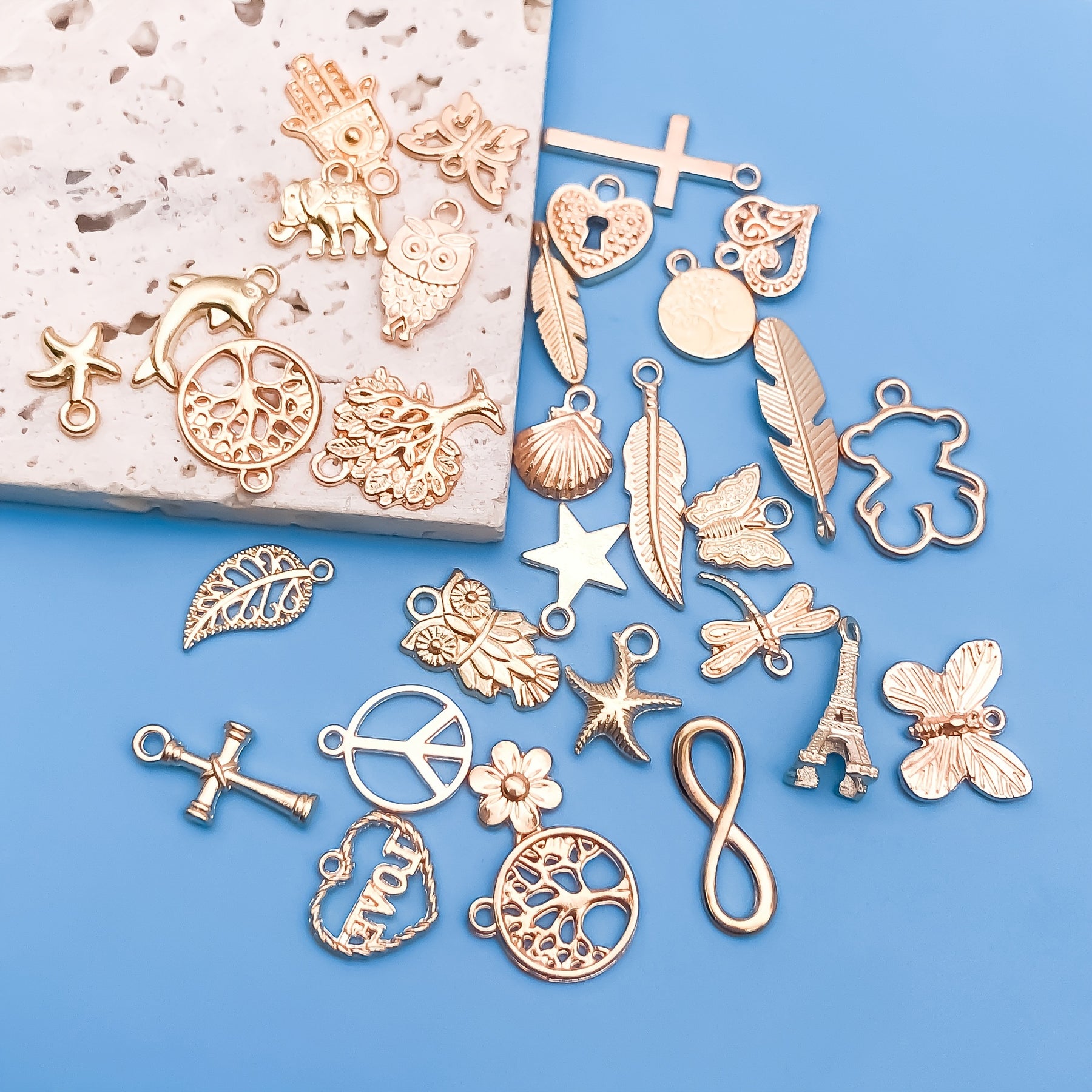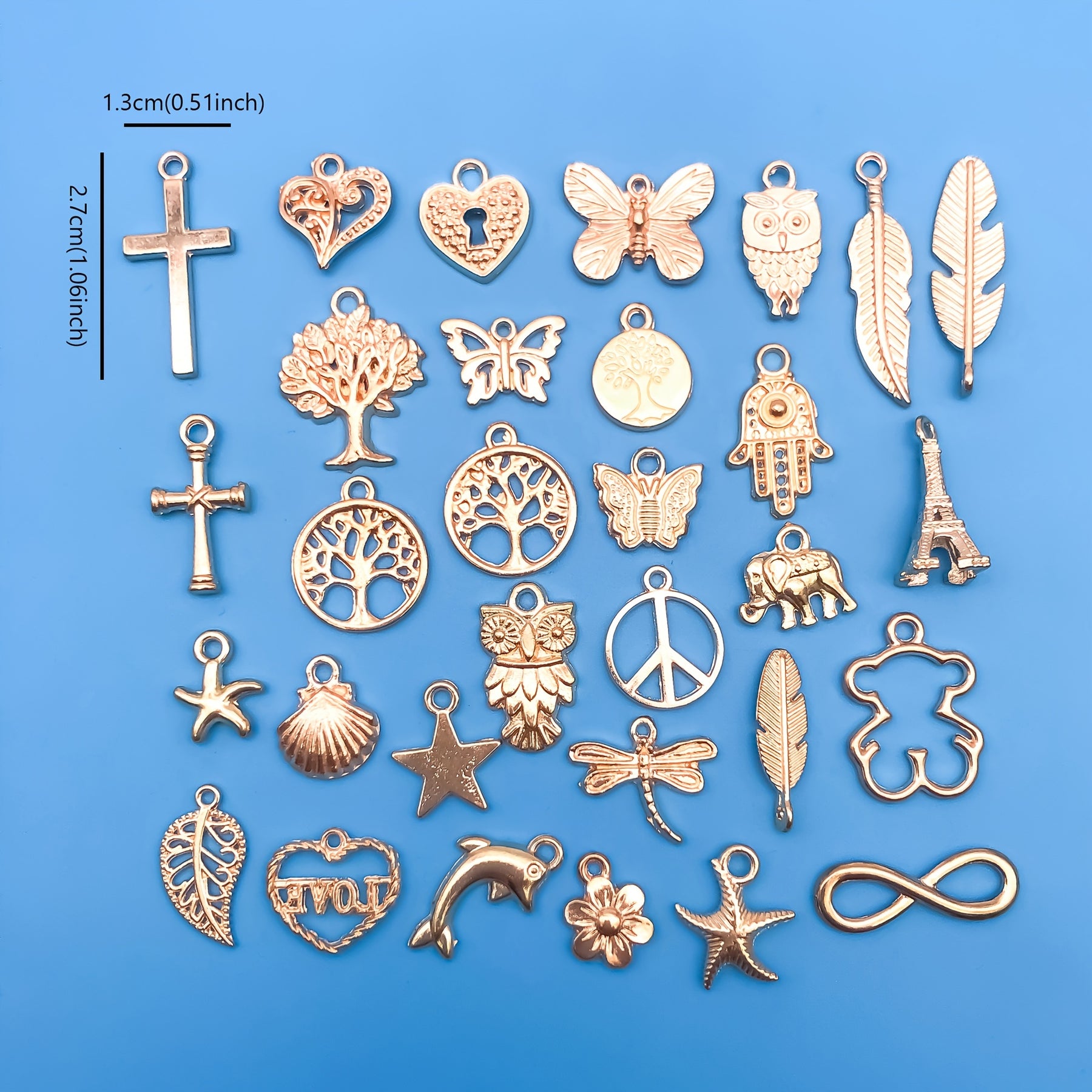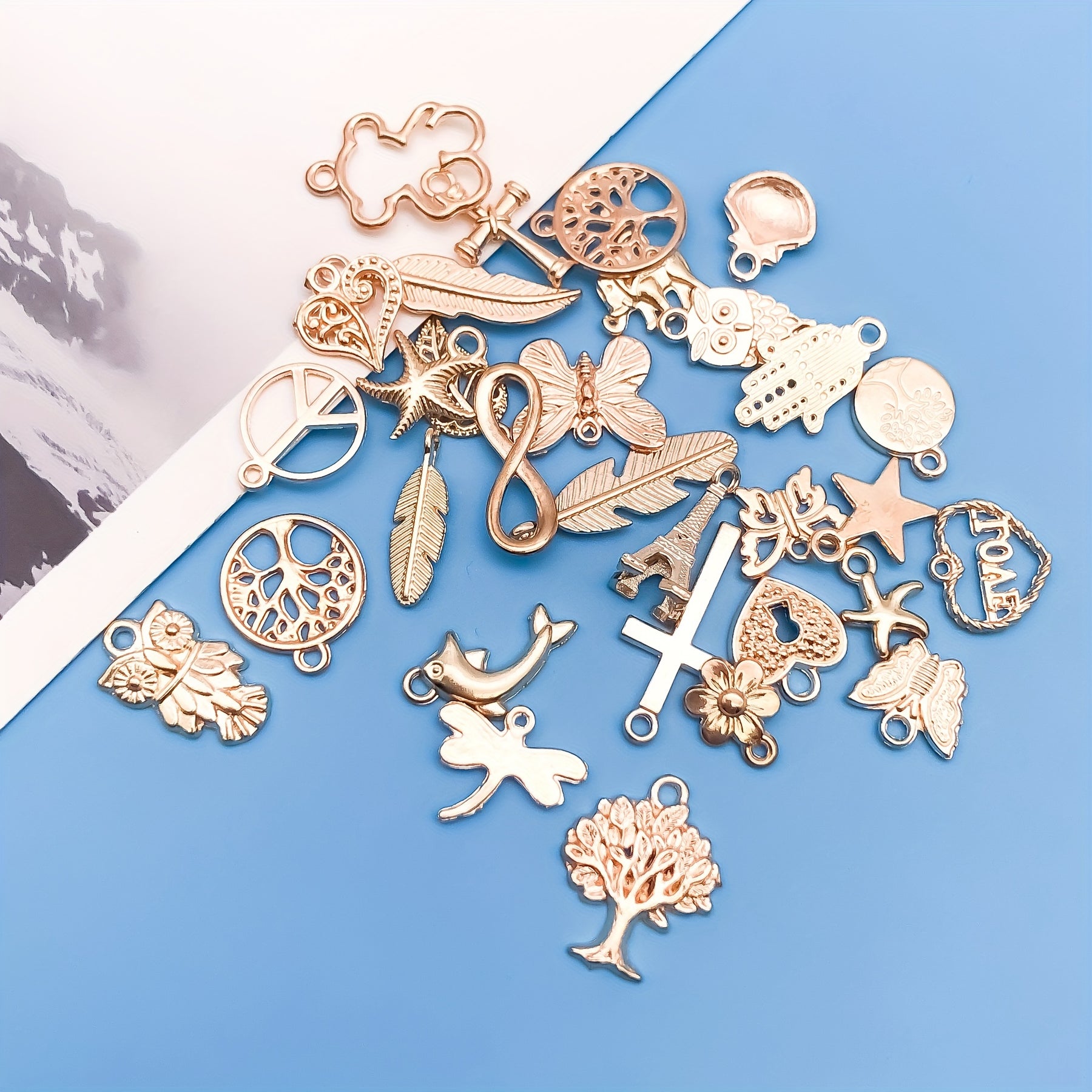Add a touch of nature to your jewelry creations with this set of 30pcs zinc alloy golden charms featuring tree of life, heart, and animal shapes. Perfect for necklaces, bracelets, and earrings.