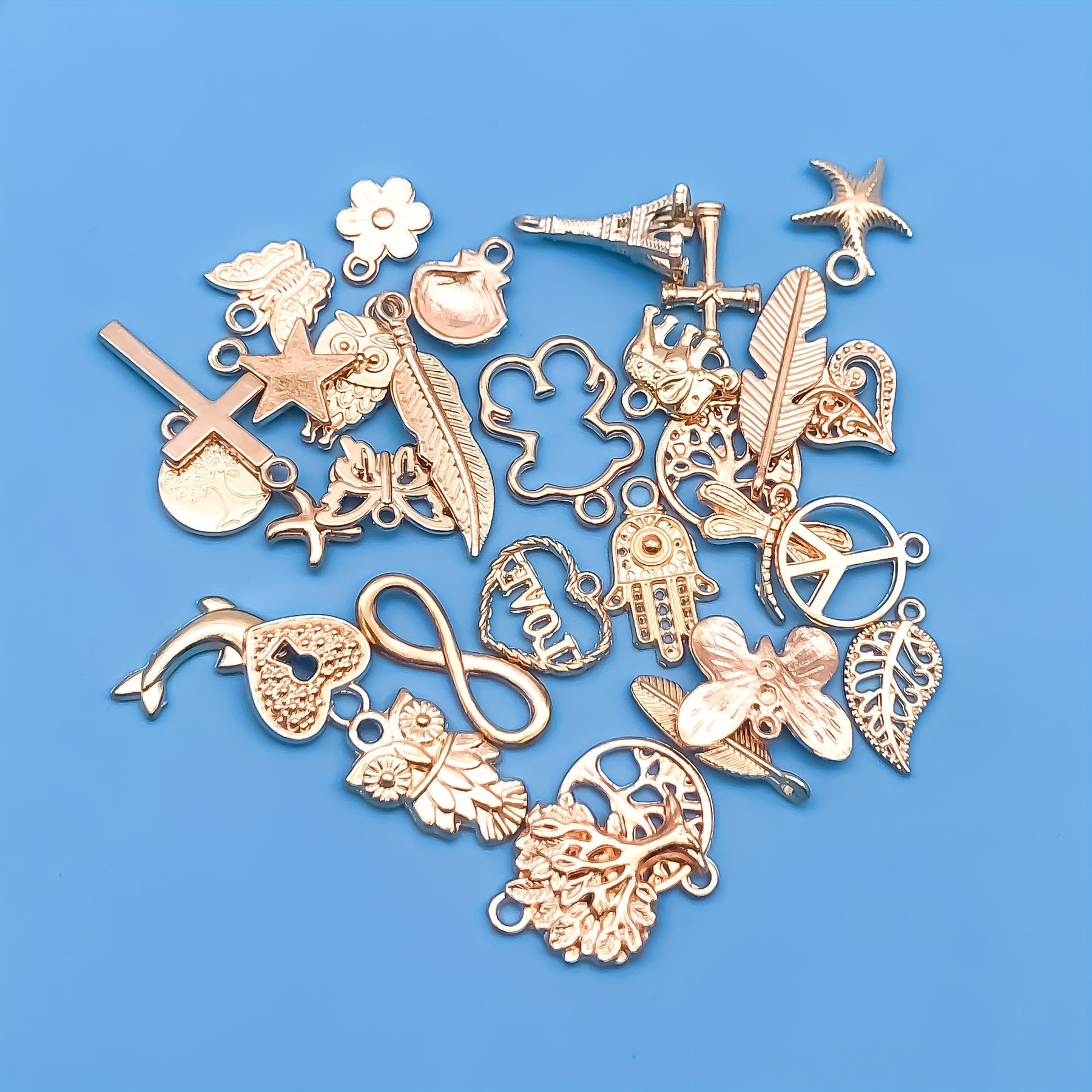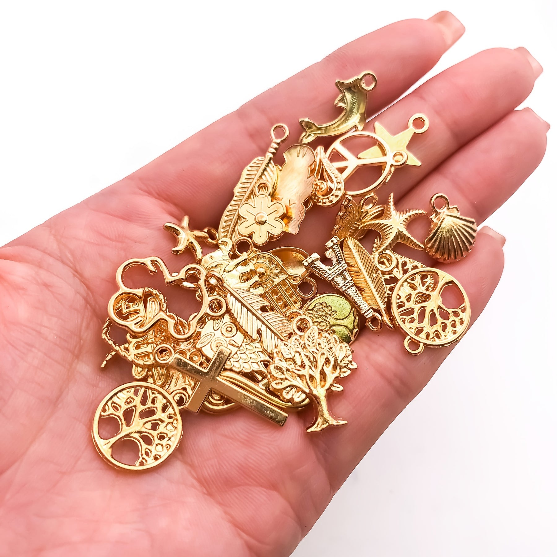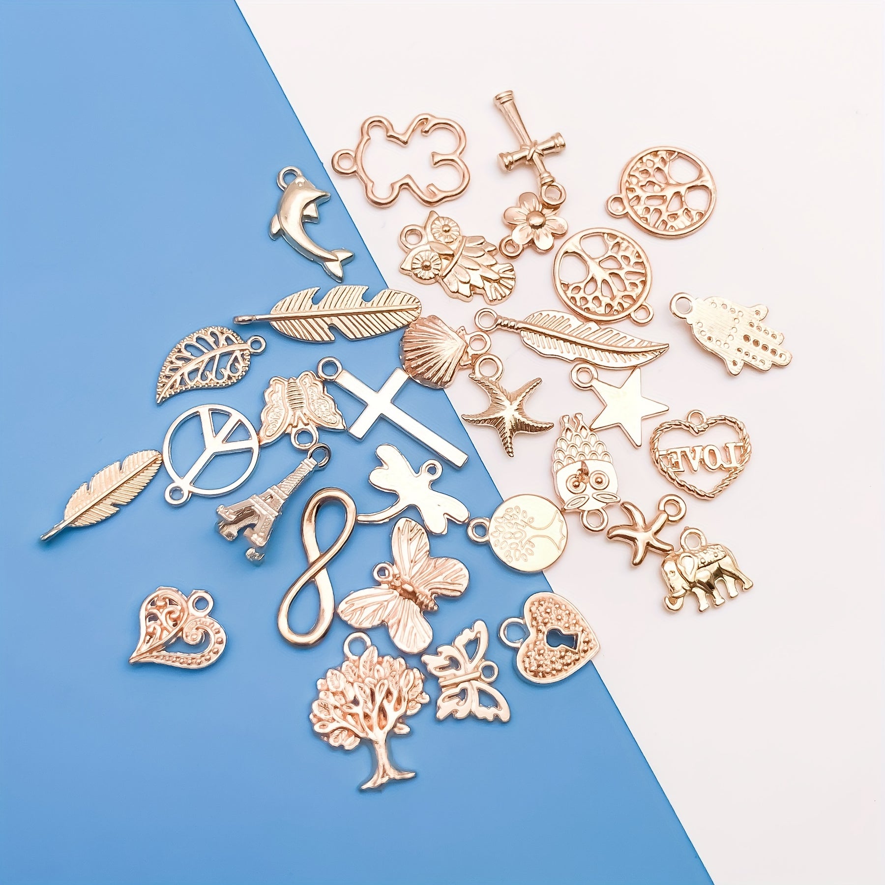 Add a touch of nature to your jewelry creations with this set of 30pcs zinc alloy golden charms featuring tree of life, heart, and animal shapes. Perfect for necklaces, bracelets, and earrings.