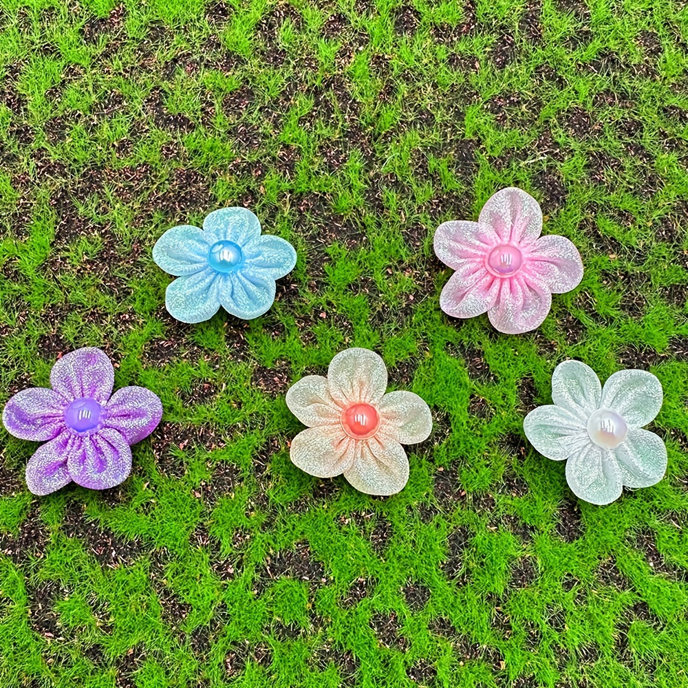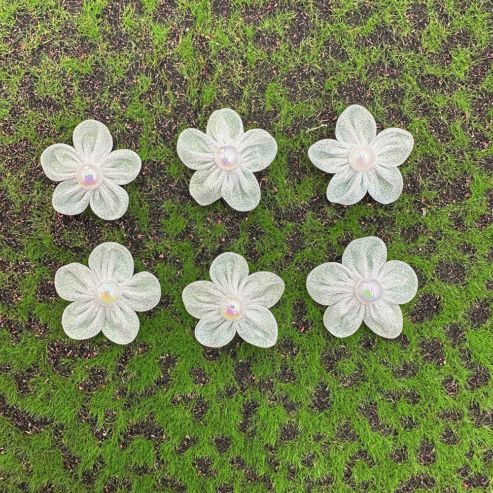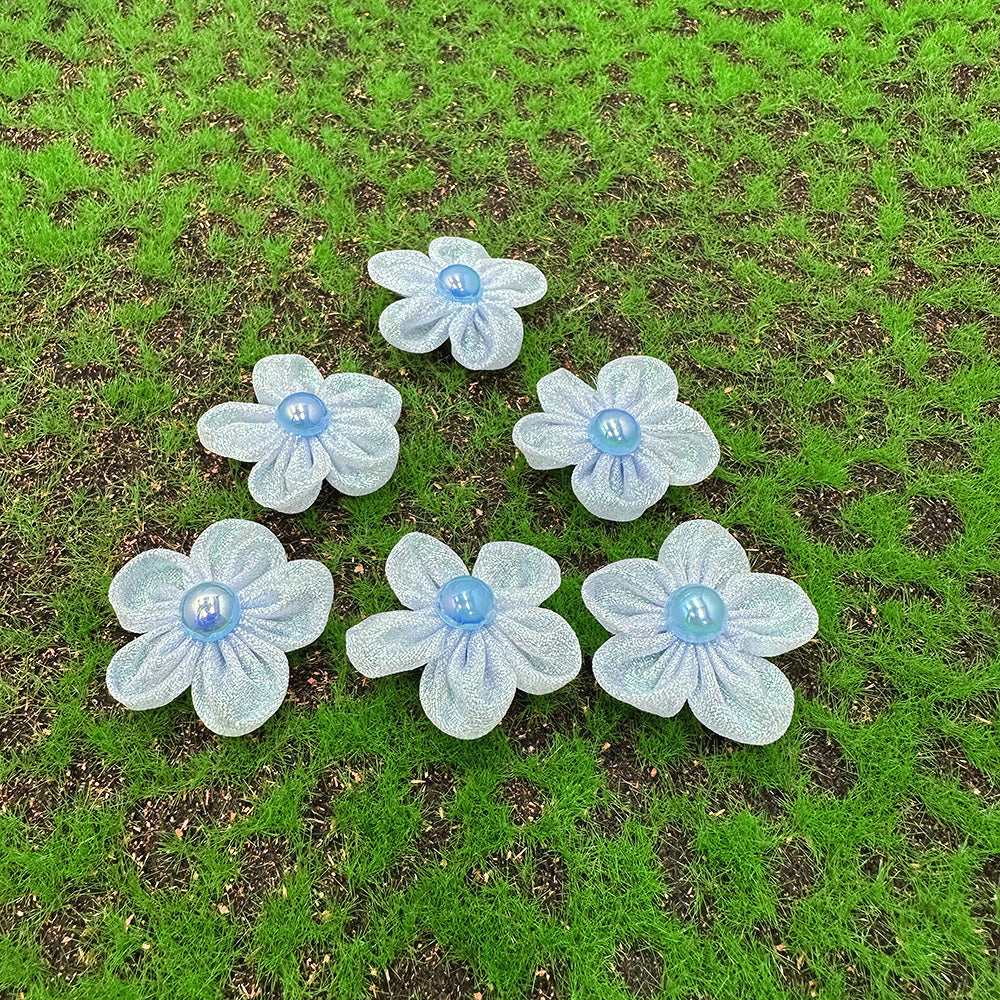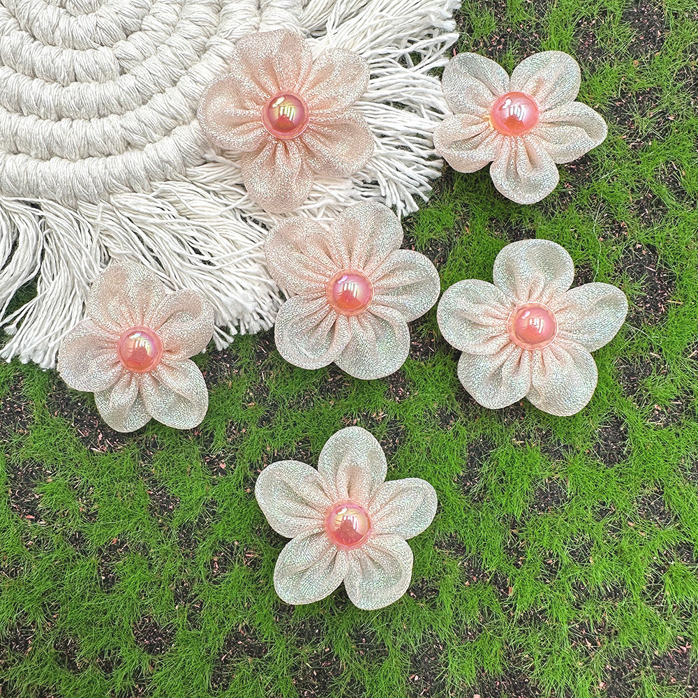 This set of 5 beaded organza flowers can be used as a hairband decoration or clothing accessory. Create beautiful pieces for jewelry, hats, and shoes with these DIY fabric flowers.