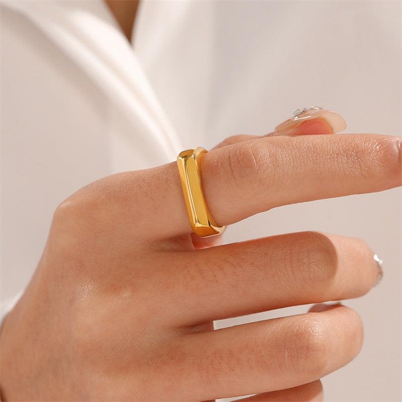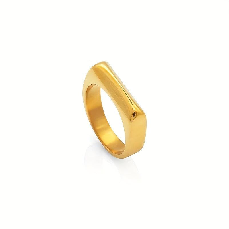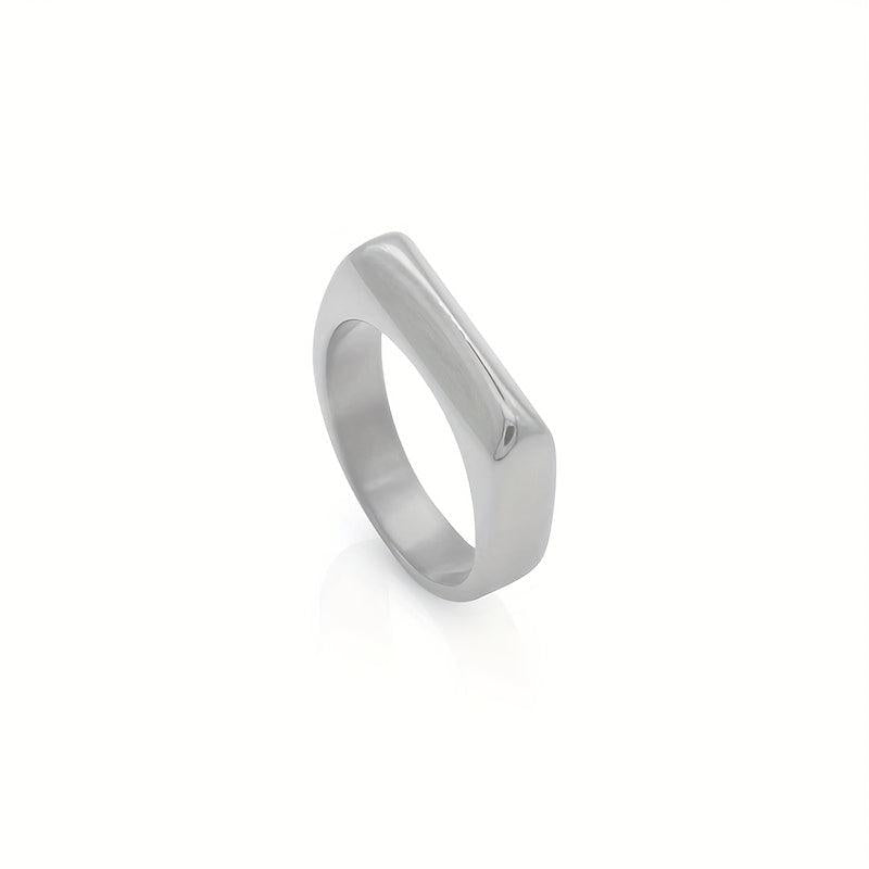 This modern and minimalist horizontal bar ring is made of durable 316 stainless steel. Versatile unisex design suitable for casual attire and parties.