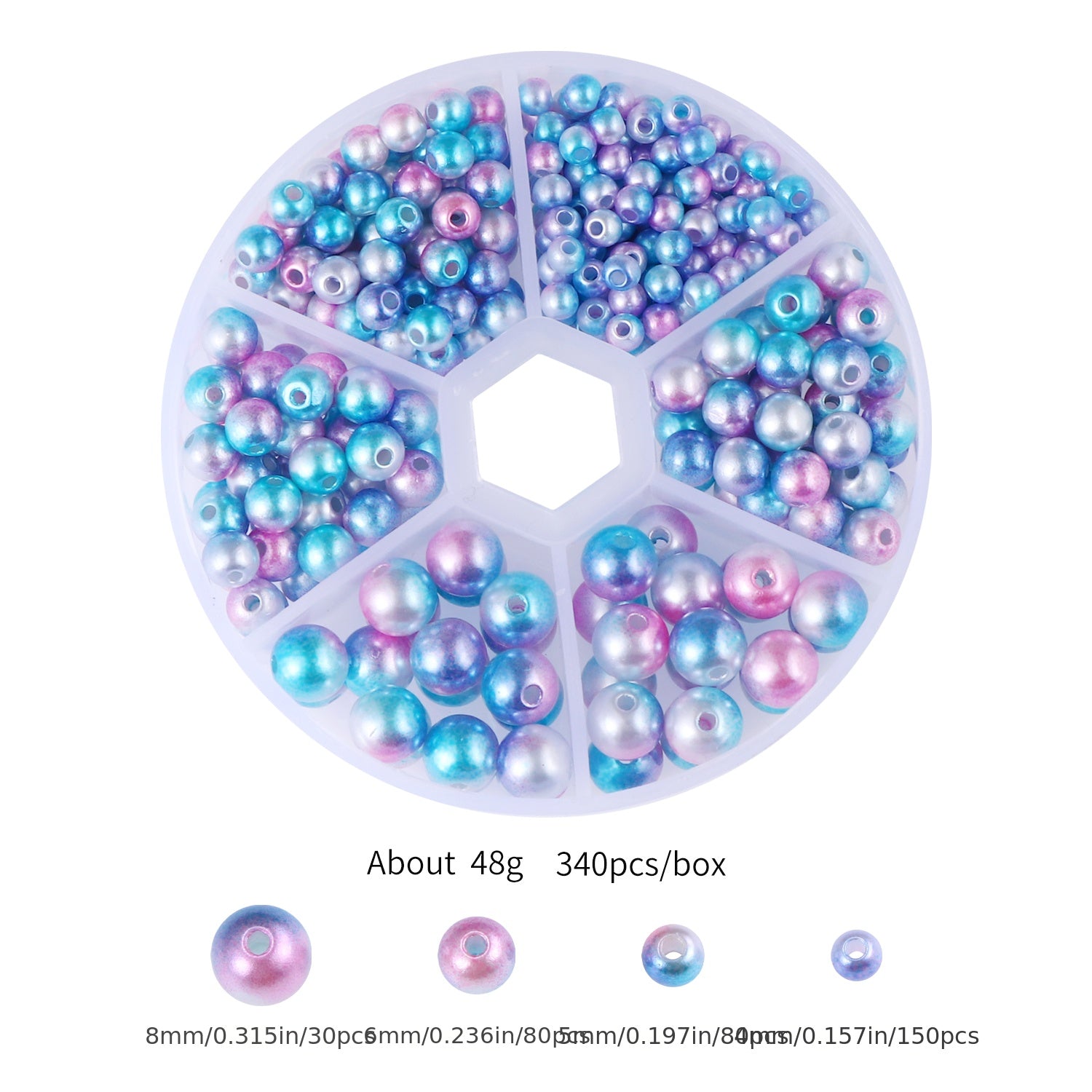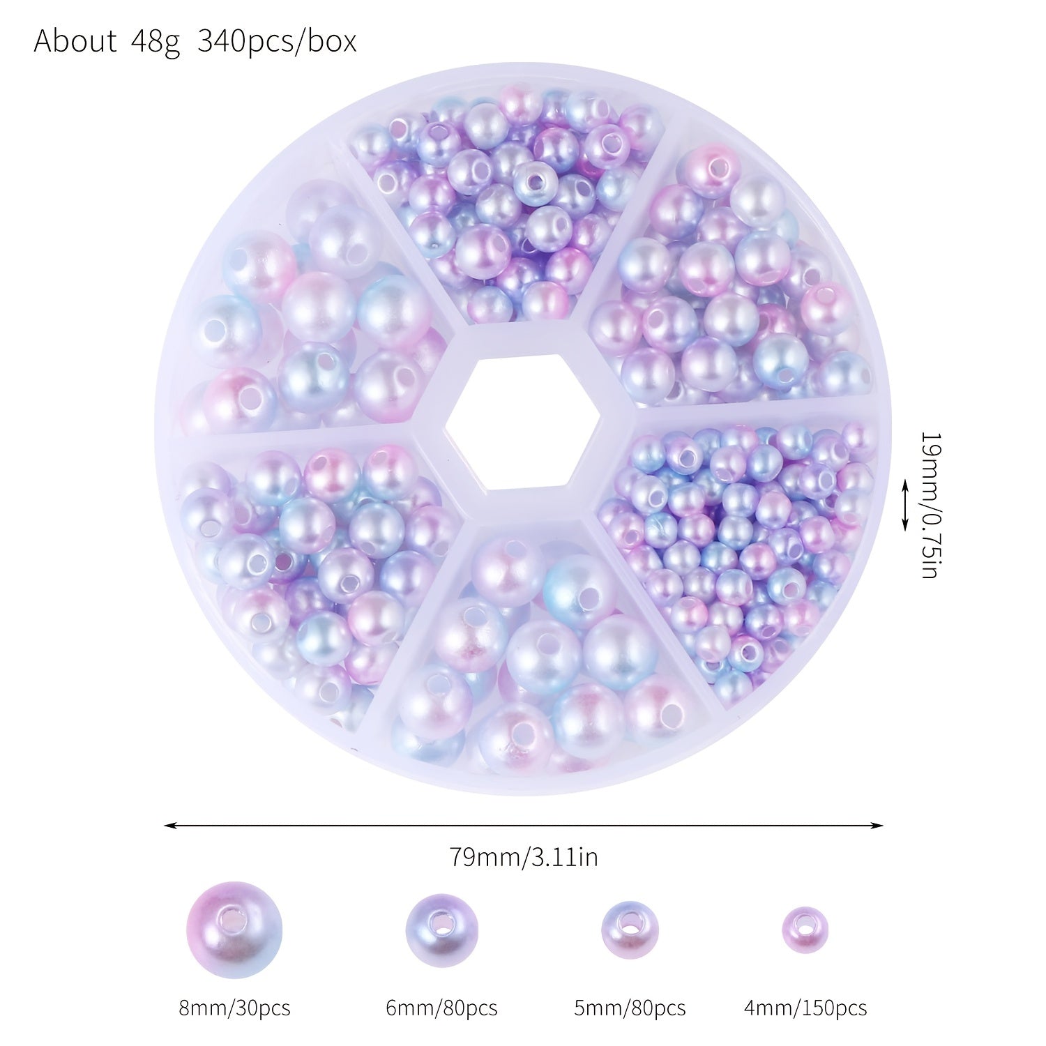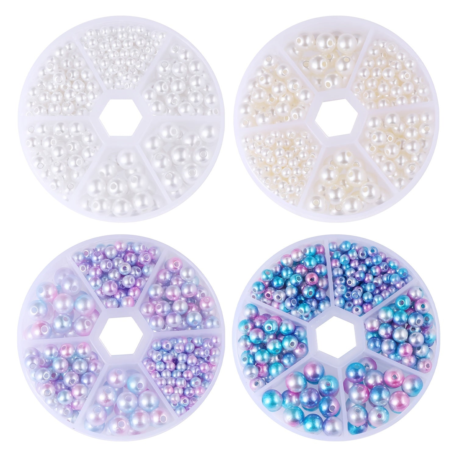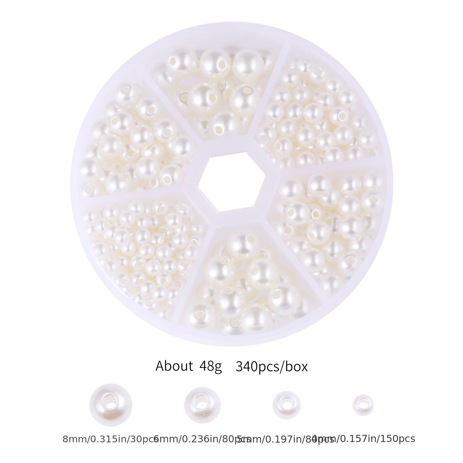 340pcs Round Pearl Beads DIY Craft Jewelry Making Plastic Box 4 Colors