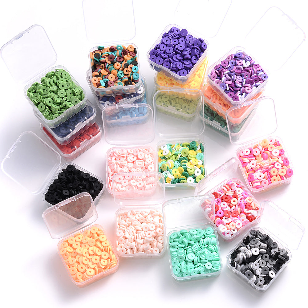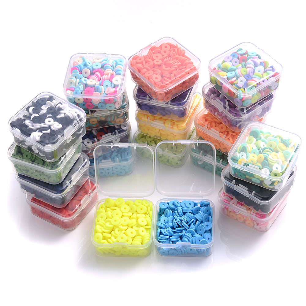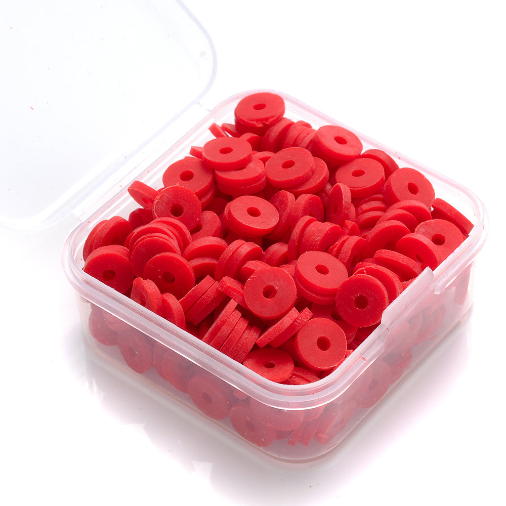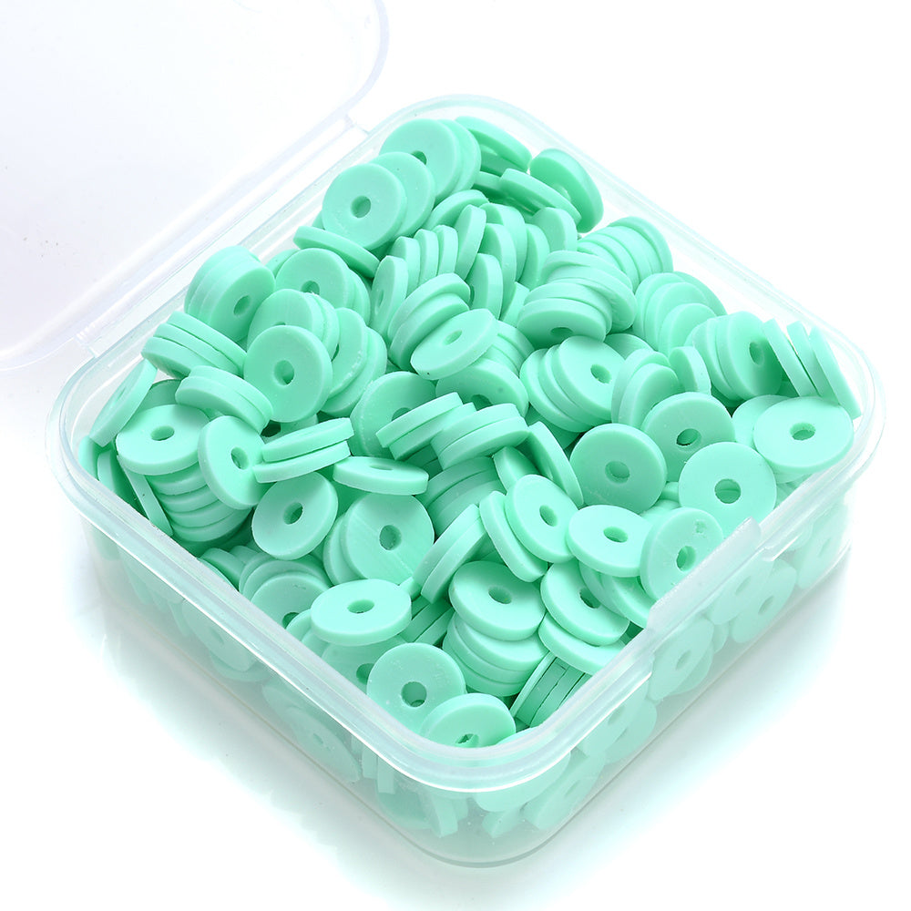 This box contains a mix of flat round spacer beads made of polymer clay, perfect for creating unique jewelry pieces. The beads are 6mm in size and come in a variety of colors.