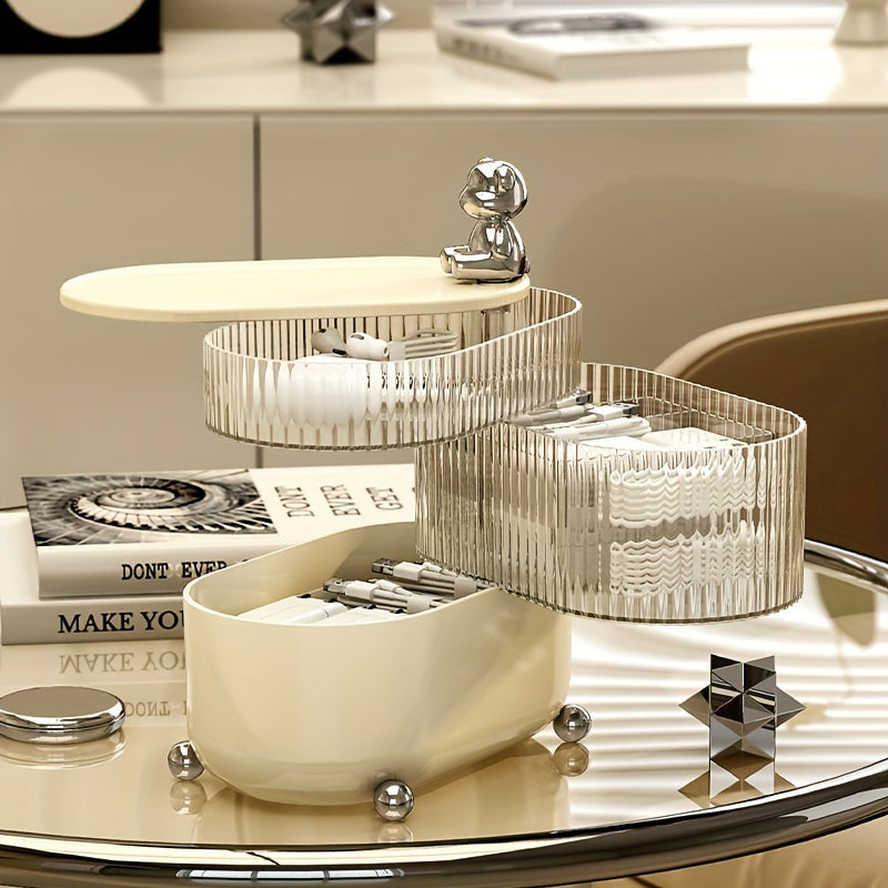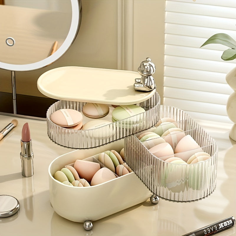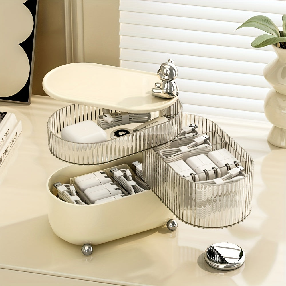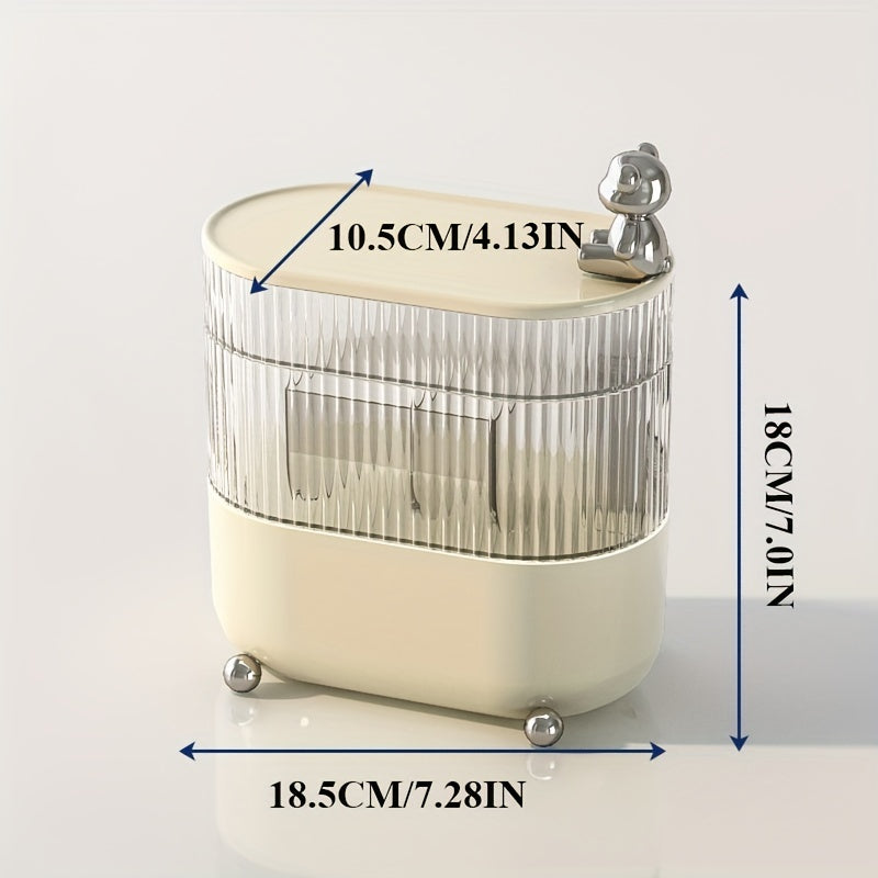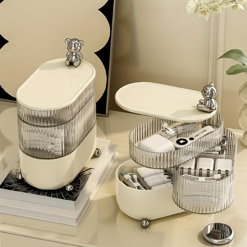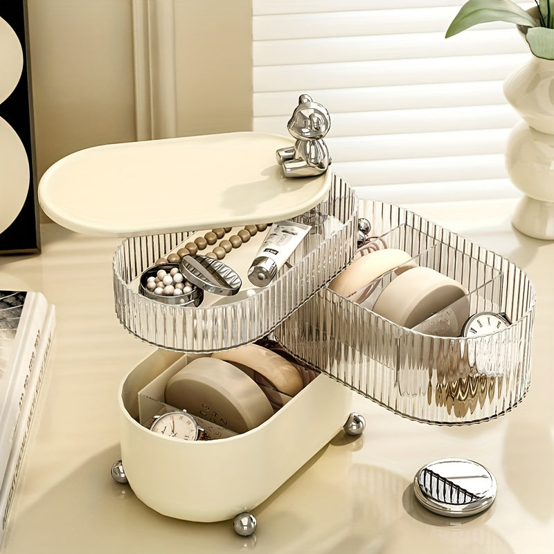 This multifunctional storage box is perfect for organizing beauty products. It rotates 360 degrees and features a transparent dustproof layer. Ideal for storing lipsticks, makeup, jewelry, and more on your dressing table.
