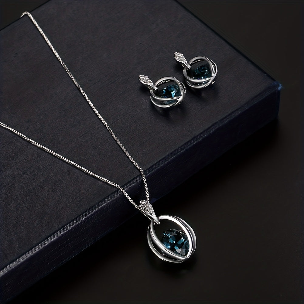 Elegant and versatile jewelry set featuring artificial crystal earrings and necklace, suitable for both men and women.