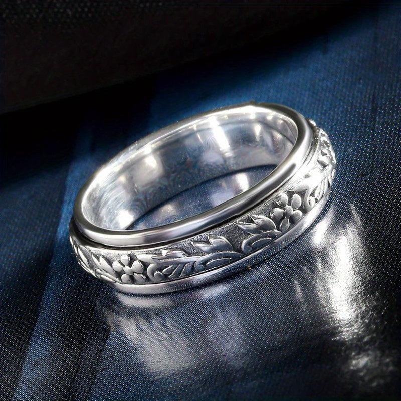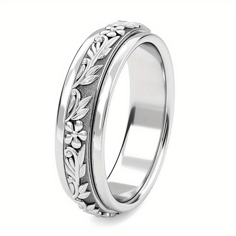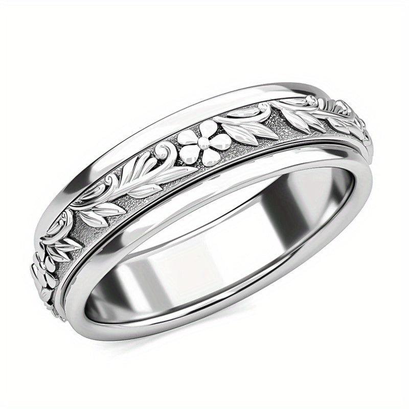 Elegant and stylish 3D floral carved band ring made from silver plated copper. Perfect for daily wear or wedding occasions.