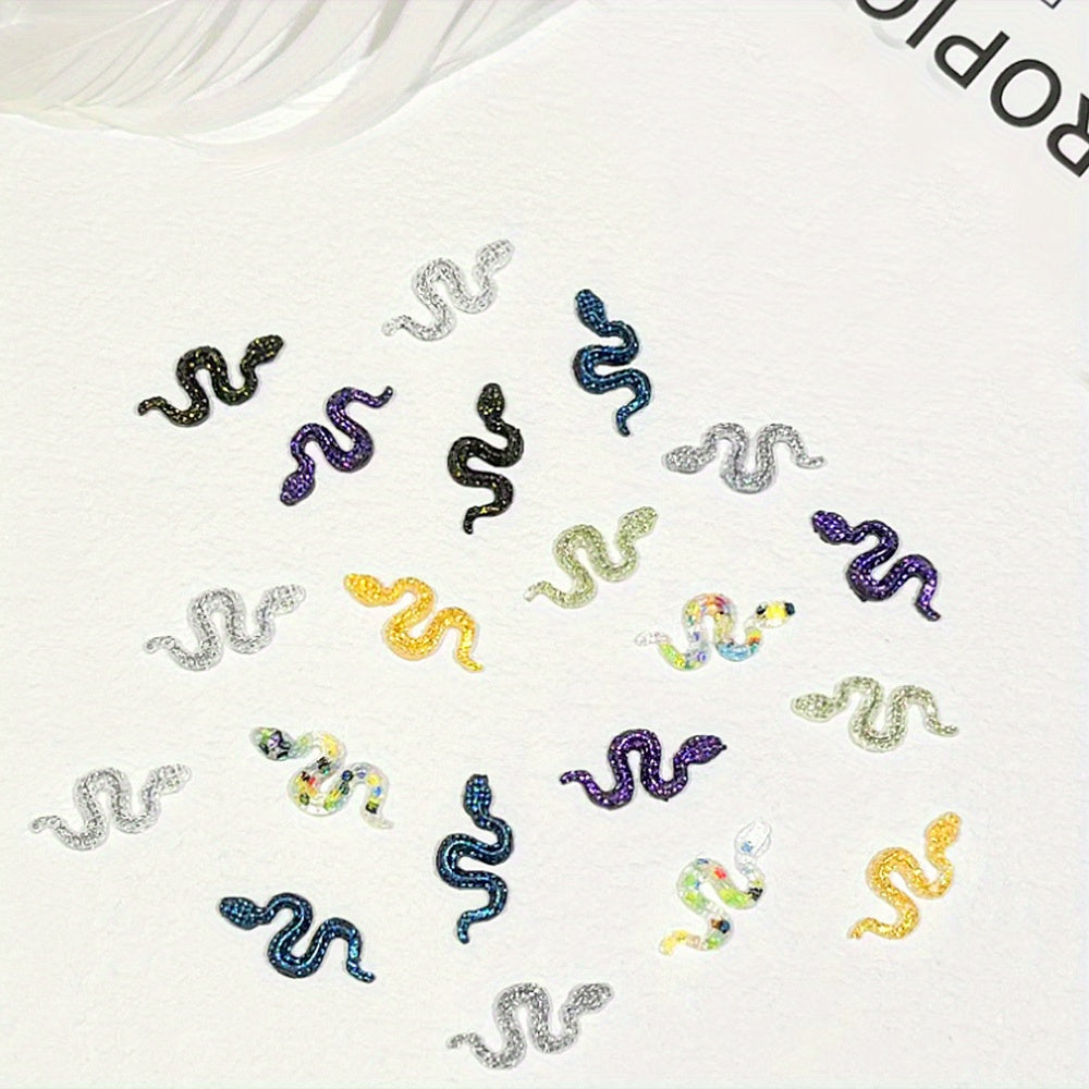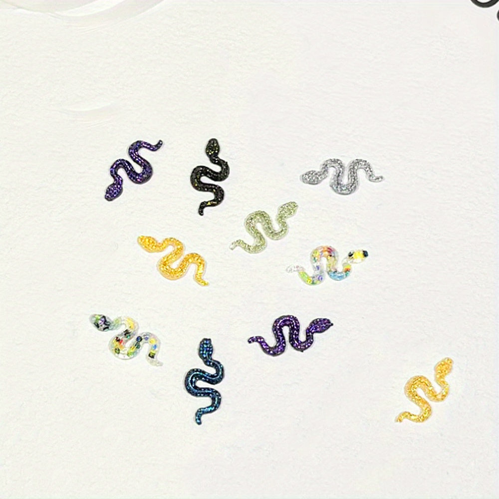 Add a touch of edgy glam to your nail art with these 3D snake decorations. Perfect for creating unique and eye-catching nail looks.
