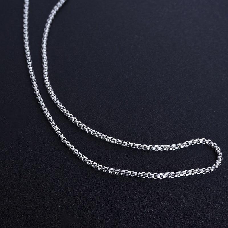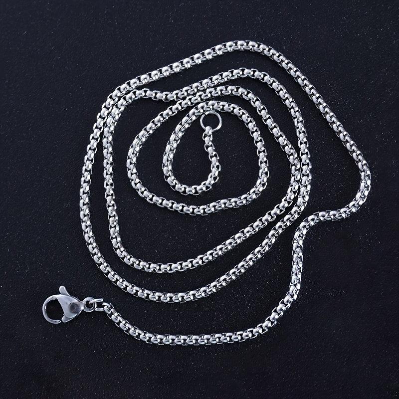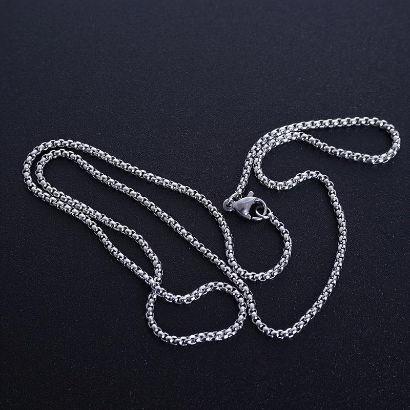 This 3mm wide stainless steel chain necklace is a durable and stylish accessory for both men and women. It is tarnish resistant and suitable for various occasions, from casual hip hop looks to formal outfits.