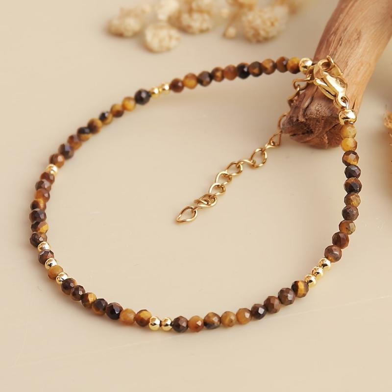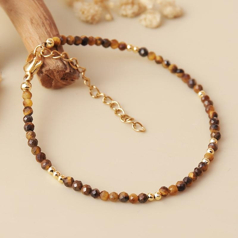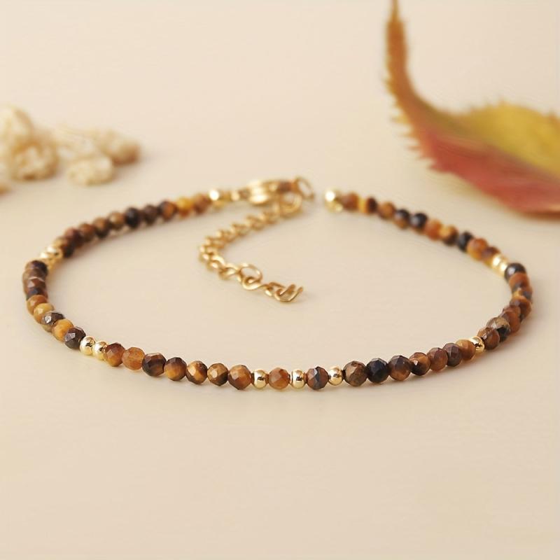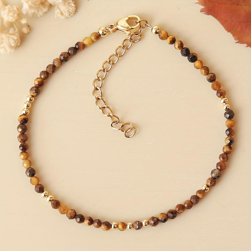 3mm Tiger's Eye Bracelet with Gold Chain - Vintage Boho Style
