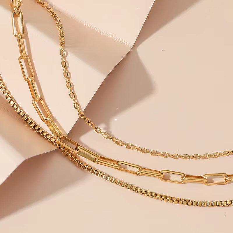 3pcs 18K Golden Steel Necklaces Set Classic & Hip Hop Chain Gift